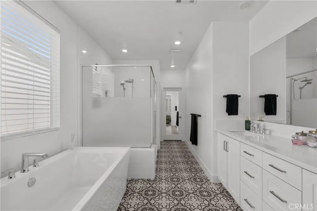 Modern Luxury with over 300K in Designer Upgrades & Resort-Style Backyard! Welcome to this brand-new, meticulously upgraded 4-bedroom home—with potential for a 5th bedroom—where the sellers spared no expense in the design studio. Every inch of this home exudes style and quality, from the stunning custom tile work on the stairs, bathrooms, and kitchen, to the beautifully curated lighting throughout. The heart of the home is the chef’s dream kitchen, featuring top-of-the-line Monogram appliances, an expansive island, and a spacious walk-in pantry, 6 burner stove with griddle and warming light, smart oven, and built-in refrigerator/freezer. The open-concept design flows effortlessly into the great room and out through stacking sliding doors to the covered California room, creating a seamless blend of indoor and outdoor living. Upstairs, a large loft provides flexible space for a media room, office, or additional lounge area. Each bedroom is generously sized, and the layout offers versatility for a growing family or multi-generational living. Step into the oversized backyard oasis, complete with a sparkling pool and jacuzzi, baja shelf, waterfalls, sleek fire pit lounge area, and plumbing ready for an outdoor shower—perfect for relaxing or entertaining in style. This home is not only stunning but smart and efficient, featuring paid solar with 2 battery banks, dual EV chargers, and energy-conscious systems throughout. Why wait for new construction when this move-in-ready masterpiece is available now? Come experience luxury, comfort, and cutting-edge efficiency in one incredible home. Schedule your private showing today!