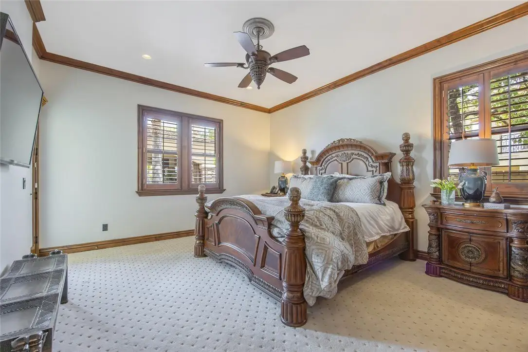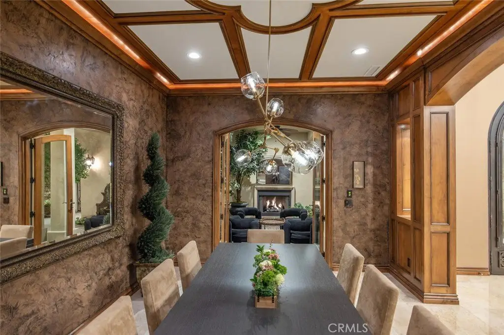Dream Estate in Westridge Estates! Welcome to this custom estate where elegance, comfort, and exquisite California lifestyle meet. Tucked behind the guarded gates of the exclusive Westridge Estates, 6 bedrooms, 9 bathrooms, and over 6,700 sq ft await. Recently refreshed by a designer to maximize its full potential. This estate features many updated finishes including new flooring in the family and poker room creating a modern yet timeless atmosphere. This stylish home has been freshly painted throughout and has beautifully curated lighting. The spectacular large windows flood the formal living room with natural light, boasting an impressive fireplace, coffered ceilings and sophisticated custom millwork. The kitchen is a chef’s dream with a Sub-Zero refrigerator and freezer, an 8-burner Wolf range, farmhouse sink, and an elegant, leathered countertop on the island. In addition to the grand spiral staircase, the estate also offers a 500 plus bottle wine cellar, entertainers bar, office, poker room, and a family room with a pool table. Upstairs features include a library, gym, dramatic upstairs primary master with beautiful views off the balcony. The en-suite has heated floors, a jacuzzi tub and a steam shower. Step outside to your resort-style backyard with a sparkling pool, baja shelf, and spa. The cabana includes a built-in fireplace, custom-made pizza oven and generous seating. Adjacent to the cabana is a built in BBQ with bar seating. The outdoor shower, restroom and koi pond round out this lovely backyard. Enjoy outdoor amenities lush landscaping all perfect for relaxing or entertaining year-round or just kicking back and enjoying the good life. Just moments from The Oaks Club at Valencia and Golf Course, top-rated schools, shopping, and the 5 freeway. No Mello-Roos. This estate offers a lifestyle of privacy, elegance, and unforgettable gatherings in luxury living.