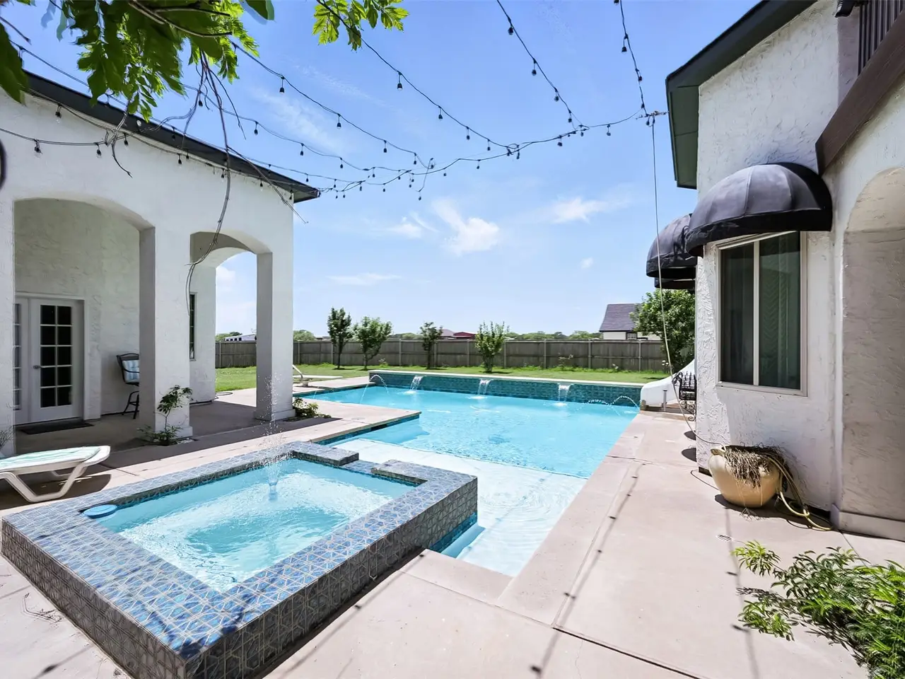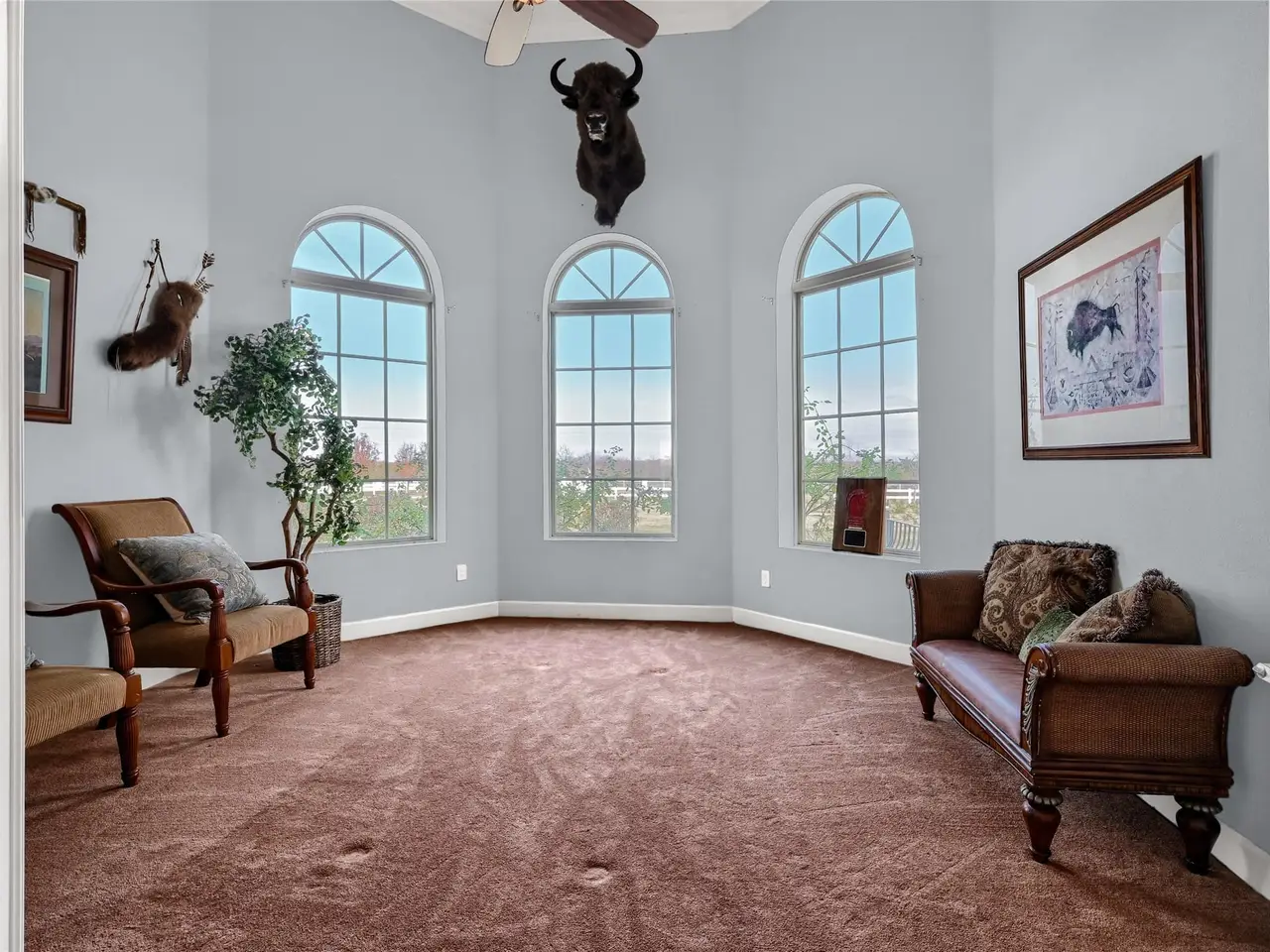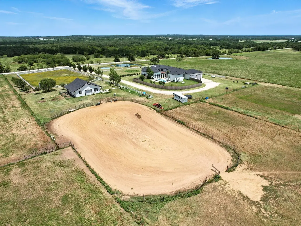 Stunning Mediterranean-style stucco home with 10 acres exudes timeless charm and modern comfort. 4 bedrooms possible 5th, 3.5 baths, 3,731 sq ft of thoughtfully designed living space. Home is perfect for those seeking luxury and tranquility. Open concept layout features elegant finishes, high ceilings, and abundant natural light. Spacious primary suite boasts a spa like bath, with separate walk in shower, his and hers vanity and a walk in closet to die for. 3 additional bedrooms provide comfort and spacious privacy. Large office room an perfect additional room for a 5th bedroom option, library room, formal dining or game room depending on your Preferences. Huge open gourmet kitchen with Island with all granite countertops through out and endless custom Cabinets for all your kitchen accessories and decor. This floor plan is the perfect inviting living spaces to make entertaining a delight. Experience paradise in horse country. Home is a Dan Sater Design. This gorgeous, architecturally significant home stands regally on 10 lovely acres. From the exquisite high-end interior details, to the expansive outdoor entertaining with out side Kitchen area with granite island with sink. This home makes an amazing lasting impression. Close to the lake and half an hour from major shopping, the owners enjoy both the country lifestyle and the conveniences of the city. Outdoors, a picturesque pergola adorned with grapevines sets the scene for alfresco dining. The sparkling swimming pool and spa with a nearby outdoor fireplace creates a resort-like retreat, complemented by a guest room with a full bathroom for visitors. Could be used as a Mother in law sweet. Equestrians and hobby farmers will appreciate the 5-stall 48 x60 barn with runs and the large open tack room to accommodate the display of your saddles, tack an live stock accessory needs. 200 x 100 outdoor arena, 6 Horse Ready pastures with cross fencing, offering exceptional facilities for livestock or recreation.