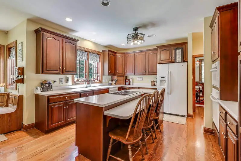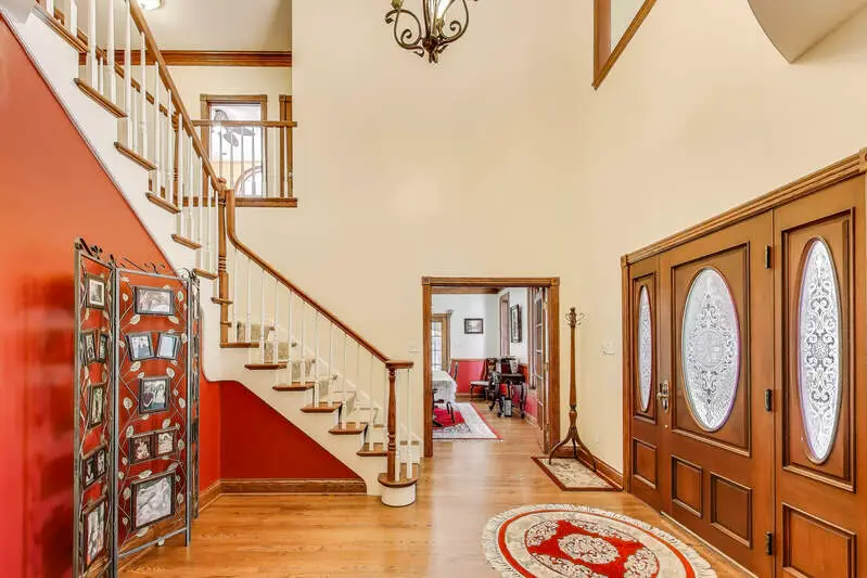 MOTIVATED SELLER! Discover this STUNNING 2 story SOLID all brick stately residence with many MAJOR UPDATES already done perched up on a scenic hill with a PRIVATE driveway on 3.27 wooded acres, a RARE find in the desirable Bridlewood subdivision. This SECLUDED retreat offers TIMELESS craftsmanship, PRIVACY, & SPACE--just minutes from DOWNTOWN Valparaiso, AWARD-WINNING schools, & EASY ACCESS to Chicago. A flagstone walkway & WRAPAROUND covered porch welcome you into a home that's both ELEGANT & WARM. Inside, you'll find SOLID oak floors, oak trim, 6-PANEL oak doors, TRIPLE CROWN MOLDING, SOARING 9+ foot ceilings, ZONED heating & cooling, & 4 FIREPLACES throughout. The GRAND 2 story foyer opens to a formal dining room & den/library, while several first-floor rooms feature beautiful French doors. With 5 bedrooms and 6 bathrooms, there's room for everyone. A MAIN-FLOOR BEDROOM (currently a game room) offers DIRECT ACCESS to the COVERED back deck. The heart of the home is the OPEN-CONCEPT kitchen & family room featuring cherry cabinetry, corian countertops, a center island, pantry cabinet, & cozy breakfast nook. The VAULTED family room IMPRESSES with custom oak beams, a FLOOR-TO-CEILING brick fireplace, & DIRECT OUTDOOR ACCESS. Upstairs, the EXPANSIVE primary suite OFFERS 12-foot ceilings, DUAL walk-in closets, a fireplace, & a PRIVATE office/sitting area. The ensuite REMODELED bath includes DOUBLE vanities, whirlpool tub, & CUSTOM walk-in shower. 2 additional bedrooms feature PRIVATE BATHROOMS & WALK-IN-CLOSETS. A BONUS ROOM over the 3-car garage, second-floor laundry, & a UNIQUE three-staircase layout add both convenience & versatility. The FINISHED walkout basement includes a SEPARATE entrance, fireplace, full bath, 11x13 workshop, & GENEROUS storage rooms. Step outside to your PRIVATE OASIS--an 18x36 HEATED IN-GROUND concrete pool with NEW electric SAFETY cover, 2 WATERFALLS, concrete patio, & 18x10 shed. Schedule your private showing today!
