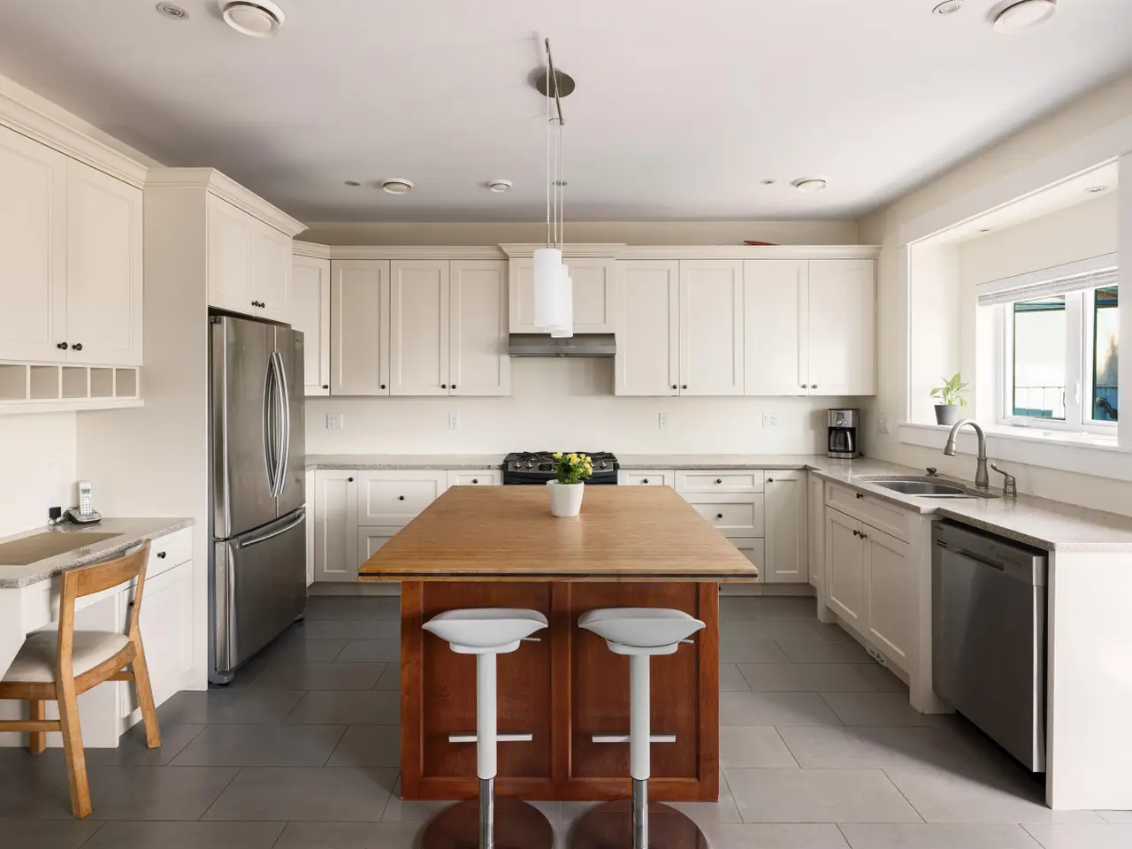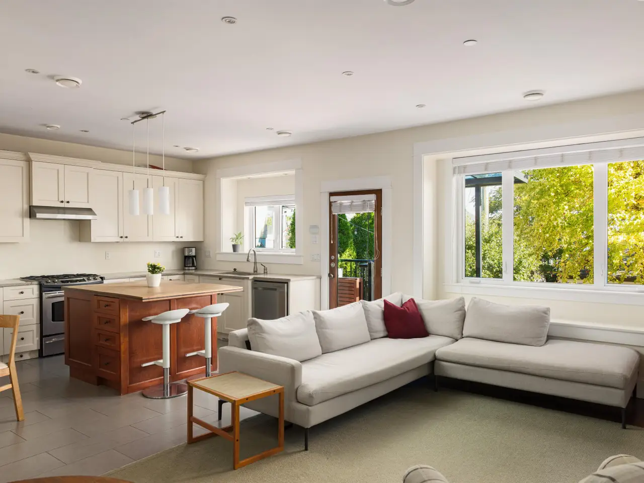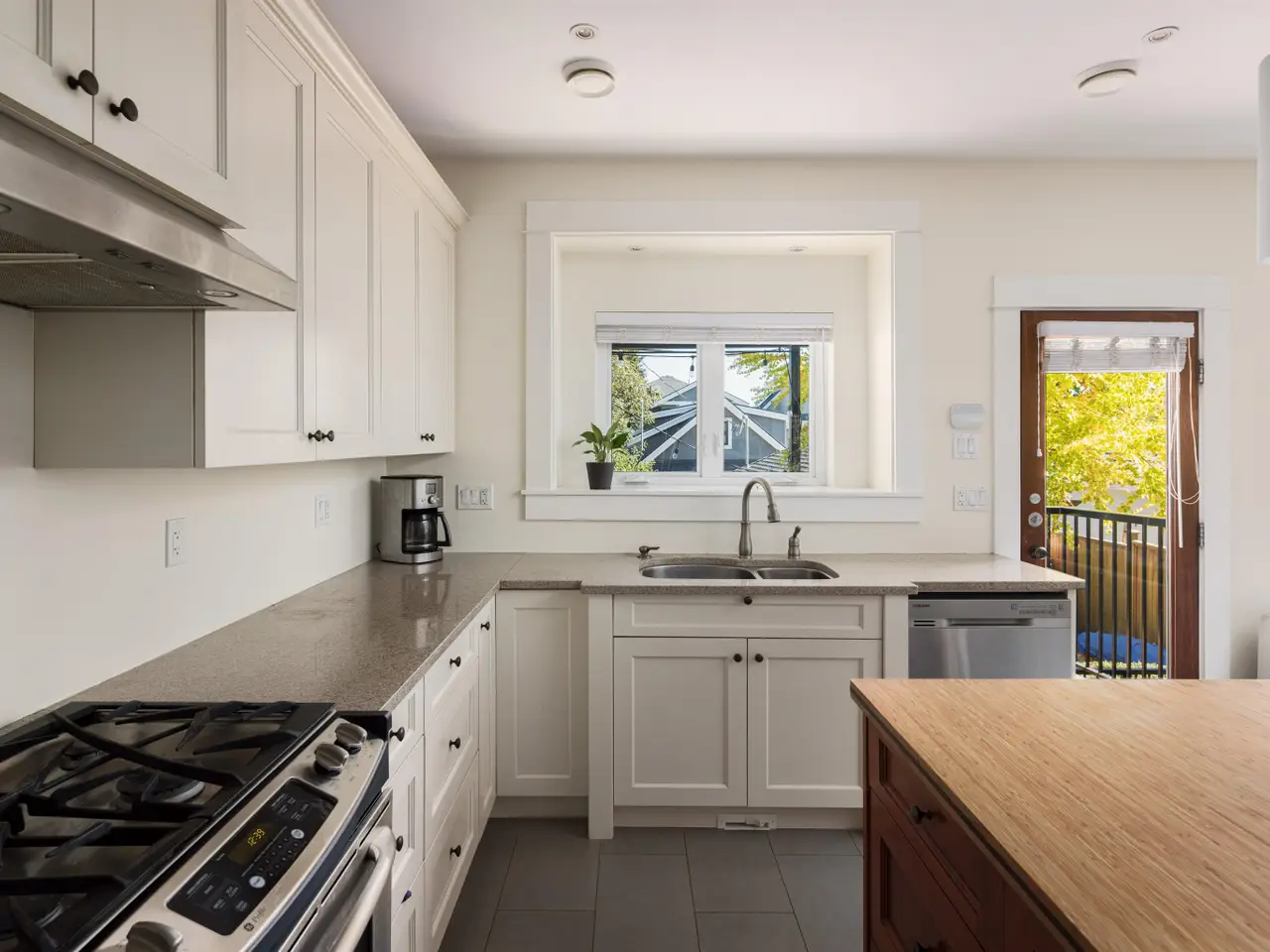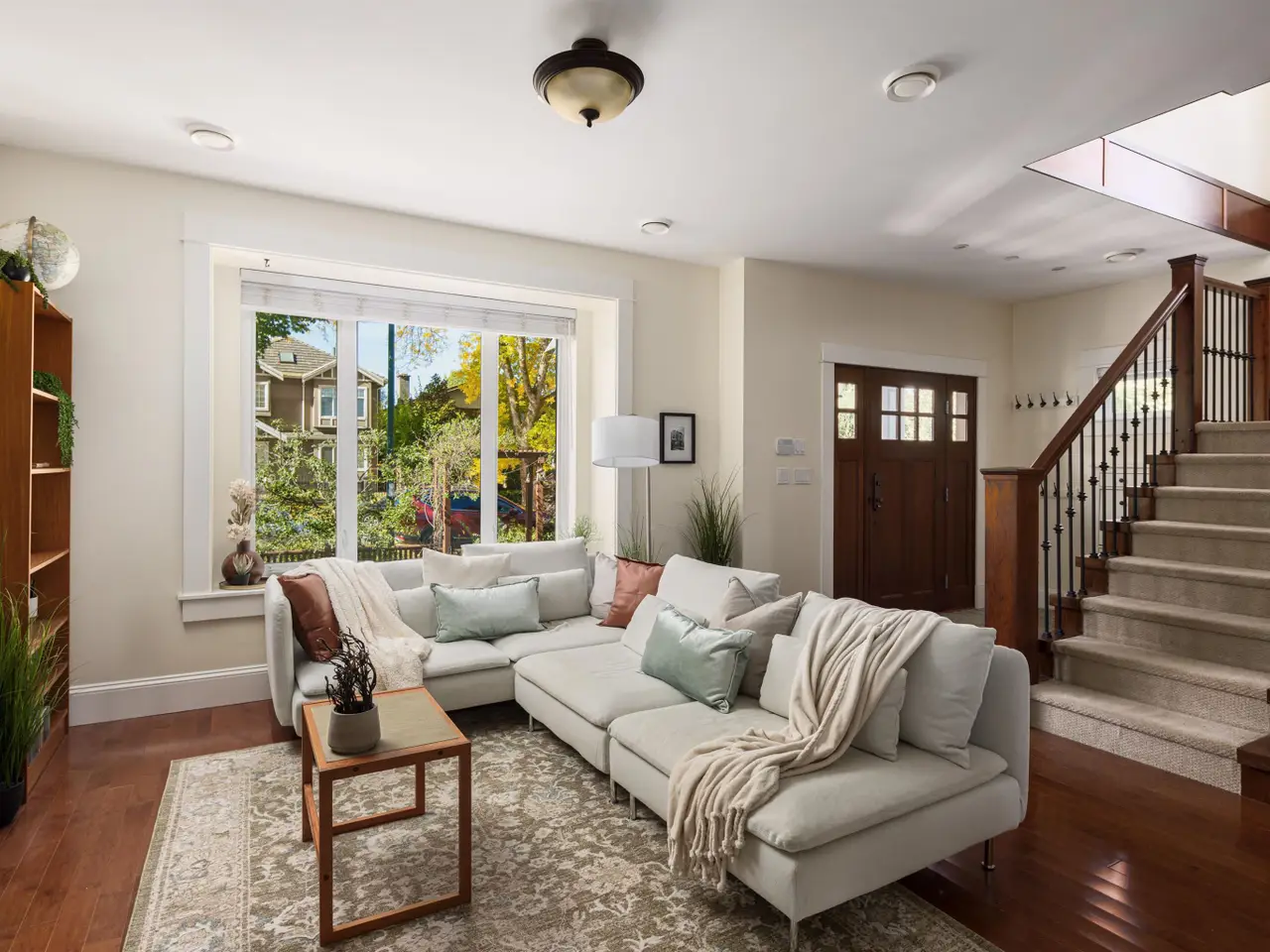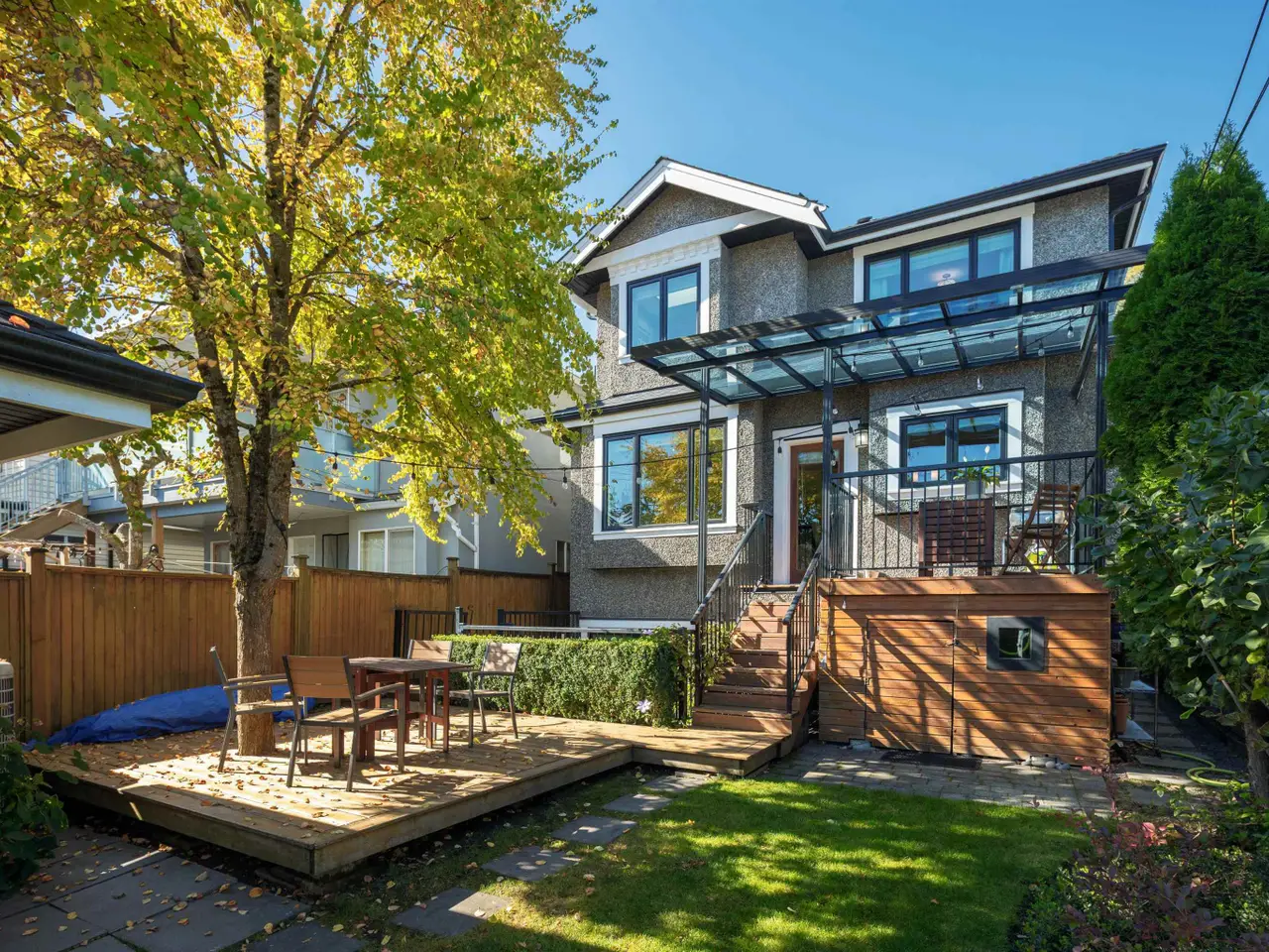 Welcome to this custom-built Craftsman-style home in the heart of Fraserhood, designed with families in mind. Built in 2010, the main floor features a formal living room with gas fireplace and pocket doors that open to a spacious dining area, family room, and kitchen. Enjoy beautiful wood detailing, natural light from abundant windows, and year-round comfort with A/C. Upstairs offers 3 generous bedrooms including a primary with walk-in closet and luxurious ensuite. Skylights brighten both baths. The basement includes a 2 bed legal suite with flexible layout. Outdoor living shines with a west-facing front yard, back deck, and lush yard. Steps to Grays Park. McBride and Tupper catchment.
