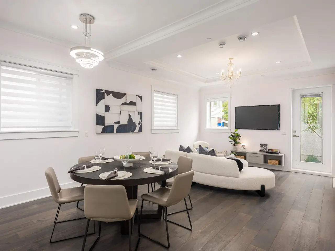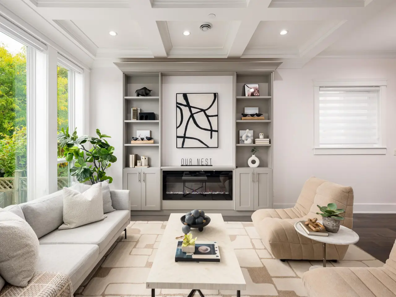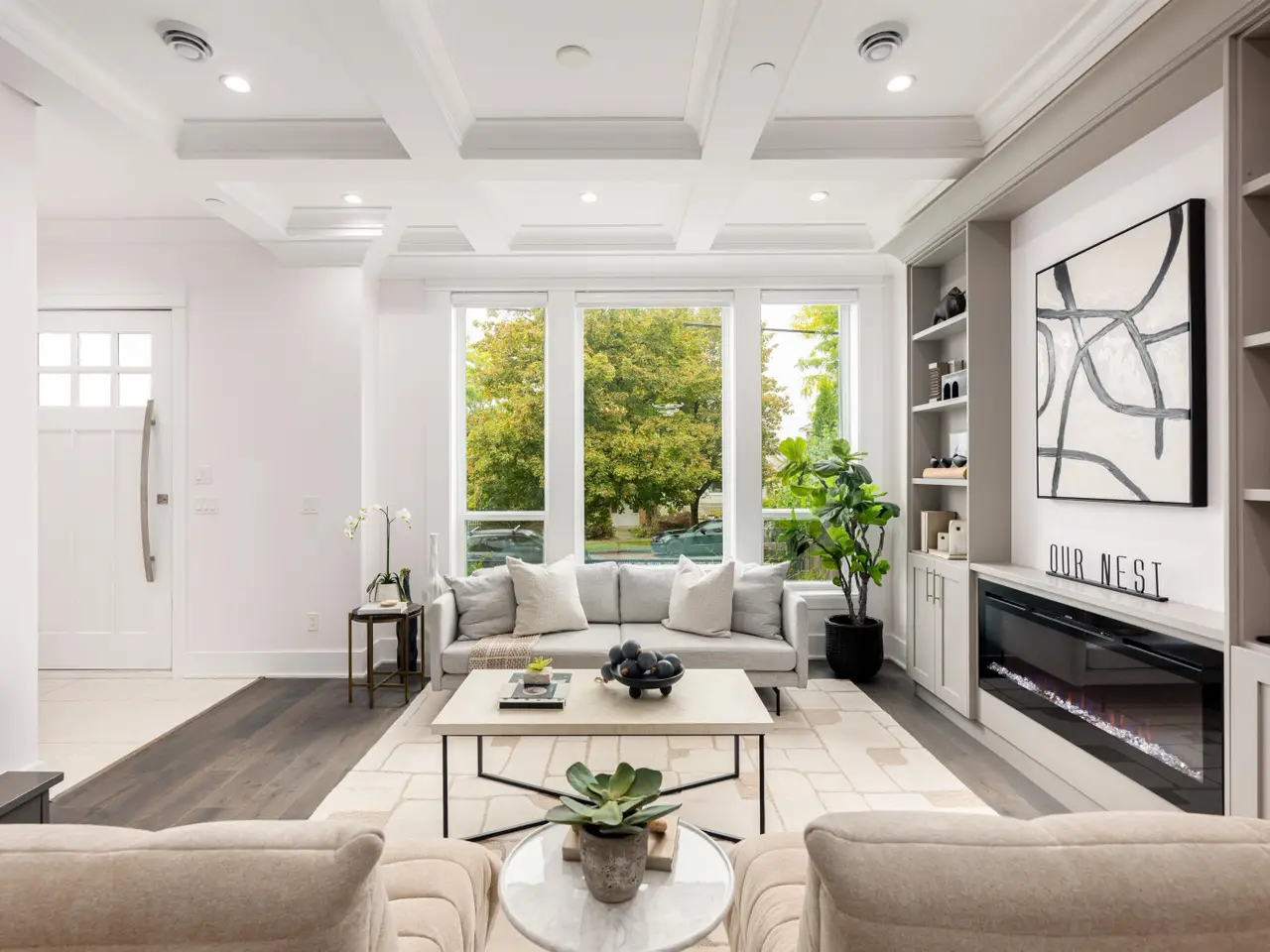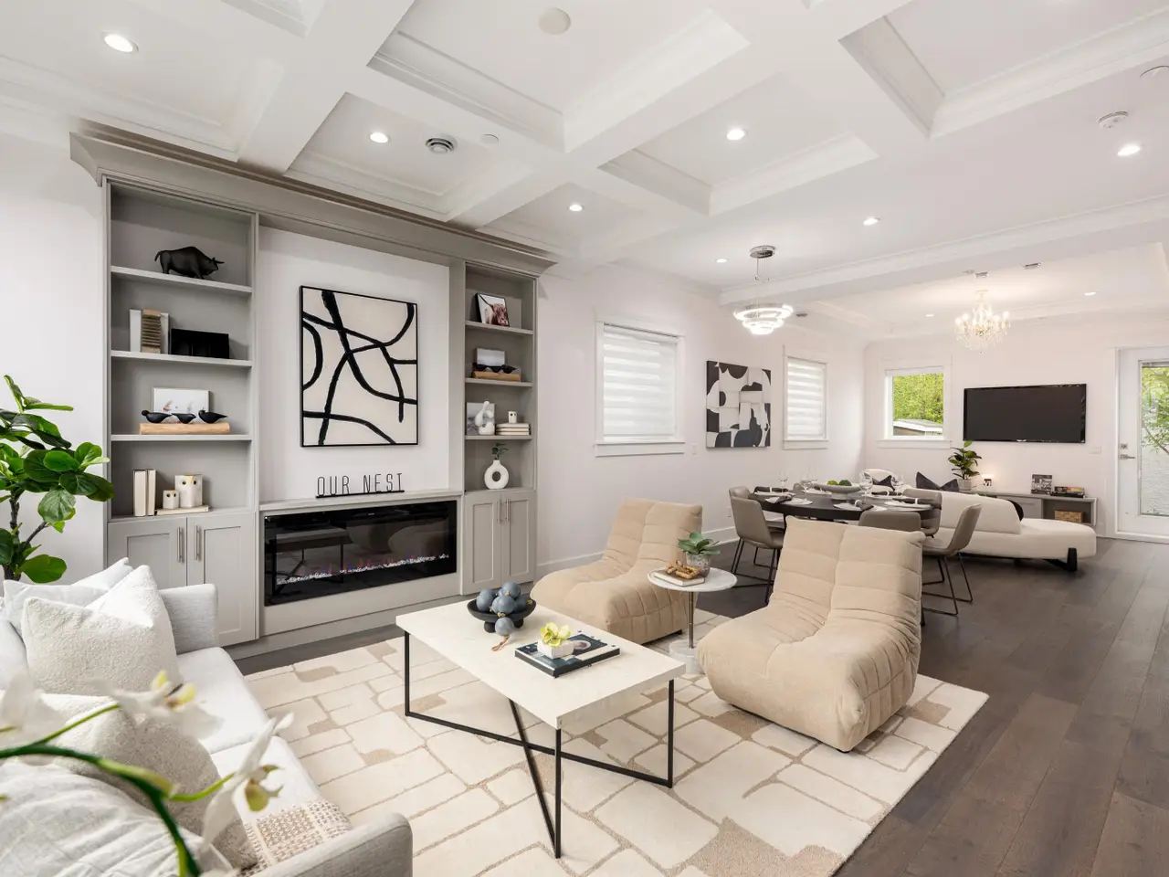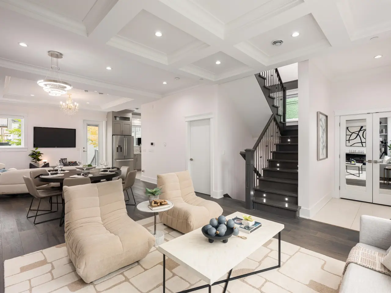 Elegant Family Home with Mortgage Helpers in Renfrew Heights! Welcome to this exceptionally crafted modern residence, perfectly blending comfort, functionality, and investment appeal. Bask in captivating mountain views and admire the superior craftsmanship throughout, highlighted by custom millwork, hardwood floors, radiant heating, and central A/C. The open-concept layout and gourmet kitchen with a wok kitchen create a warm setting for both daily living and entertaining. A legal one-bedroom plus den suite and a two-level laneway house offer excellent mortgage-helper or multi-generational living options. Situated on a peaceful, family-friendly street near schools, parks, and SkyTrain.