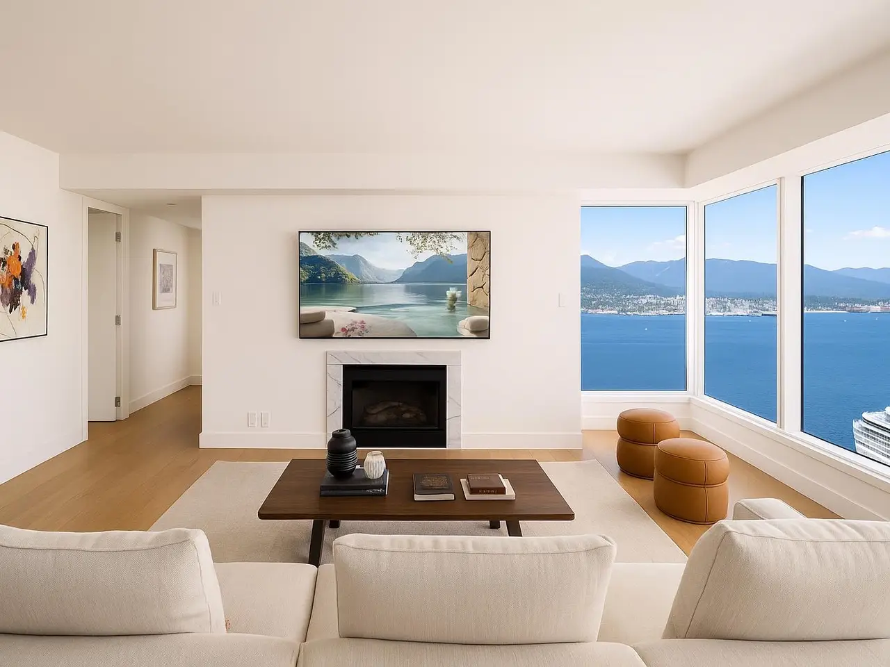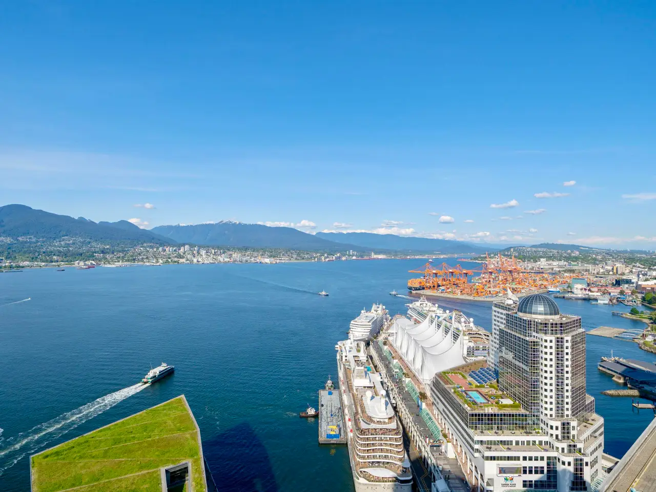 Rarely available, exquisite 02 home in the prestigious Fairmont Pacific Rim. Unobstructed, stunning views of ocean, harbour & northshore mountain from the 5th highest 02 plan. A remarkably expansive, light-filled living room that welcomes the morning sun and flows seamlessly into breathtaking panoramic views. Boasting luxury upgrades in 2020: solid hardwood floor, motorized blinds & blackout shades, marble countertop, the entire laundry room (Miele washer & dryer, countertop, cabinets, sink, faucet), Nest thermostats, all lighting fixtures, water filter, painting; dishwasher & hood fan upgraded in 2024. Boffi Italian kitchen, Miele & Sub-Zero appliances, spa ensuites. Meticulously maintained. Ready to move in. 2 parking.