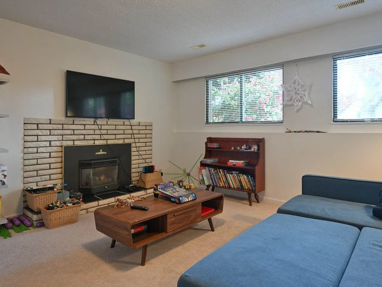 Large rec room with fireplace