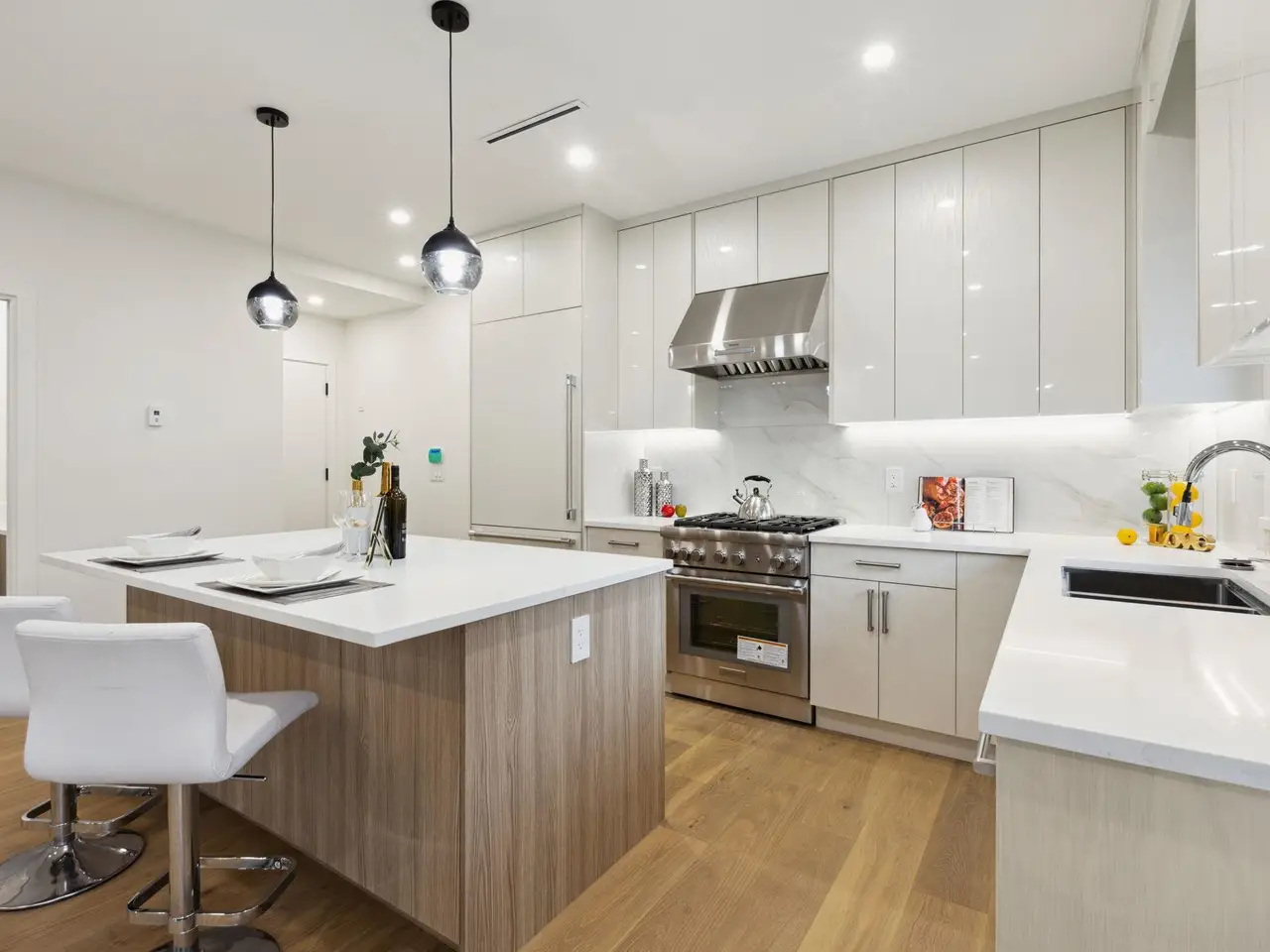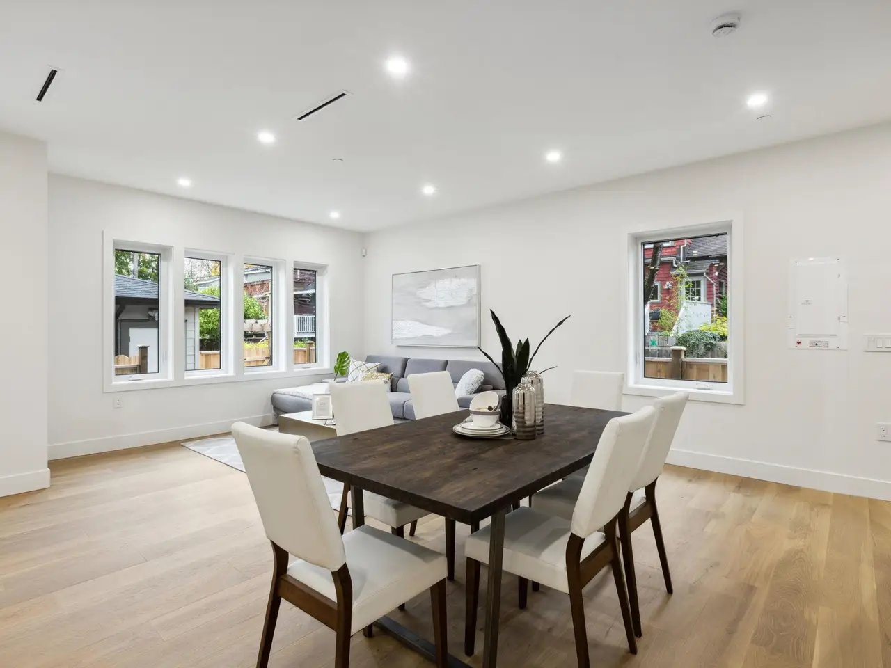 In the heart of Kitsilano; two blocks off Broadway. A stunning back half duplex offers the perfect blend of style, comfort & functionality. Step inside to a bright & spacious open concept layout that flows seamlessly to a private patio & yard, complete with a gas bib for year round BBQs. Chef inspired kitchen features a premium Thermador appliance pkg incl a gas stove, sleek quartz countertops and a huge island. Upstairs, you'll find 2 generous size bedrooms, a separate laundry room on the 2nd level. The top floor, a dedicated luxurious primary bedroom with vaulted ceilings and flex space - a perfect home office. Add'l his-lites: A/C, in-floor radiant heating, tankless hotwater system, comprehensive security system with cameras + EV ready garage.