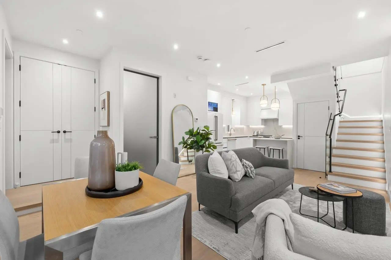 Discover refined living in this stunning 1/2 duplex by Mahnger Homes in the heart of Douglas Park! Elegant design meets luxury with warm tones, oversized windows, and brushed White Oak floors throughout. The gourmet kitchen boasts sleek flat-panel cabinetry, quartz counters/backsplash, and premium matte white appliances. Upstairs, find three spacious bedrooms on one level, each with custom cabinetry. The versatile third level offers a bedroom, guest room, or expansive family room opening to a covered deck—perfect for entertaining. Stay comfortable year-round with a heat pump for heating and cooling. Covered parking and 3 storage lockers add convenience. Steps from parks, cafes, top schools, and transit—this is urban living at its finest! Open House Nov 8th/9th Sat/Sun 2-4pm