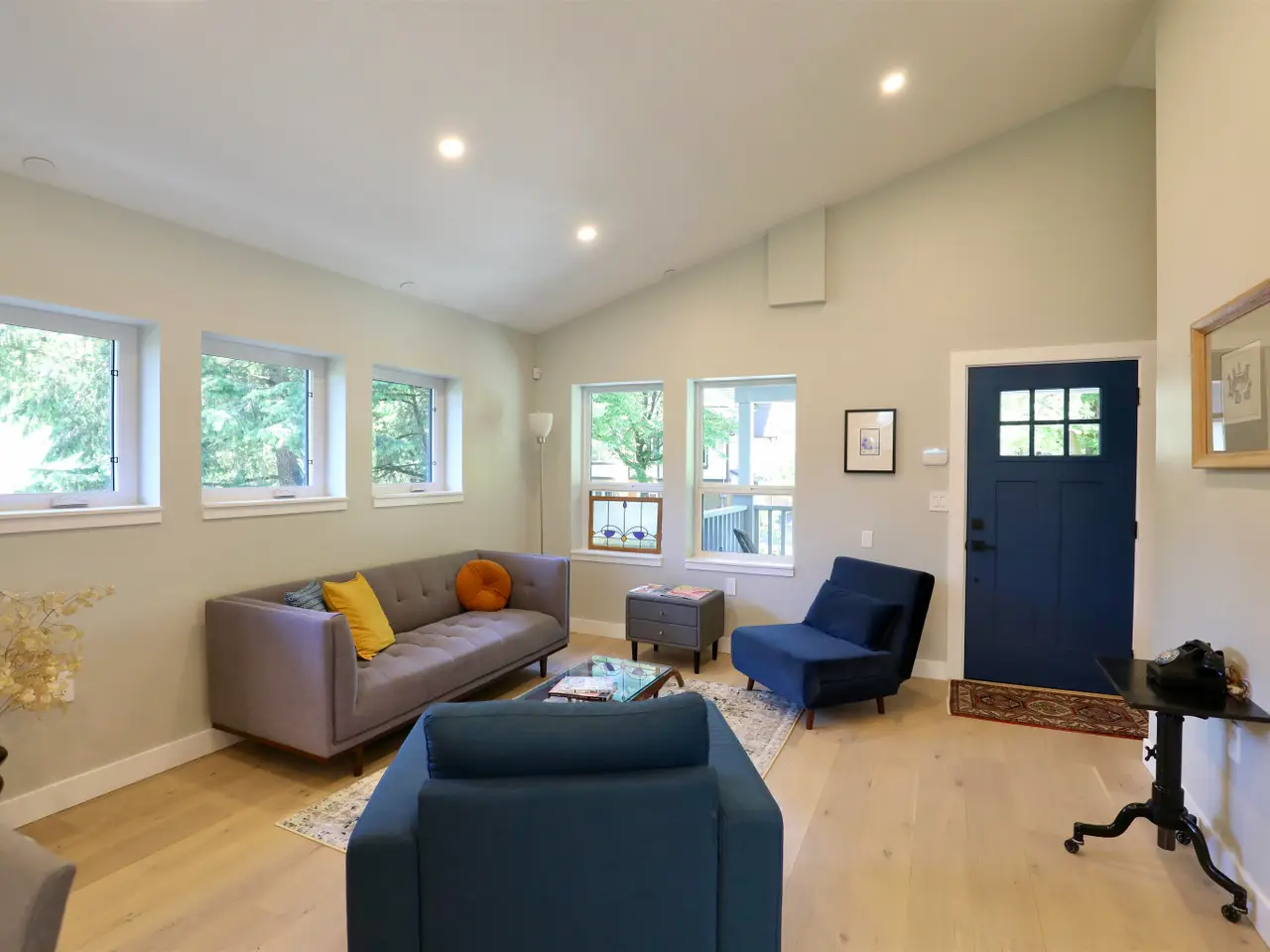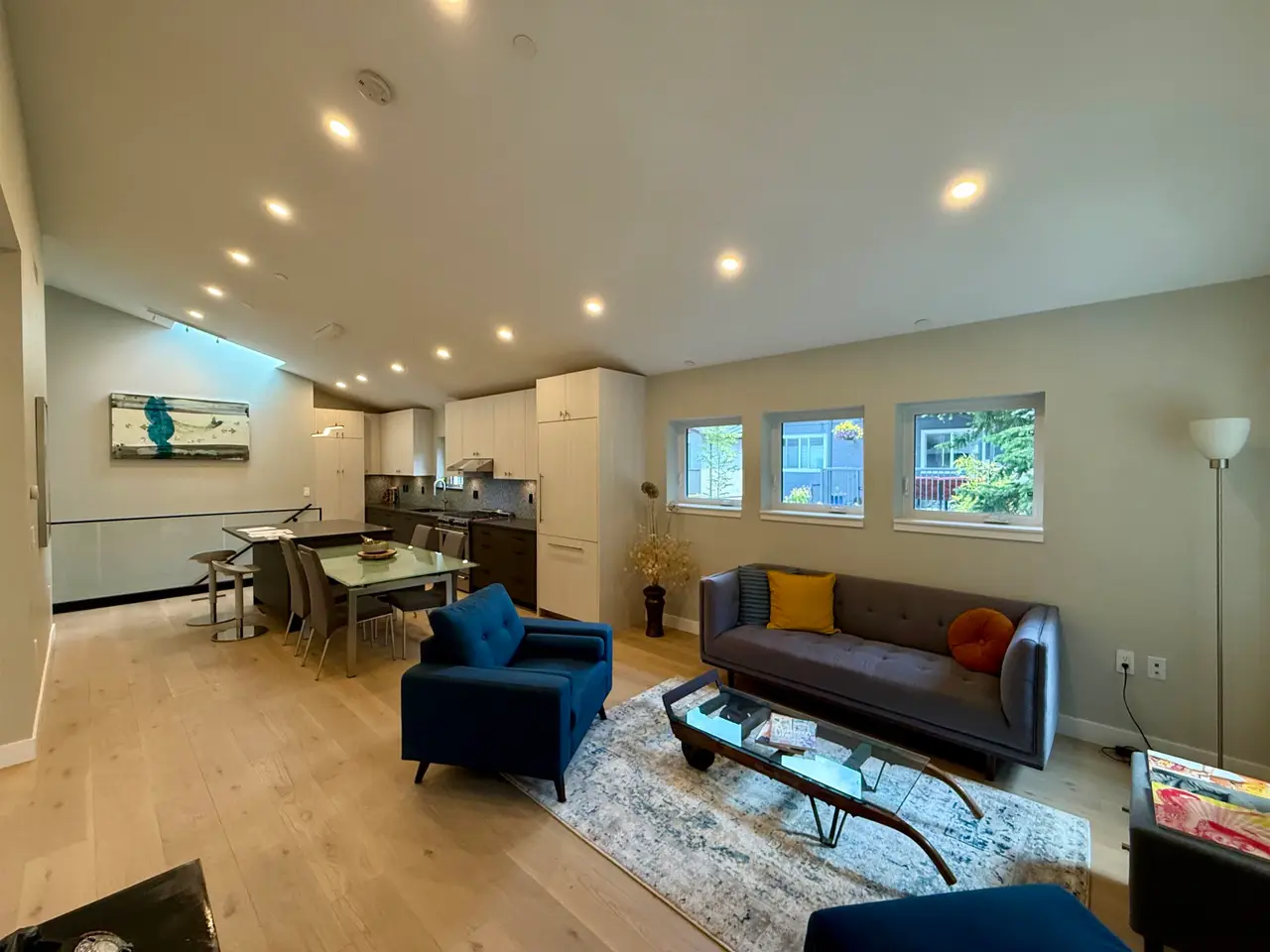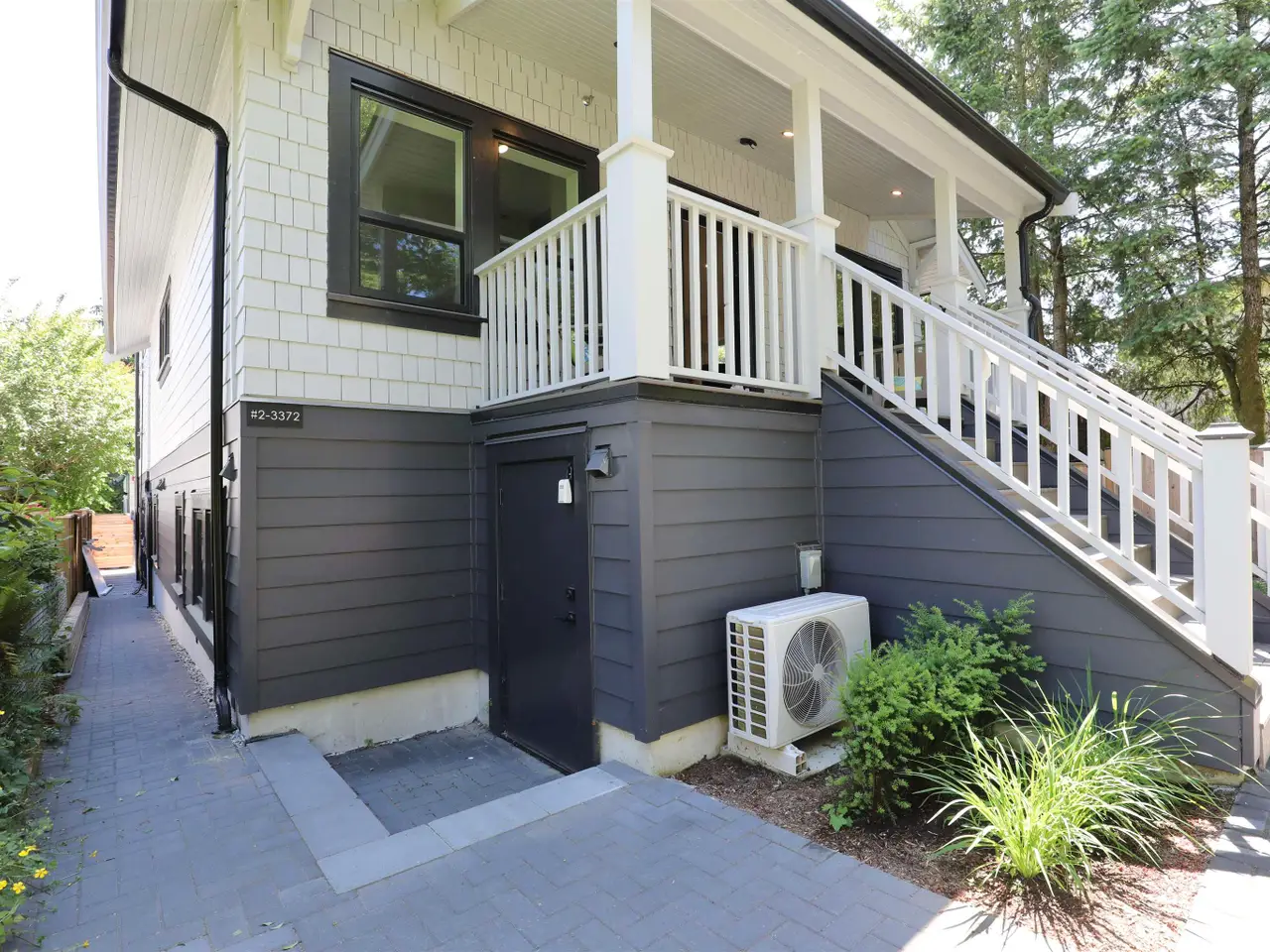 Stunning new, family-friendly ½ duplex in desirable Cedar Cottage. This 2,048 SF home features 5 spacious bedrooms plus 4 full baths, including ground-level legal suite with separate entrance - ideal as a mtg helper, space for extended family or caretaker. The main level is filled with natural light, through an abundance of windows & skylights, accentuating the soaring 12’ vaulted ceilings & an open-concept layout with a chef-inspired kitchen, gas range, counter-depth fridge, custom cabinetry & granite counters. Enjoy energy-efficient, 5-zone radiant in-floor heating, A/C and a sunny west-facing patio & fenced yard - perfect for outdoor entertaining. Includes an attached garage & ample storage. Steps to transit, parks, Trout Lake CC & schools: