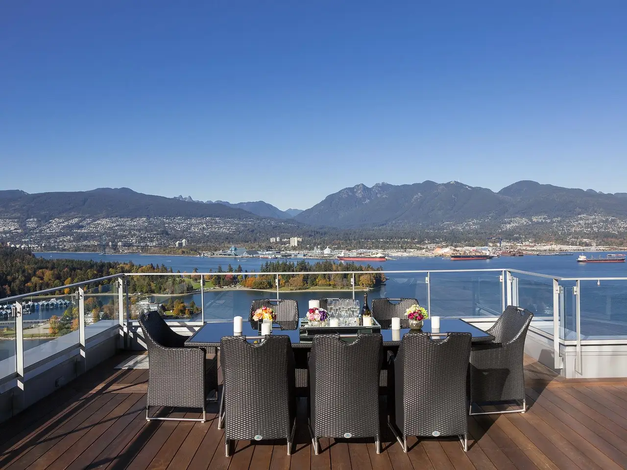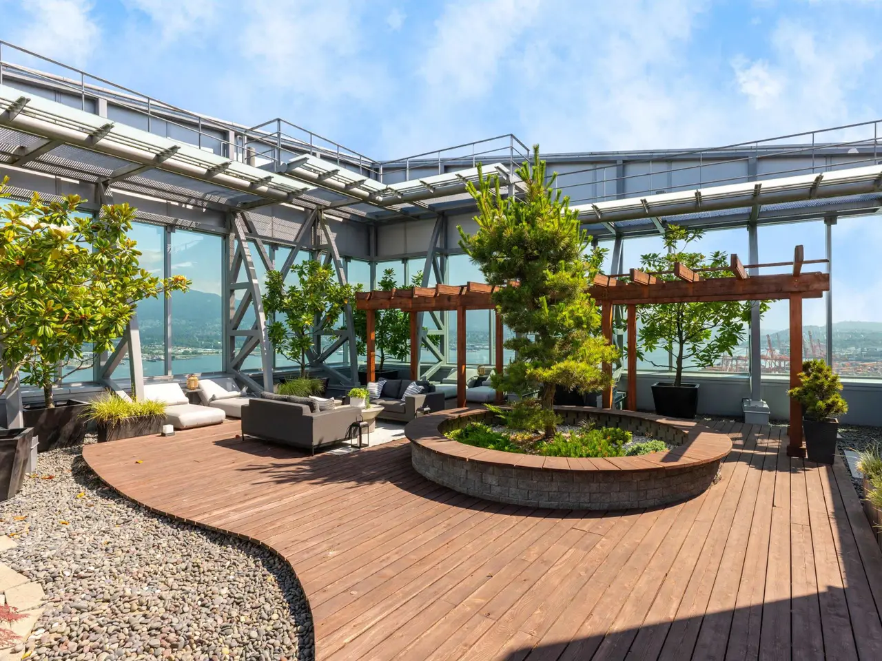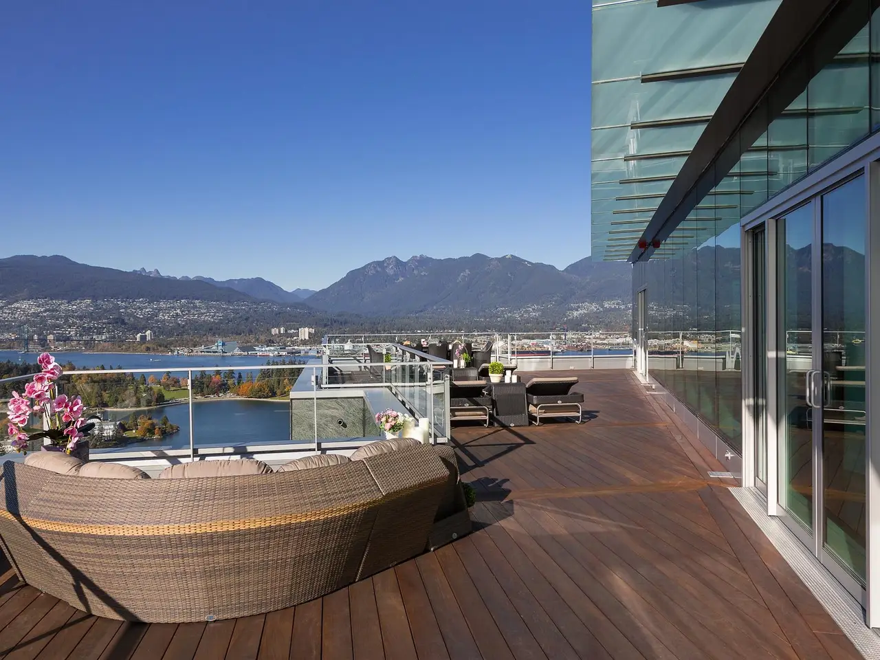 Canada's most prestigious oceanfront penthouse at Three Harbour Green—an entire full-floor residence spanning nearly 13,000 sf of combined living space, perched atop the city's most exclusive & private, 100% residential tower with just 79 suites. W/ 8,009 sf indoors & 4,840 sf outdoor space, incl a 2,500-sf Zen garden & a 2,000 sf patio w Brazilian cedar floors - this home is a masterpiece. Entirely redesigned & upgraded in 2016 by renowned House of Bohn, this unparalleled residence pays tribute to the surrounding vistas, mirroring the landscape w/ understated West Coast flair: 20' ceilings, 360° ocean, mountain & city views, custom millwork, luxurious European finishes. 7-car private garage+3 storage rms. Resort-style amenities: 24/7 concierge, 25' pool, squash court, guest suite & more.