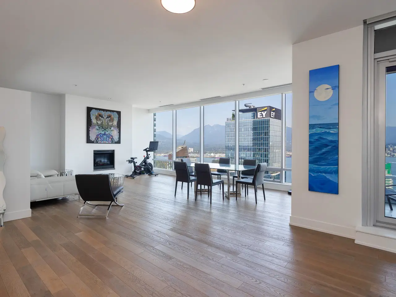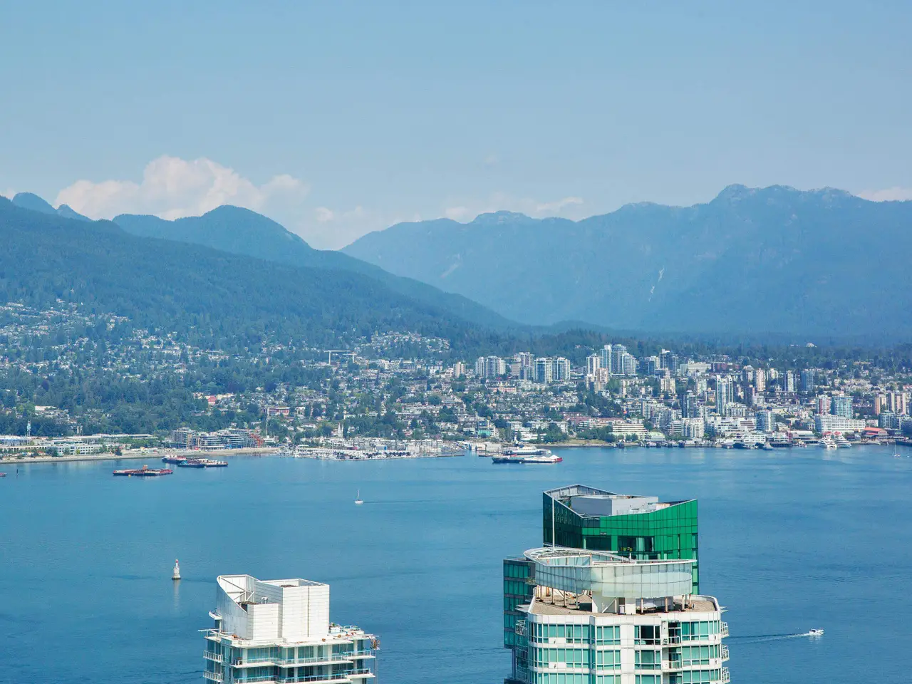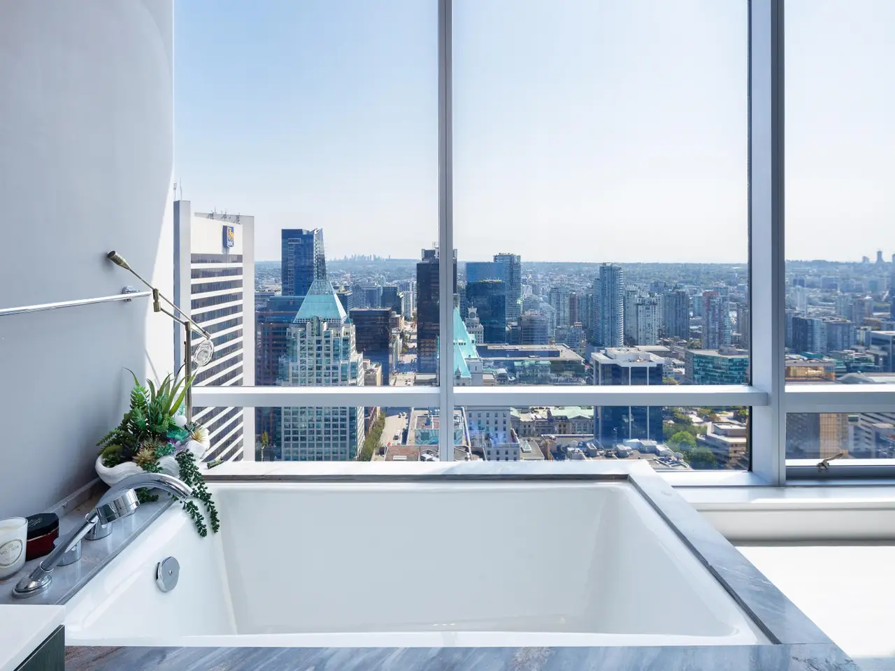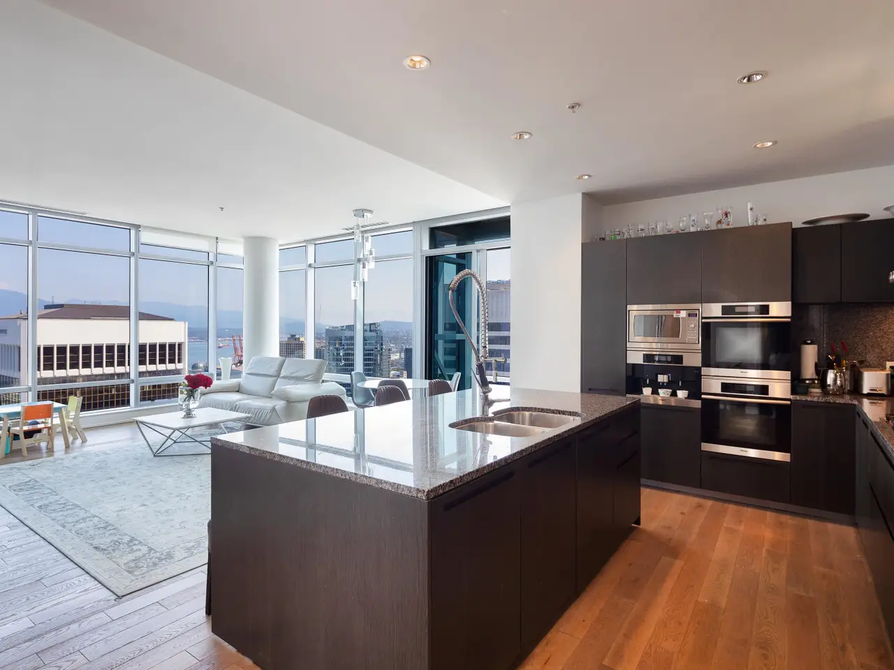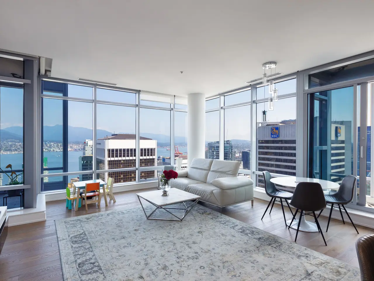 Floor-to-ceiling windows with panoramic ocean, mountain & city views