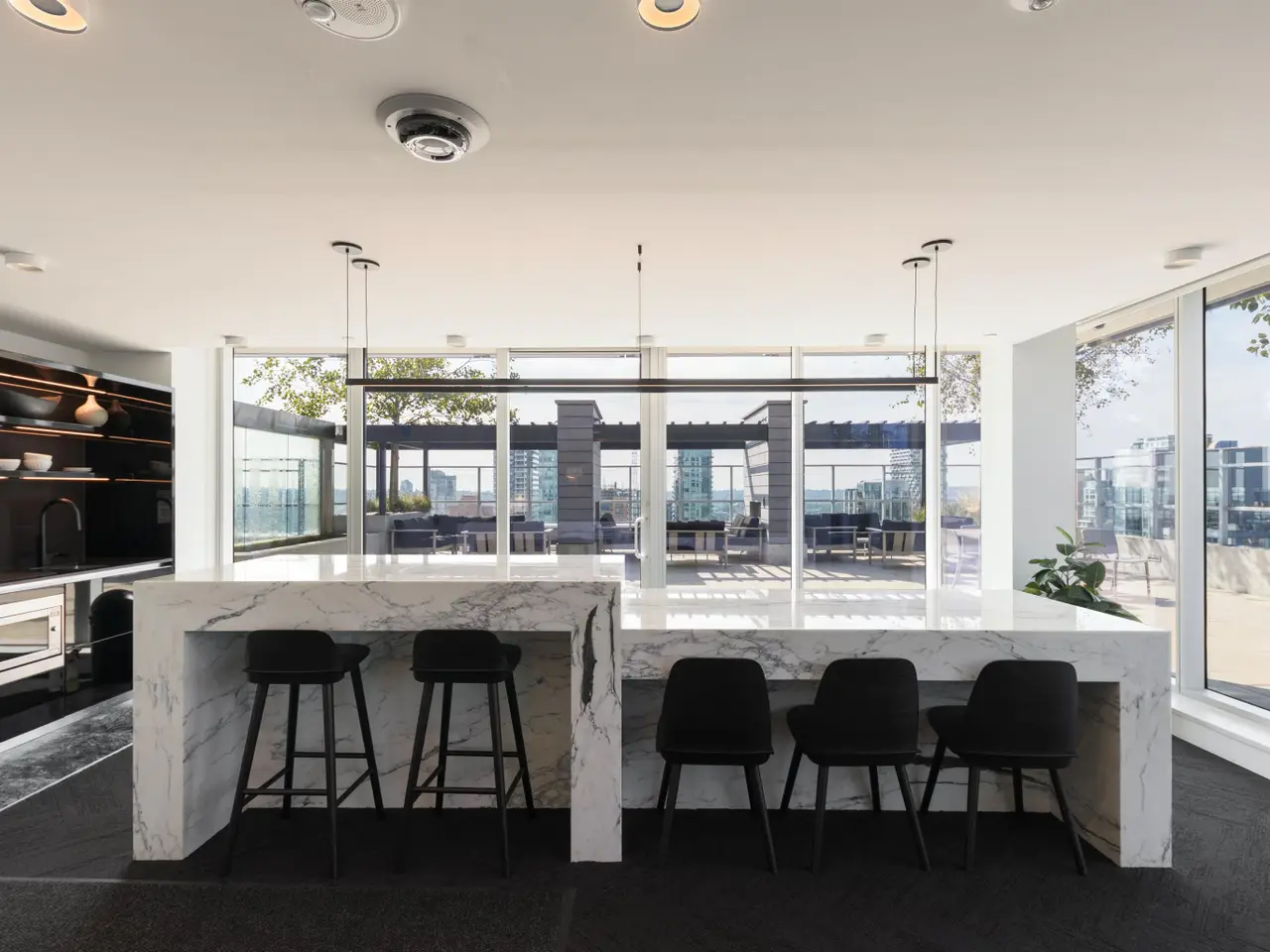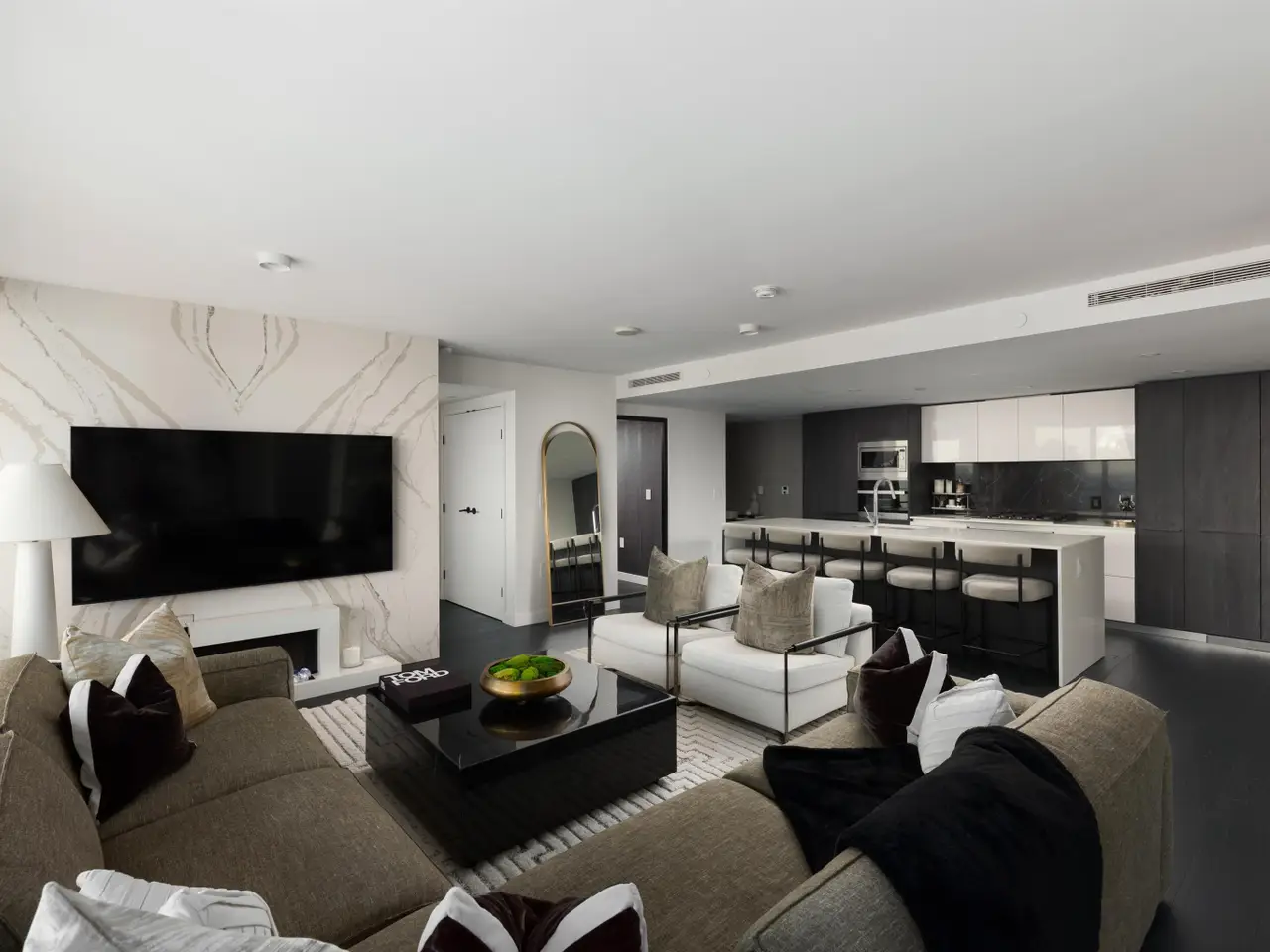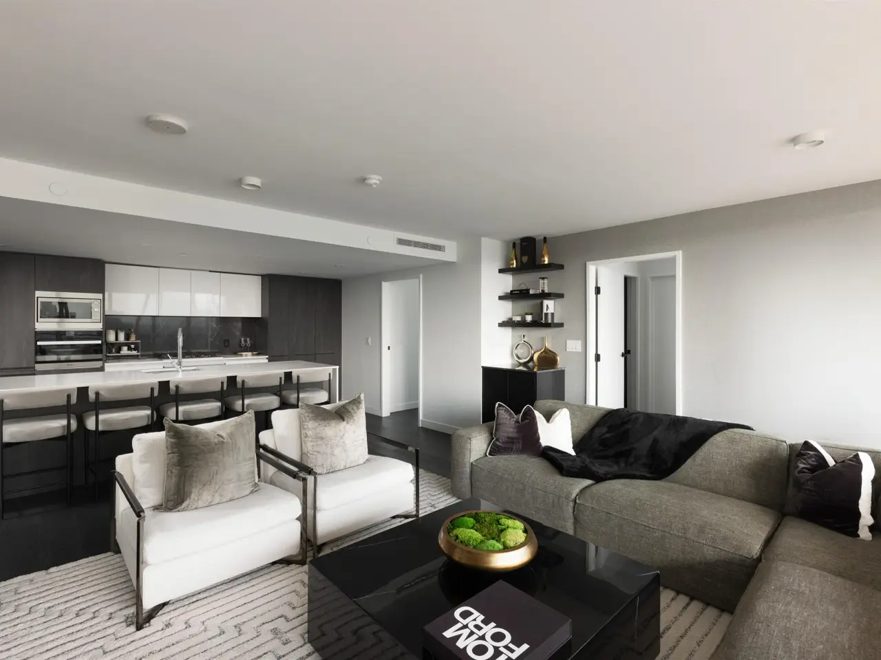 Elevated & updated corner home at 8X on the Park with panoramic views of False Creek, city, and mountains. This refined 3 bed, 2 bath residence features a 10ft natural stone island, integrated Miele appliances, custom millwork, powered blinds, and floor-to-ceiling windows. The open plan flows to an oversized covered patio with herringbone wood decking. Elegant bedrooms, a reimagined walk-in closet, engineered hardwood, natural tile, & A/C throughout complete the home. Includes 2 side-by-side parking, storage, and bike locker. Enjoy world-class amenities: concierge, fitness centre, and rooftop oasis. A rare, turnkey offering in one of Vancouver's premier buildings.