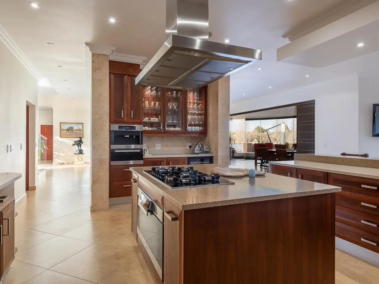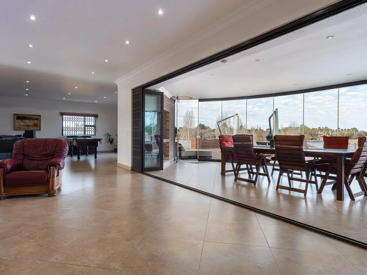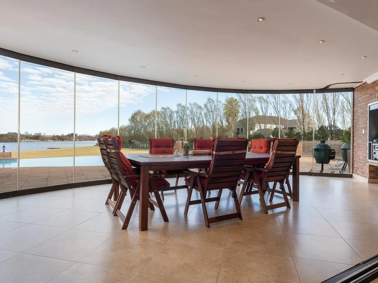 Indulge in the epitome of waterfront living at The Vaals Millionaire Mile, the most sought-after address along the majestic Vaal River. This enchanting property is a true Summer Symphony and a Winter Sunset Dream, spread across 8 hectares of breathtaking beauty and unparalleled tranquility. Step into a world of elegance and comfort, where low-maintenance luxury meets contemporary design. The residence, boasting the prestigious address of Severn Rd Marlbank, was thoughtfully built in 2011, ensuring modern conveniences and timeless aesthetics. Experience the ultimate in comfortable living as you arrive at the face-brick main house, designed with meticulous attention to detail. Enter into three expansive tiled living areas that seamlessly merge with an exotic, dark wood kitchen. The kitchen is a culinary haven, complete with high-end Miele appliances, a built-in 5-plate gas stove, electric oven hob, and a central island crowned with exquisite Caesar stone tops. Delight in the convenience of two built-in food warmers, full induction stoves, an extractor, and a wine cooler fridge. Glass stacking doors invite natural light and picturesque river views into the living spaces, and the patio is the perfect vantage point to immerse yourself in the splendor of unforgettable Vaal River sunsets. The opulent main bedroom indulges the senses with a spa-like en-suite bathroom featuring a spa bath, rain shower, and double basins. All bathrooms throughout the property boast heated towel rails, elevating your everyday comfort. In addition to the four carpeted en-suite bedrooms, there's an extra room perfect for a study or home office. For the fitness enthusiast, a well-equipped gym awaits, ensuring you stay in peak condition while embracing the natural beauty surrounding you. As an extraordinary addition to this invincible home, the Cottage/Flatlet built in 2007 showcases a stunning wood kitchen with marble tops, space for three appliances, and a double fridge. The carpeted bedroom exudes comfort, and the bathroom offers a double shower with two basins, all graced by the warmth of underfloor heating and a gas jet master fireplace. An outdoor gas braai allows for delightful al fresco dining and entertaining. The property also boasts remarkable amenities, including two jetties, one designed to accommodate a barge, and three boathouses attached to each other. For added convenience, two fully equipped staff accommodations ensure the smooth running of the estate. With plans approved, the hangar will soon be a valuable asset, housing essential extras like a barge, tractor, and lawnmower. The entire area is powered by a reliable 140 kva generator, ensuring uninterrupted comfort and security. Experience a life of splendor, where water is purified with a remarkable 25,000-litre system, heated by an 800-litre gas boiler, illuminated by energy-efficient LED lights throughout, and kept lush and green with a Rain Bird irrigation system. Indulge in the pinnacle of luxury and convenience with an internal alarm system, a central vac system, and high-speed Wi-Fi through Vaal Network. Seize this rare opportunity to own a riverfront estate that harmoniously blends modern living with natural serenity. Your Symphony of Serenity awaits at The Vaals Millionaire Mile - an iconic masterpiece beckoning you to call it home. Arrange your private tour today and step into a world of timeless elegance and enchanting beauty!