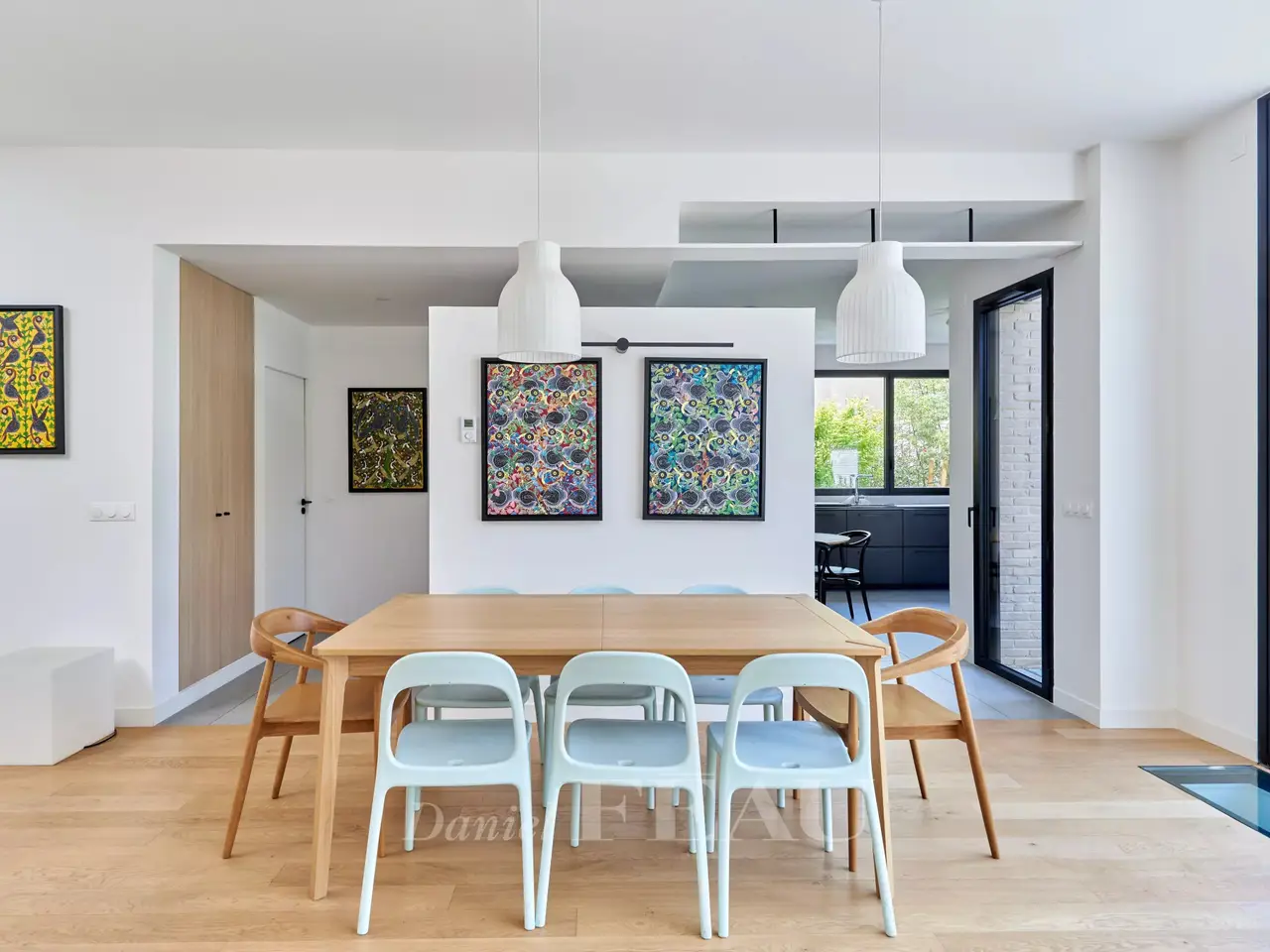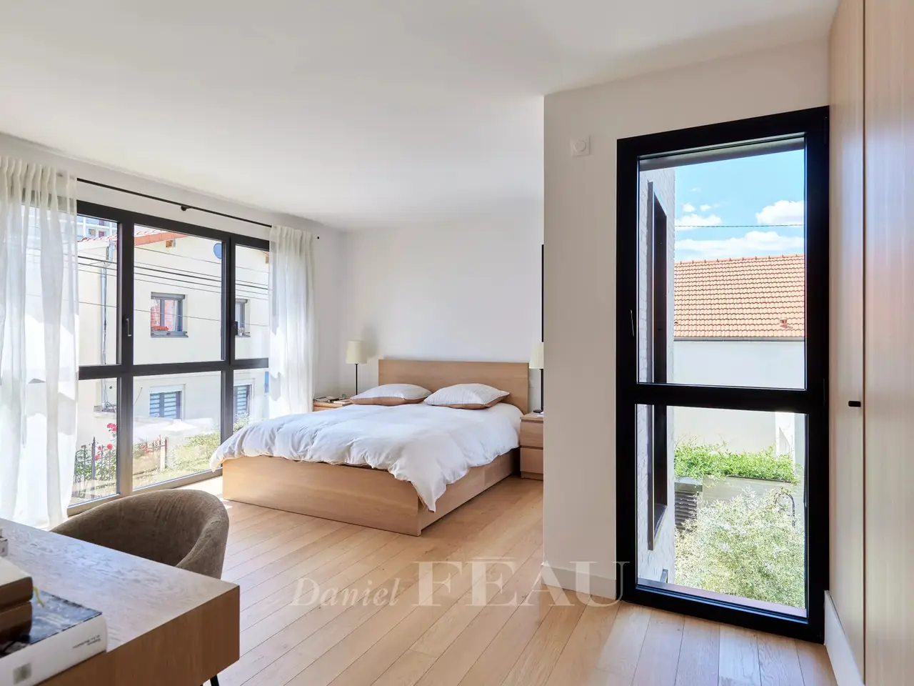 In a green bower, nearby Vanves train station, architect house dating from 2022, offering 284 sqm of living space and a garden-terrace space of 62 m². On ground floor, the entry leads to a separate and equipped kitchen, a spacious living room opening onto the garden, a suite and its shower room, a study and a separate wc ; on the upper floor, four bedrooms, three shower rooms and a separate wc on the landing. In the basement, a utility room, a living room, a fitness room, a pantry and a technical space.