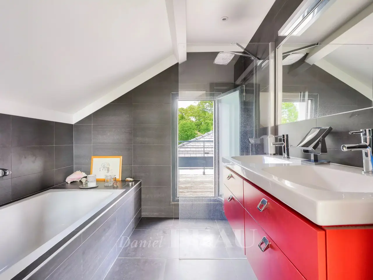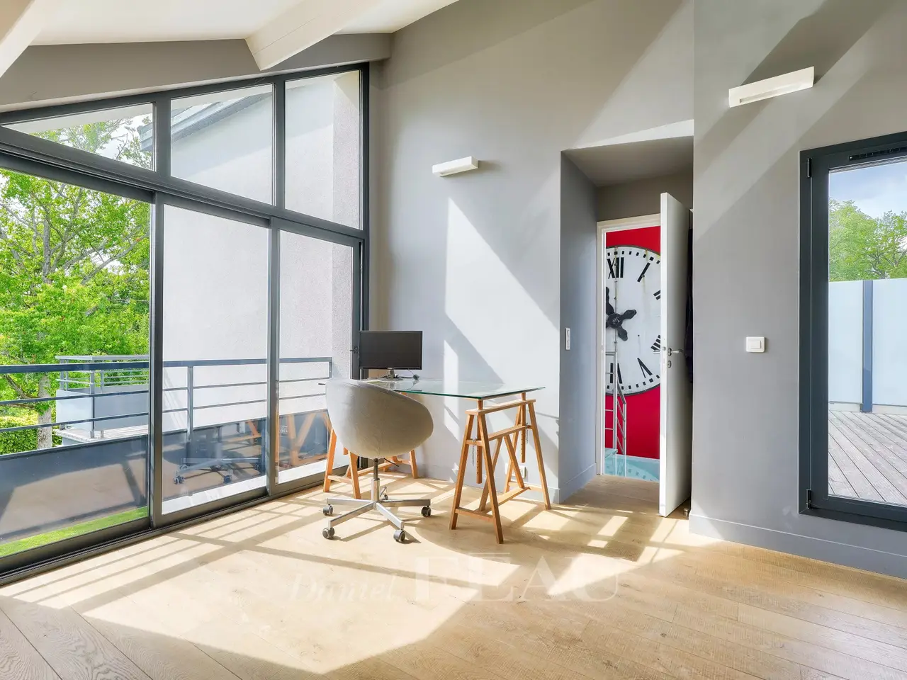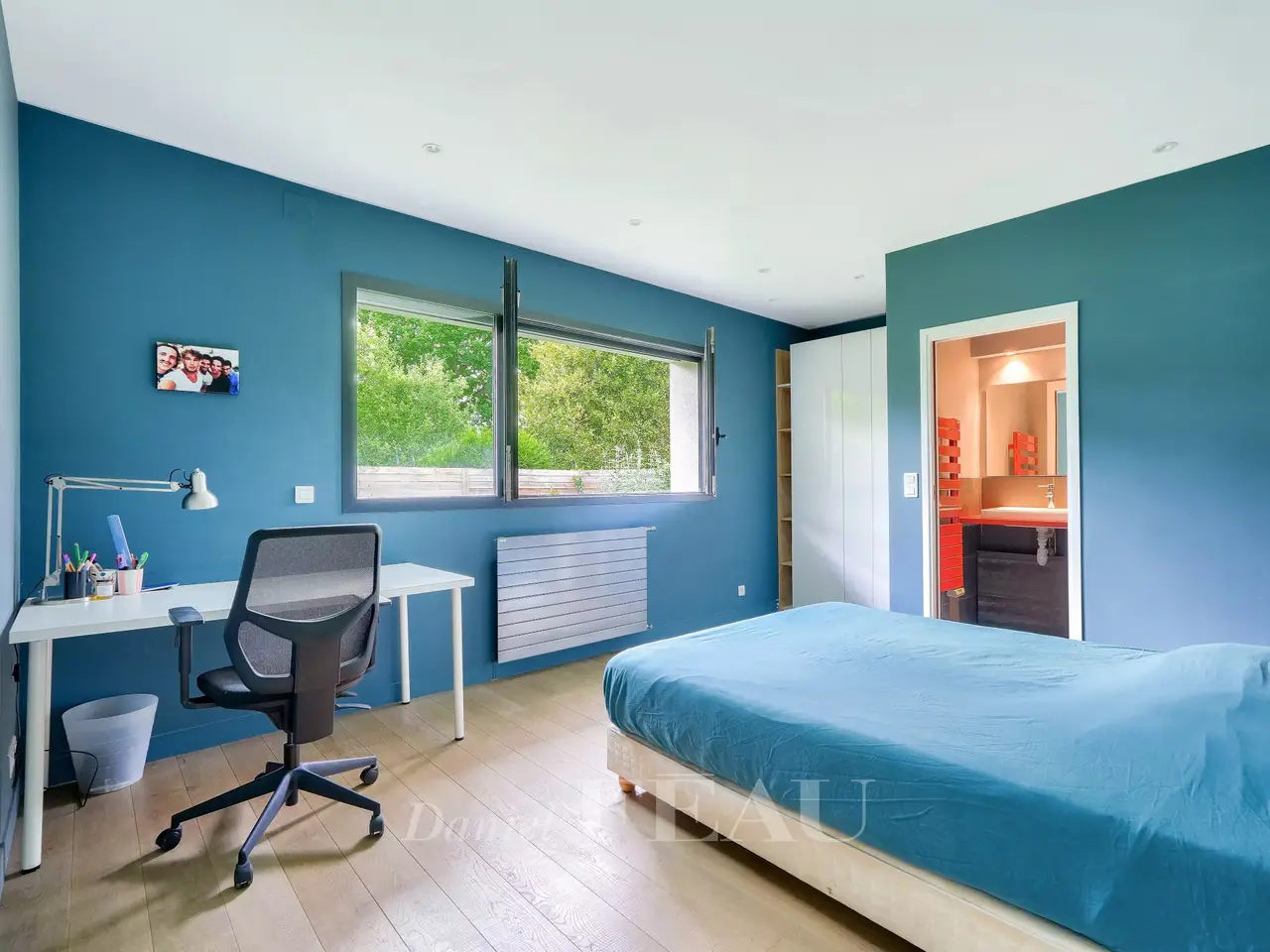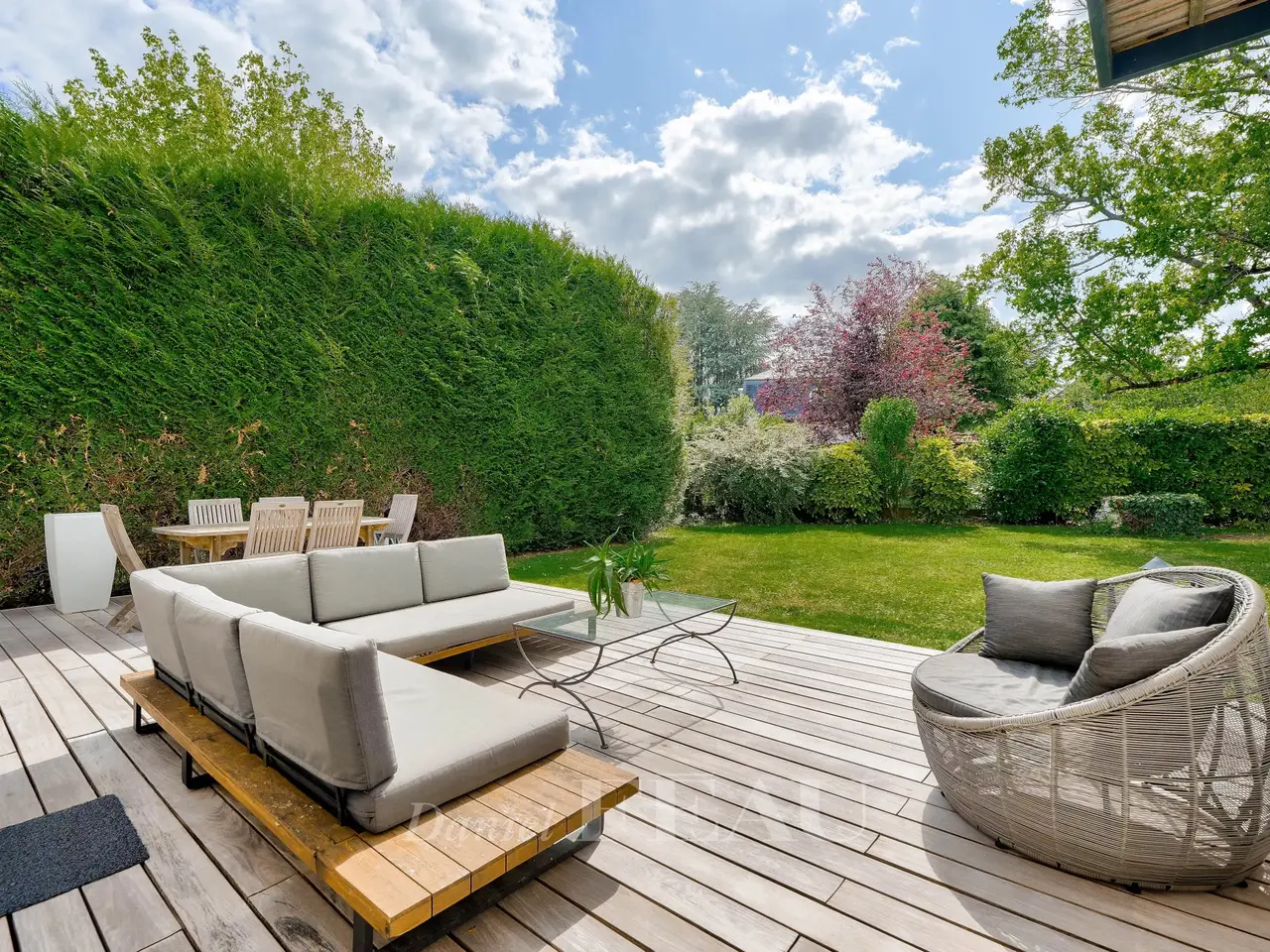 Sole Agent. This 1930s property extended in 2015 to offer 285 sqm of floor space and about 250 sqm of living space is set in a level 842 sqm plot. It includes a 70 sqm living/reception room with a fireplace accessing terraces, an equipped kitchen, a study, two bedrooms with shower rooms, and a guest wc. Upstairs are a spacious master suite with a bath/shower room, and a bedroom with a shower room, each opening onto a terrace. On an entresol with a guest bedroom with a shower room, a recreation room, a utility room and a garage. A 7/ minute walk from the station, the shops and the schools.
