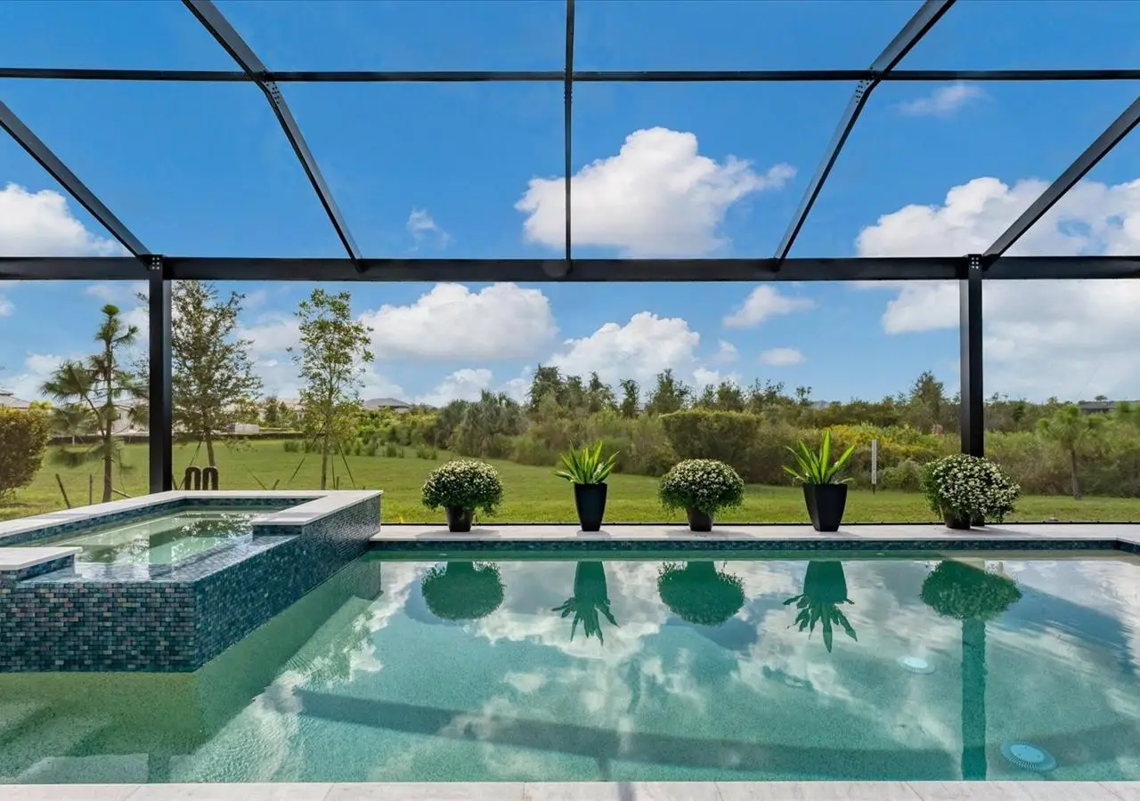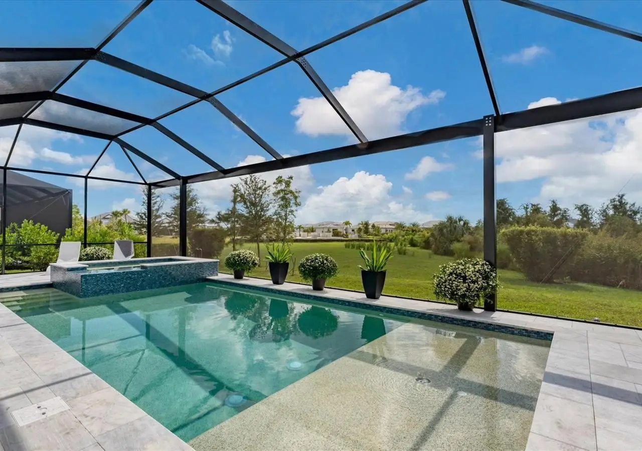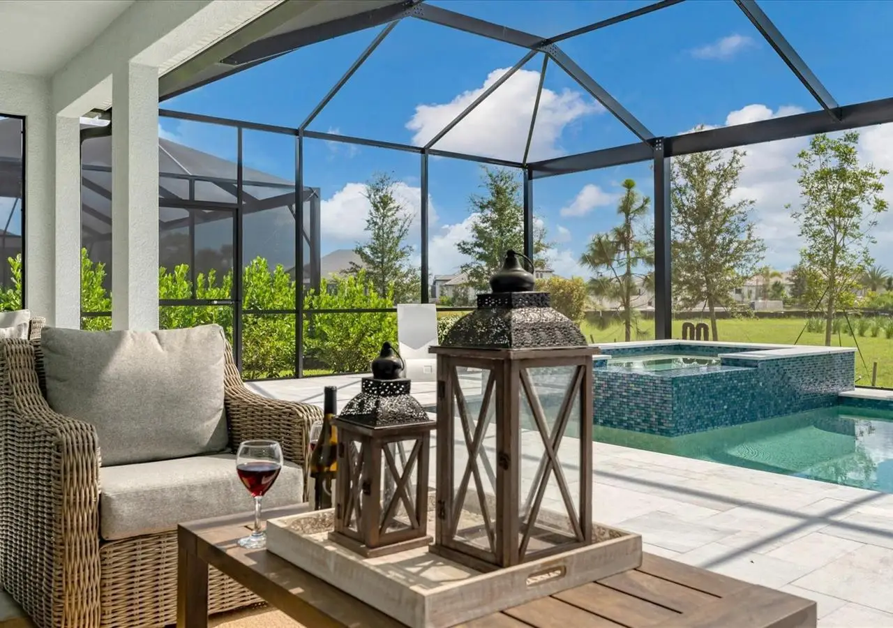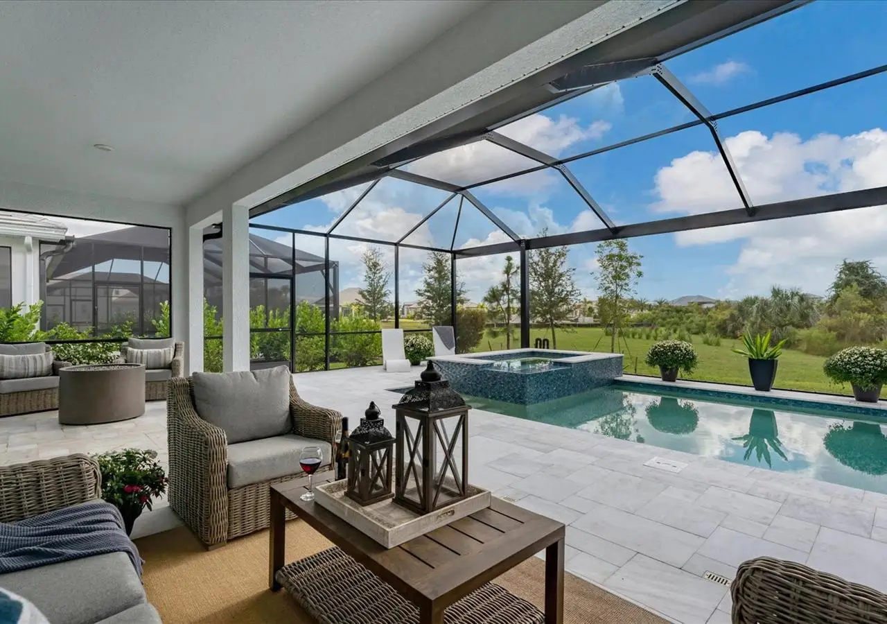 Experience luxury living within Wellen Park's Everly neighborhood, a private, amenity-rich, gated community designed for those who appreciate elegance, comfort, and connection. This exquisite residence embodies modern coastal living with over 3,600 square feet of refined interior space and an expansive outdoor entertaining retreat. Step outside to your custom-designed saltwater pool and spa, complete with a sun shelf and concrete sub-base deck - engineered to prevent settling and shifting of the main pool deck while providing easier long-term maintenance. The travertine tile lanai, generous covered spaces, and natural preserve backdrop create a peaceful and private oasis ideal for entertaining or relaxation. Inside, a soft neutral palette and designer-selected finishes create an atmosphere of warmth and sophistication. The gourmet kitchen is a chef's dream, featuring Monogram appliances, gas cooking, two spacious pantries, and a custom layout perfect for hosting and gathering. A dedicated den or office offers flexible space for working remotely or enjoying quiet retreat time. The primary suite serves as a luxurious sanctuary, with a soaking tub, rain shower, and elegant design touches throughout. Three additional bedrooms and baths provide comfort and privacy for family and guests alike. The second floor expands the home's versatility - offering a bedroom, full bath, and an open area ideal for a media room, gaming space, or children's retreat. Car enthusiasts and golf lovers will appreciate the three-car garage configuration, with a front-facing two-car garage and a side-entry single-car garage - perfect for a golf cart or extra storage. Residents of Everly enjoy access to premier community amenities, including a resort-style pool and spa, state-of-the-art fitness center, pickleball courts, and an elegant clubhouse - all designed to complement the vibrant, active lifestyle that defines Wellen Park. Conveniently located and just a golf cart ride to downtown Wellen Park, near local beaches, Venice shopping and dining, Atlanta Braves Spring Training Facility, I-75, and area airports. Every inch of this home showcases impeccable craftsmanship and bespoke design, creating a residence that is as breathtaking as it is functional. Designed for both beauty and function, the home features impact-rated windows for weather protection, energy efficiency, and peace of mind. Every detail from the coastal-inspired lighting to the thoughtful architectural flow - reflects a level of craftsmanship and design unique to Everly living. Whether entertaining by the pool, relaxing in the spa, or gathering in the heart of the home, this property offers an elevated coastal lifestyle in one of Wellen Park's most prestigious neighborhoods. No waiting to build this winter- this extraordinary home is complete and ready to welcome you home.