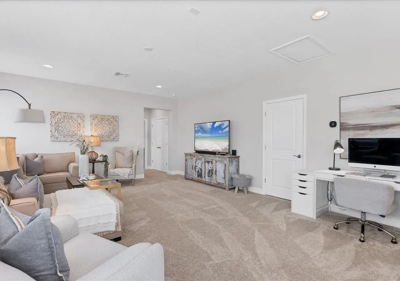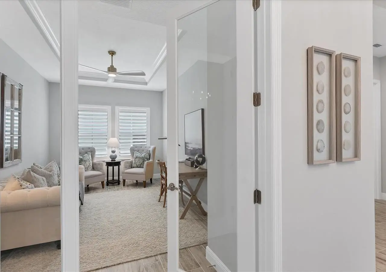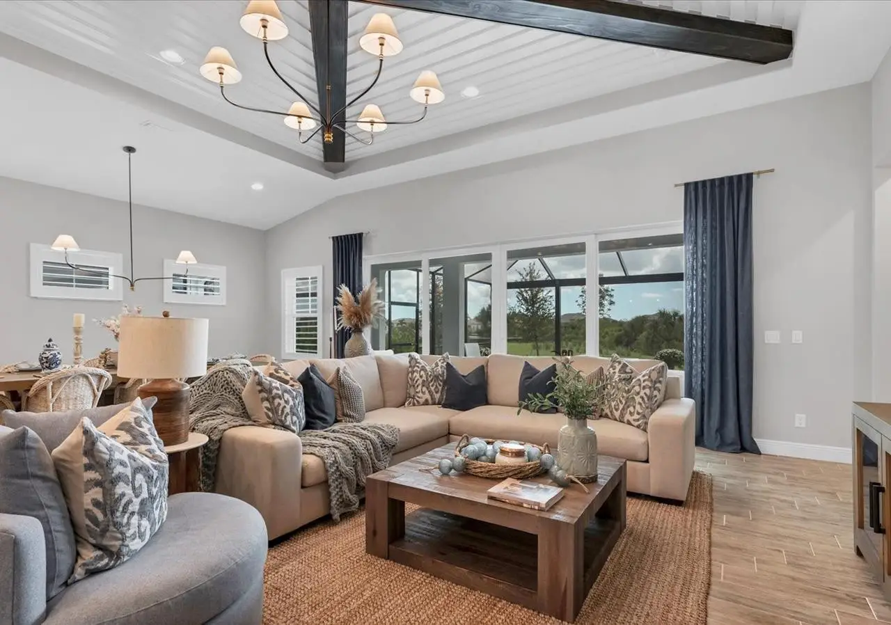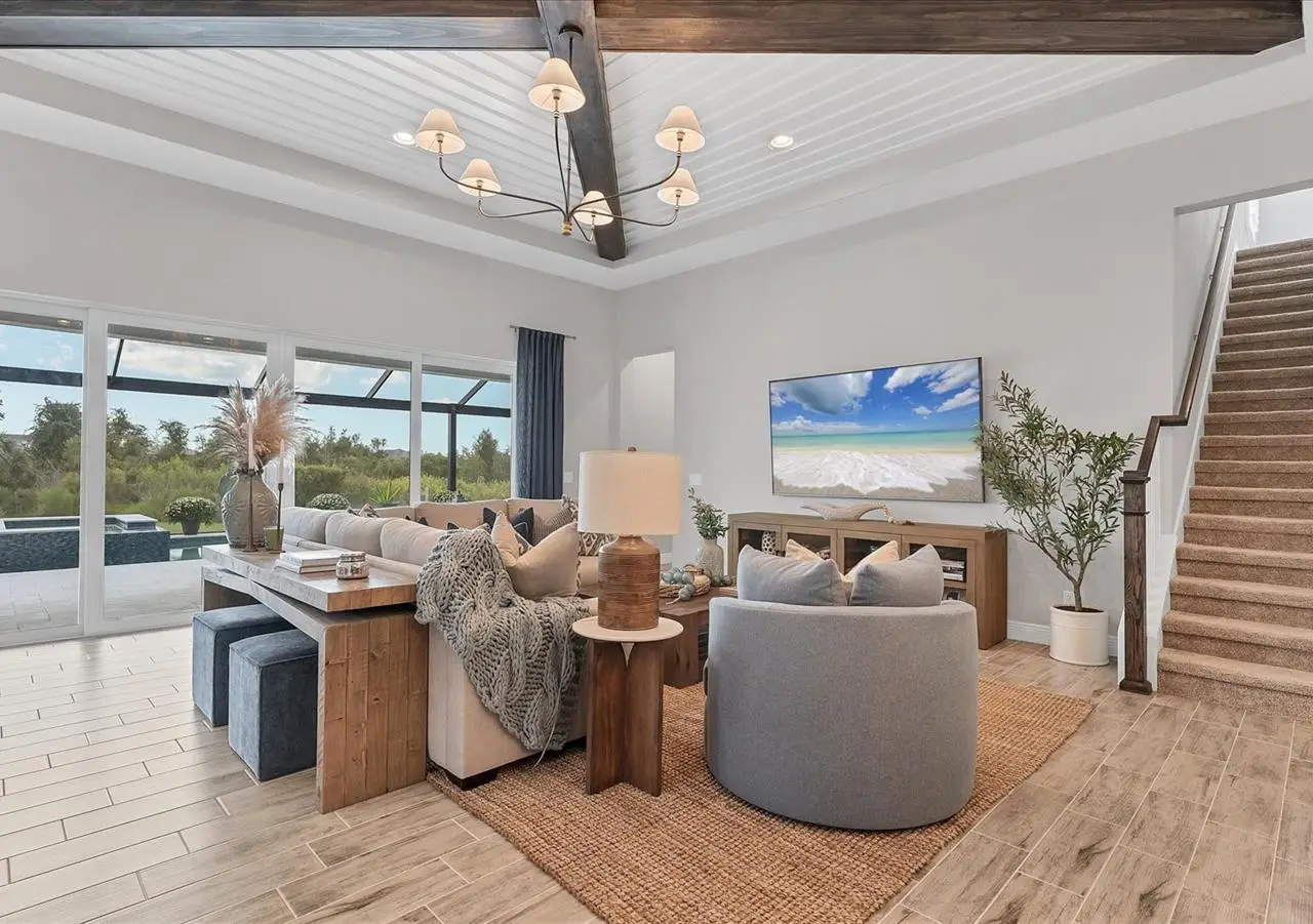 Experience luxury living within Wellen Park's Everly neighborhood, a private, amenity-rich, gated community designed for those who appreciate elegance, comfort, and connection. This exquisite residence embodies modern coastal living with over 3,600 square feet of refined interior space and an expansive outdoor entertaining retreat. Step outside to your custom-designed saltwater pool and spa, complete with a sun shelf and concrete sub-base deck - engineered to prevent settling and shifting of the main pool deck while providing easier long-term maintenance. The travertine tile lanai, generous covered spaces, and natural preserve backdrop create a peaceful and private oasis ideal for entertaining or relaxation. Inside, a soft neutral palette and designer-selected finishes create an atmosphere of warmth and sophistication. The gourmet kitchen is a chef's dream, featuring Monogram appliances, gas cooking, two spacious pantries, and a custom layout perfect for hosting and gathering. A dedicated den or office offers flexible space for working remotely or enjoying quiet retreat time. The primary suite serves as a luxurious sanctuary, with a soaking tub, rain shower, and elegant design touches throughout. Three additional bedrooms and baths provide comfort and privacy for family and guests alike. The second floor expands the home's versatility - offering a bedroom, full bath, and an open area ideal for a media room, gaming space, or children's retreat. Car enthusiasts and golf lovers will appreciate the three-car garage configuration, with a front-facing two-car garage and a side-entry single-car garage - perfect for a golf cart or extra storage. Residents of Everly enjoy access to premier community amenities, including a resort-style pool and spa, state-of-the-art fitness center, pickleball courts, and an elegant clubhouse - all designed to complement the vibrant, active lifestyle that defines Wellen Park. Conveniently located and just a golf cart ride to downtown Wellen Park, near local beaches, Venice shopping and dining, Atlanta Braves Spring Training Facility, I-75, and area airports. Every inch of this home showcases impeccable craftsmanship and bespoke design, creating a residence that is as breathtaking as it is functional. Designed for both beauty and function, the home features impact-rated windows for weather protection, energy efficiency, and peace of mind. Every detail from the coastal-inspired lighting to the thoughtful architectural flow - reflects a level of craftsmanship and design unique to Everly living. Whether entertaining by the pool, relaxing in the spa, or gathering in the heart of the home, this property offers an elevated coastal lifestyle in one of Wellen Park's most prestigious neighborhoods. No waiting to build this winter- this extraordinary home is complete and ready to welcome you home.