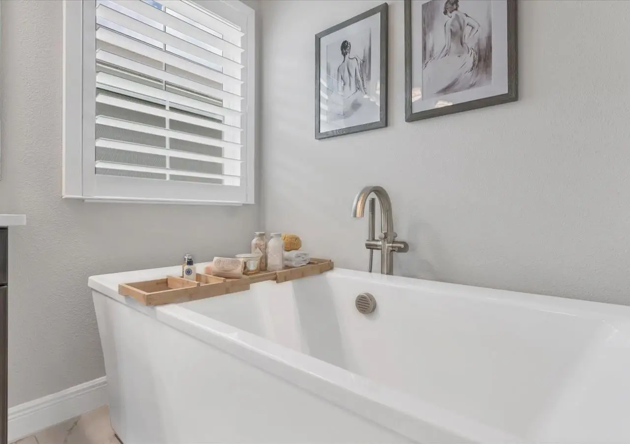 Primary suite with soaking tub and rain shower