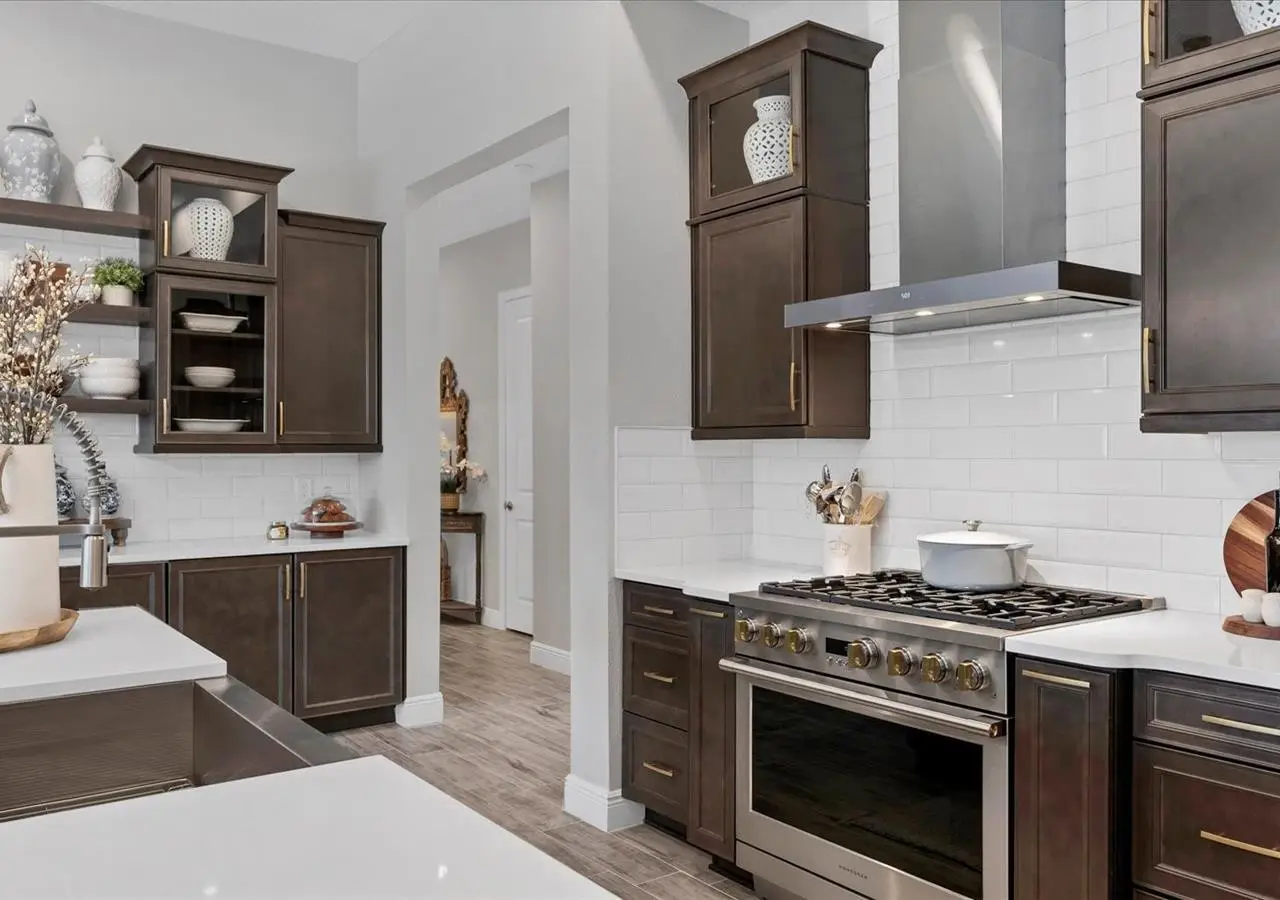 Gourmet kitchen with Monogram appliances and gas cooking