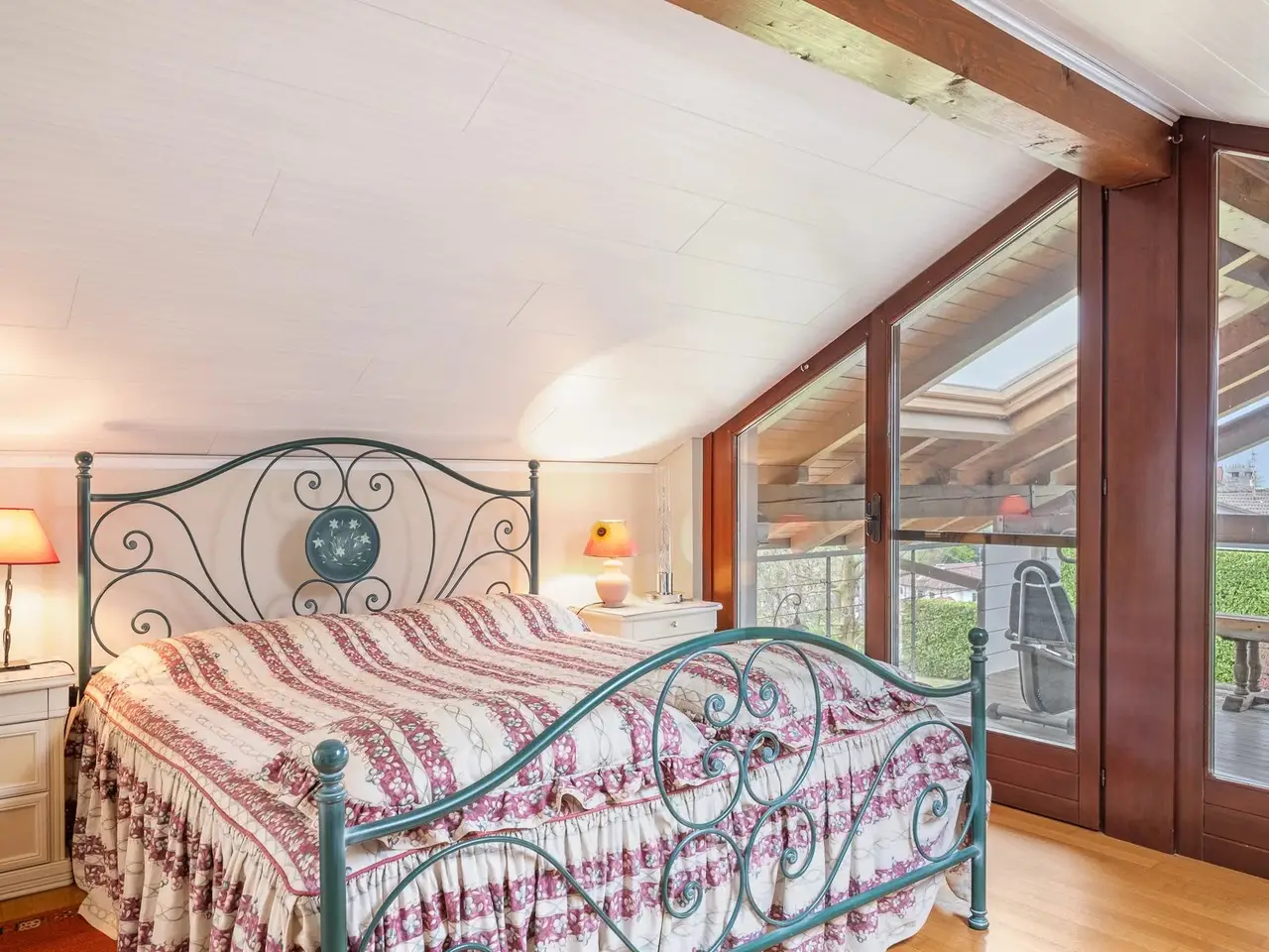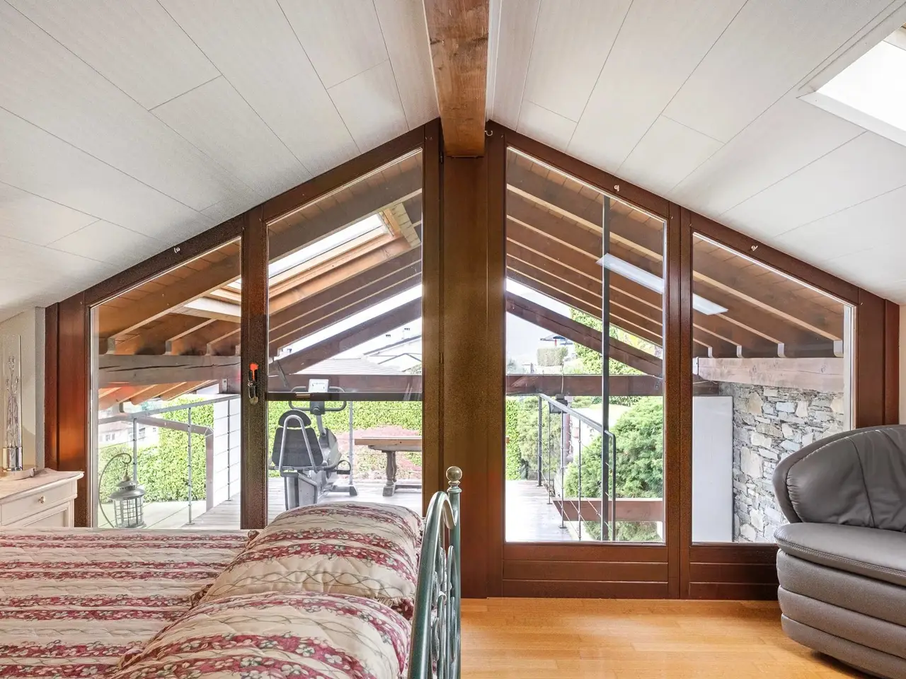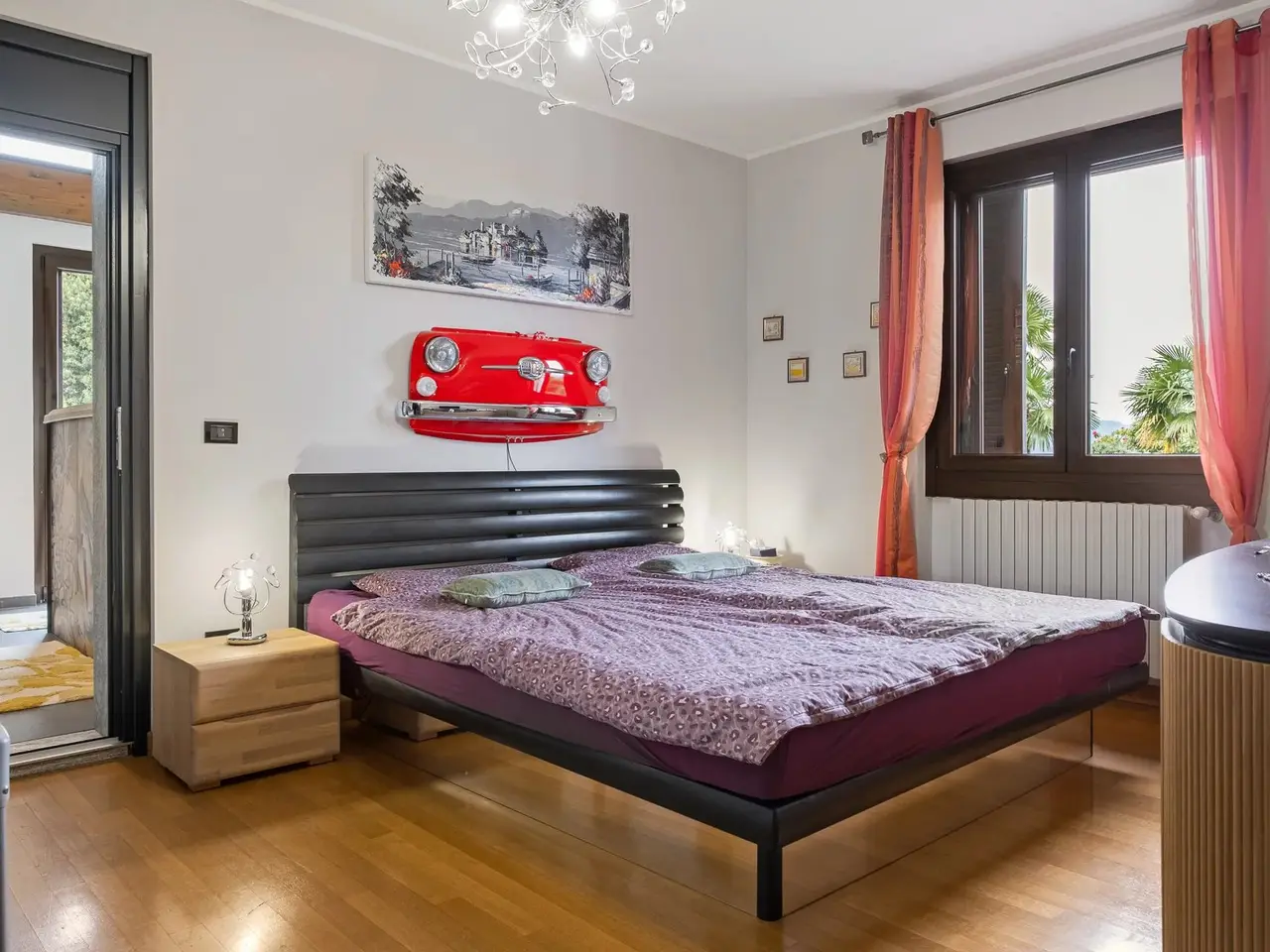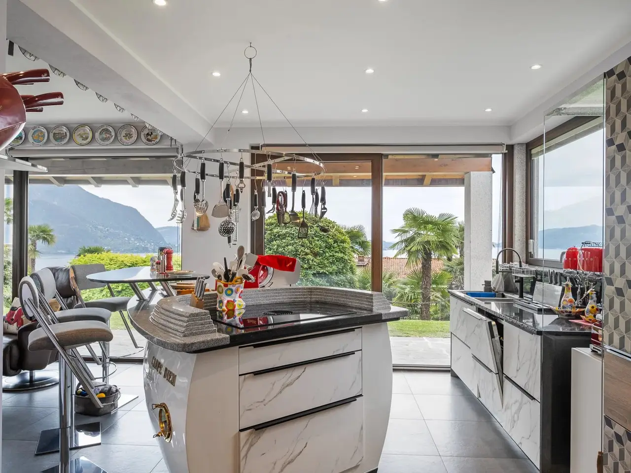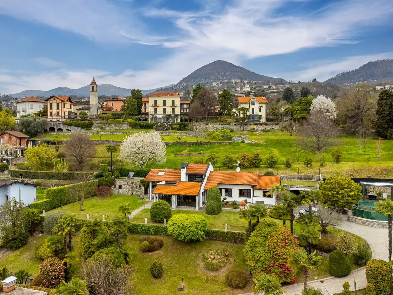 In a privileged hillside location, just a few minutes' walk from the historic center of Intra, this stunning villa enjoys breathtaking views of Lake Maggiore and the Borromean Gulf. Bathed in quiet and light, it is surrounded by an enchanting, perfectly manicured park with swimming pool, spring-fed pond and lush vegetation. The property stands out for its balance of elegance, privacy and comfort. An ancient 100-year-old olive tree, a majestic camphor tree, palm trees, fruit trees and rare flower essences frame a pond fed by spring water, populated by Koi carp specimens. Completing the garden are a bocce court, a wooded area, flower meadows, and an automated irrigation system fed by a cistern that collects spring water. The house, originally built in the 1960s, was completely renovated and expanded in 2020, with great attention to detail and quality materials. The main entrance, through a porphyry driveway, leads to a large parking area with a pergola and a convenient garage. The interior offers bright and refined rooms: a large open space on the ground floor accommodates living room with double-sided fireplace, integrated kitchen, dining area, two bedrooms, two bathrooms, wine cellar and covered terraces. On the second floor there is a study with a panoramic terrace, a bedroom with a covered terrace, a second bedroom and a bathroom equipped with a mini-pool with whirlpool and shower. Outside, the heated infinity pool with solarium and pergola represents a corner of absolute relaxation. The villa is equipped with many state-of-the-art amenities, including an air-conditioning system to maintain an ideal environment throughout the year and a cozy fireplace for relaxing on cooler evenings. The property is entirely surrounded by an automatic irrigation system, which keeps the garden in perfect condition, and carefully designed outdoor lighting to enhance every architectural detail.