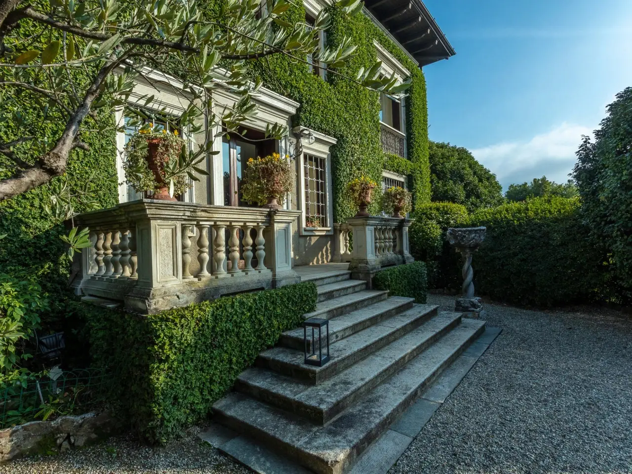 Prestigious historic villa for sale, built around 1900, surrounded by a beautiful centuries-old park planted with camellias, azaleas and tall trees. The whole property is characterized by great elegance and privacy. The exclusive property called Villa "Il Leoncino" is located on the hill of Verbania, in a quiet location, away from the chaos of the city. It enjoys a wonderful view of Lake Maggiore, with a southern exposure to the sun. The park of 8,500 square meters has maintained its historic layout with the avenues that run through it leading to the swimming pool. During these walks you can appreciate the blooming of the roses. The pool area, built in 2007, has a summer kitchen with a dining table overlooking the lake and a shower and toilet area. At the entrance of the property, in addition to the luxury villa, there is a concierge and a guest house, very particular developed on two floors with two garages on the ground floor. The external architecture of the prestigious villa for sale is preserved as it was originally, as are the interiors, which are always treated in maintenance. The interior decorations are designed to harmonize with the style of the prestigious period villa with the pastel colors typical of the prestigious residences of Lake Maggiore. The Villa consists of four floors. From the entrance you enter the large halls from which you connect to the large terrace. Also on the same floor is the formal dining room for guests. The most evident peculiarity is the great brightness of the rooms and the view of Lake Maggiore. On the lower floor, as is customary in period manor villas, there is a kitchen with a dumbwaiter, a dining room for the family, a pantry, a billiard room, a study and a SPA with a sauna. From this floor you exit onto the centuries-old park preceded by a portico used for the summer dining area. The first floor is entirely dedicated to the sleeping area consisting of two large double bedrooms with original parquet floors, each with a walk-in closet and a private bathroom. Also on the same floor there are two other bedrooms with bathroom. On the second floor is the guest area. This floor features a large terrace with a beautiful view of Lake Maggiore. Here we find three bedrooms with a bathroom, and a laundry room. This elegant property is located in a privileged location, quiet but not isolated, quiet and above all very panoramic and sunny.