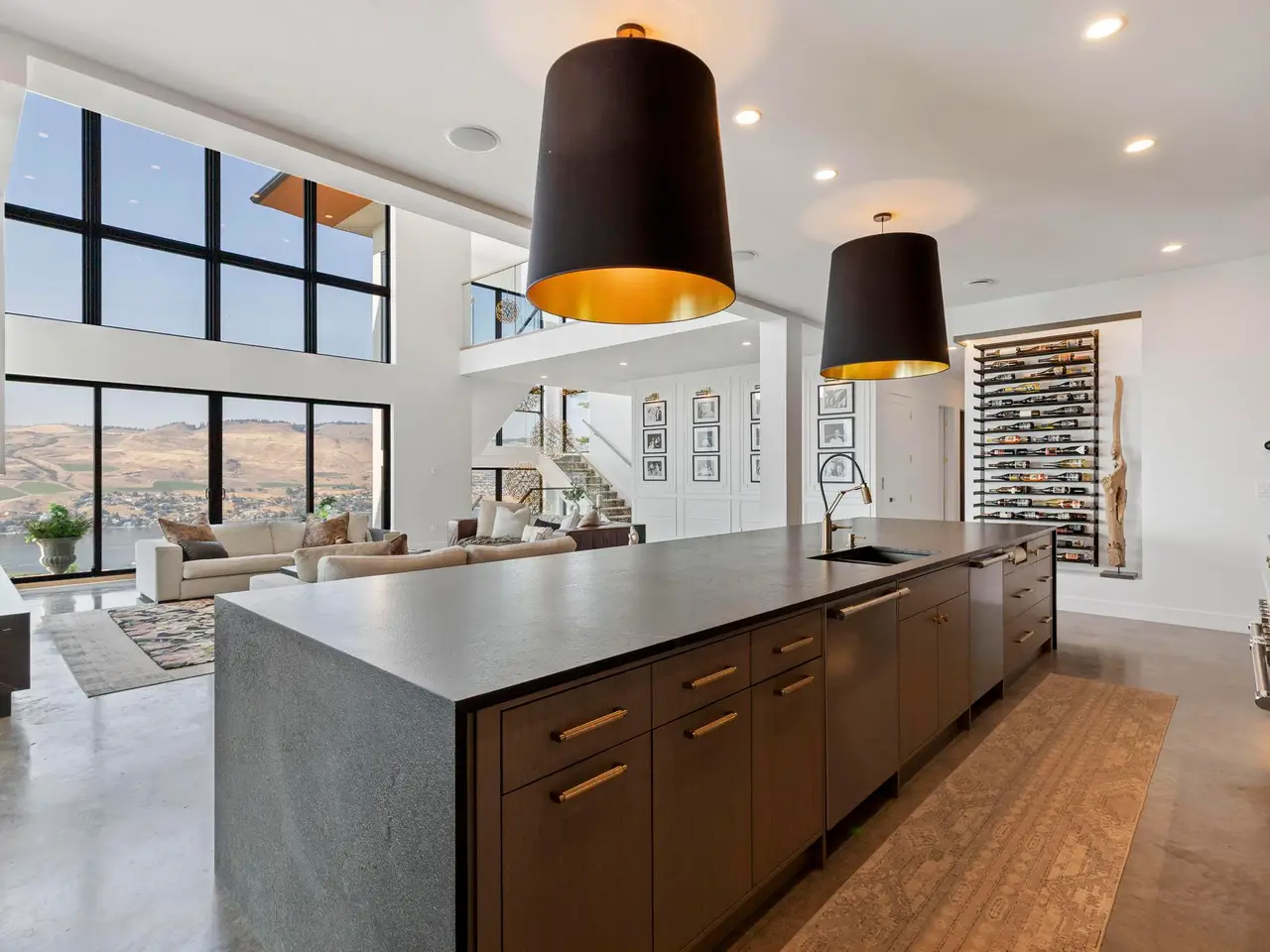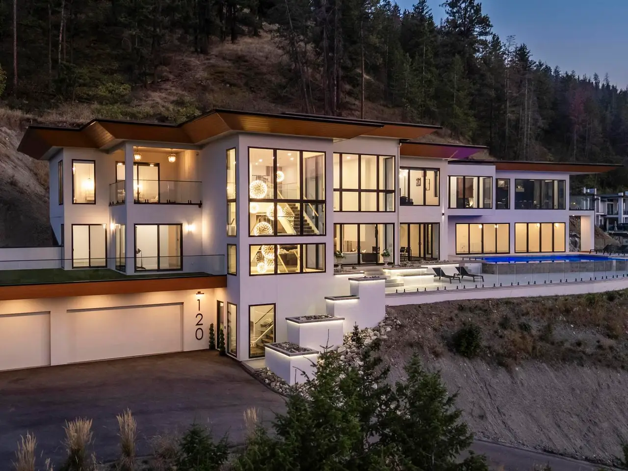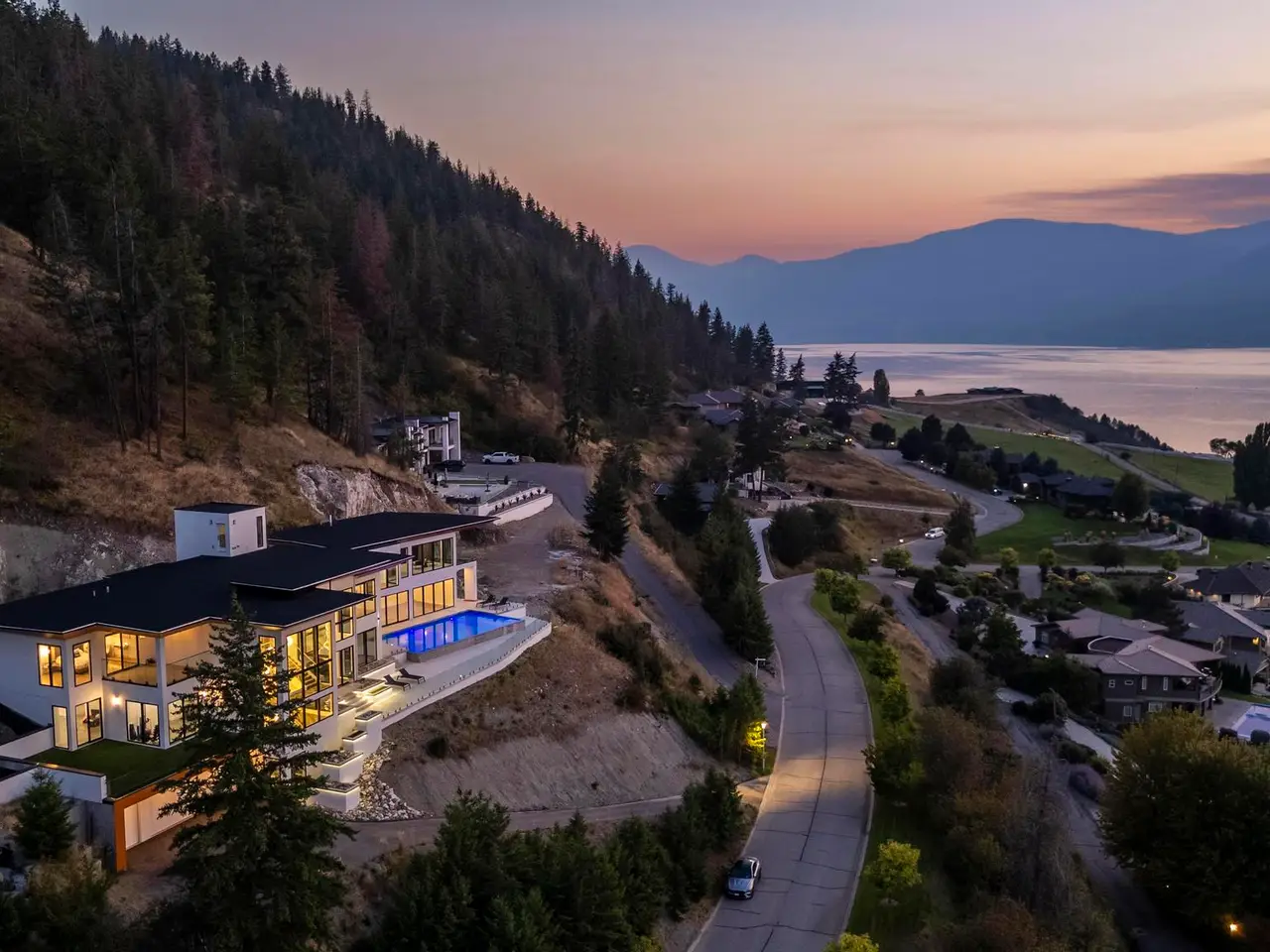 Listed by Unison Jane Hoffman Realty | Experience unparalleled & expansive lake views from a residence meticulously designed to celebrate the natural splendour of the scenery Okanagan situated in the exclusive Beverly Hills estates gated community. Floor-to-ceiling glass throughout creates an intimate connection with outdoors, framing breathtaking views of the lake, mountains, and nearby equestrian fields. Light pours into every space, ensuring you’re bathed in natural beauty every moment. This remarkable 5 bedroom, 9-bathroom home has multiple flex rooms, secret rooms & masterfully blends luxury with functionality and adaptability offering seamless indoor-outdoor living. The main level is anchored by a show stopping kitchen equipped with coffee bar & scullery with exquisite finishing details that flows into expansive living + dining areas. A striking open-linear fireplace creates a warm and inviting atmosphere. The primary suite, a true retreat occupies its own private wing. Encased in glass, it offers uninterrupted vistas and features a spa-like ensuite, spacious walk-in closet equipped with safe room & laundry. Designed for entertaining, the home’s pool area is positioned to preserve the panoramic views, while generous patios extend the living space outdoors. A poolside room offers a versatile space, perfect as a private suite or a dedicated entertaining hub. With a triple garage for vehicles and hobbies and an elevator that connects all three levels, this home is built for convenience and aging in place.