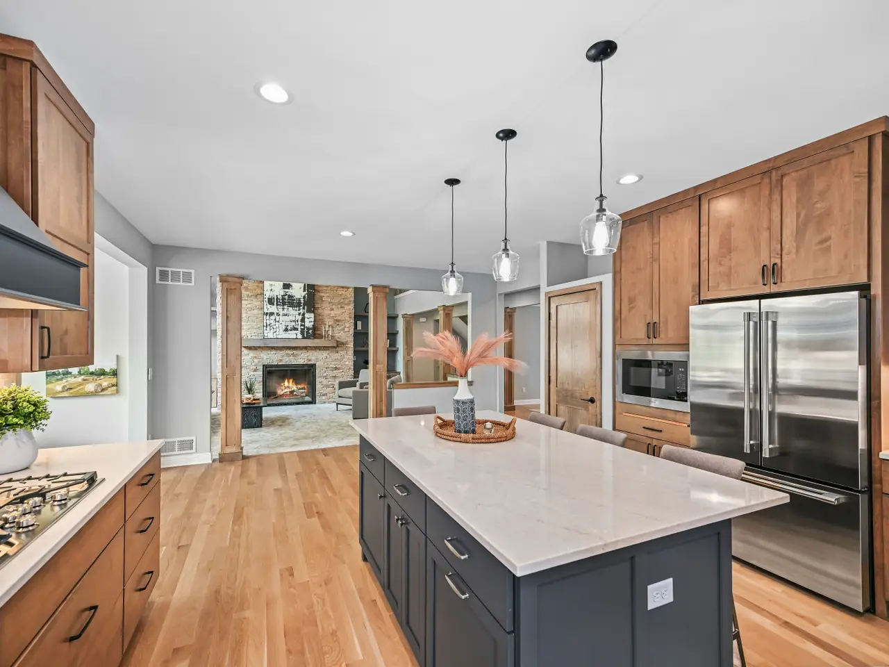 Step into this stunningly reimagined home, where the classic charm of an established Morningstar neighborhood meets the elegance of today's cutting-edge design. Completely rebuilt, every detail reflects quality craftsmanship, modern functionality, and sophisticated style. Whether you're hosting friends or seeking a private family retreat, this home offers the perfect balance of luxury and comfort for any lifestyle. At the heart of this home is the chef's kitchen, a space designed to inspire. This kitchen is as functional as it is beautiful with premium appliances. Whether cooking for your family or entertaining guests, this kitchen is a dream come true. Each of the generously-sized bedrooms has been carefully designed to provide both comfort and style, with walk-in closets ensuring ample storage. The two ensuite bedrooms offer private sanctuaries, perfect for creating personal retreats for family/guests. Here, you'll find the ideal blend of luxury, privacy, and convenience. The dedicated home office is a quiet, productive space that's as functional as it is serene. Whether for work, study, or creative endeavors, it offers the perfect setting to focus and achieve your goals. Designed with both family living and entertaining in mind, this home offers incredible indoor and outdoor spaces. Enjoy the four-season room, bathed in natural light and warmth, or retreat to the three-season room - perfect for laid-back mornings or evening gatherings. Whether it's a cozy winter day or a breezy summer evening, these spaces offer comfort and charm all year round. For gatherings and fun-filled evenings, the lower level is truly exceptional. A spacious living area complete with a wet bar and full bathroom creates the perfect backdrop for entertaining. With walk-out access to a second patio, this area seamlessly connects the indoors with the outdoors, allowing guests to flow between spaces effortlessly - ideal for everything from game nights to intimate celebrations. Nestled on a beautifully landscaped, tree-lined lot, this home offers the ultimate in privacy and tranquility. Step outside to your own personal oasis, where you can relax on the paver patio, enjoy the warmth of a firepit, or listen to the soothing sounds of a water feature - a serene escape right in your own backyard. The home's all-brick exterior exudes classic sophistication and unmatched durability, ensuring the home stands the test of time. Inside, the modern color palette and luxurious finishes create a warm, inviting atmosphere that can be easily personalized to suit your tastes. This home is truly a canvas for your vision, providing the perfect backdrop for your life's most cherished moments. Low Vernon Taxes and Mukwonago Schools!