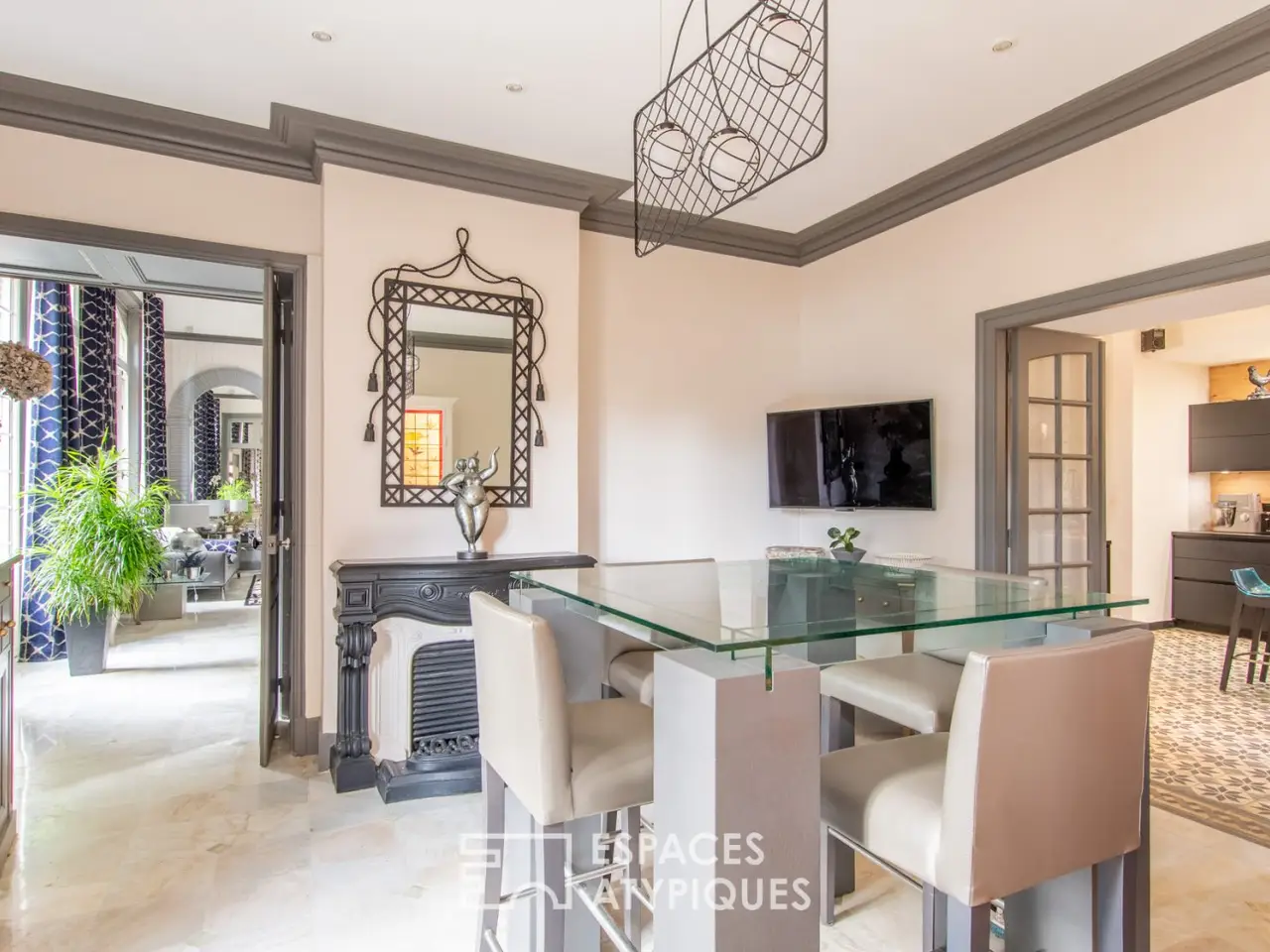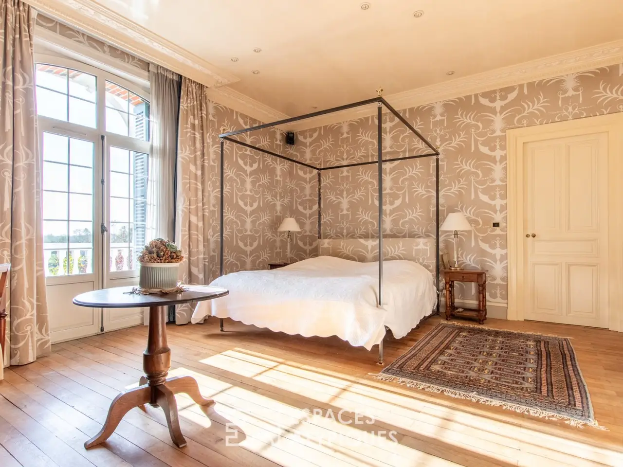 Located in the charming town of Vernou sur Brenne, this sumptuous 19th century property extends over 600m2 in the heart of a majestic 5-hectare park. In an exceptional setting with its vineyard, its lake, picturesque meadows with access to the river, this residence has been meticulously maintained and renovated over the last thirty years. The main residence, formerly inhabited by Alfred Capus, eminent journalist and editor-in-chief of Le Figaro during the four years of the Great War, is a centerpiece of 450 m2 spread over 3 levels. In addition to the mansion, the estate also includes a caretaker's house and outbuildings totaling an additional 150m2. The ground floor of the main residence features an elegant reception room adorned with a majestic fireplace, ceiling moldings and marble floors. An office and a fitted kitchen, accompanied by a vestibule giving access to the cellar, complete this level. The exposed stone, tiled floors and stained glass windows merge the original character with modern amenities. On the first floor, two refined bedrooms, one with a bathroom, offer an elegant and comfortable sleeping area. The second floor offers three bedrooms, including the master suite with bathroom and spacious dressing room. This top floor includes an additional bathroom, a large billiard room with fireplace and herringbone parquet flooring, a powder room, access to the attic, as well as the authentic Alfred Capus library, steeped in history and Character. The property includes two residences, including a furnished rental outbuilding, as well as various troglodyte areas, carports and a covered area for a large heated swimming pool. This exceptional development elegantly combines historic charm and modern amenities, offering a lush lifestyle within a unique environment. This rare place is located a stone's throw from shops and schools, 8 minutes from the Loire by bike. Less than 30 minutes from Tours train station, the airport and 7 km from the A10. REF. EAT4004 Additional information * 20 rooms * 8 bedrooms * 3 bathrooms * 4 shower rooms * Outdoor space : 54108 SQM * Property tax : 5 729 €