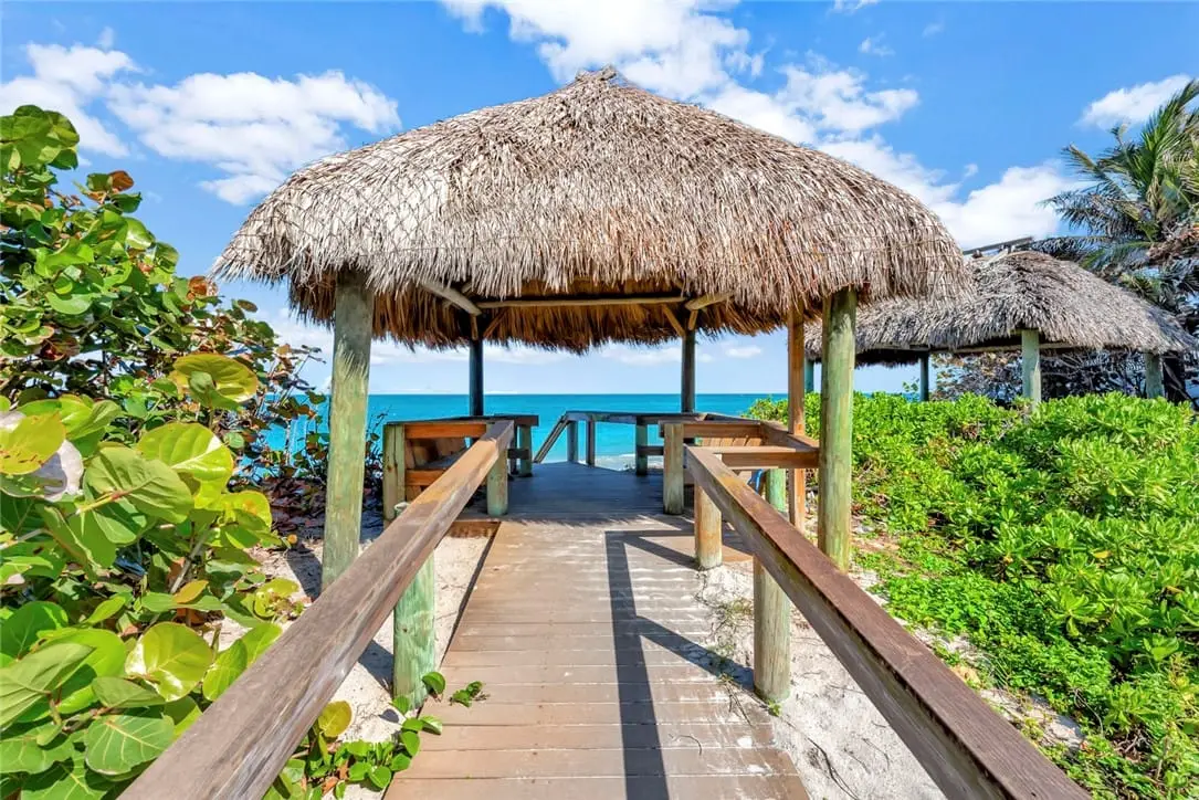 Stunning beachside retreat completely remodeled in 2024. This exquisite home offers modern luxury & coastal charm. Selling fully furnished the home boasts a new tile roof, impact glass & an all-new island kitchen w/Quartzite counters, custom cabinetry & top-tier appliances. Enjoy Spacious living & family rooms, fireplace, stone & engineered wood floors. 3 new full baths plus a powder rm. Outdoor living is redefined with a beautifully renovated saltwater pool, a new covered lanai, lush landscaping & irrigation. Located in a gated community w/private beach access. Sizes approx./subj. to error.