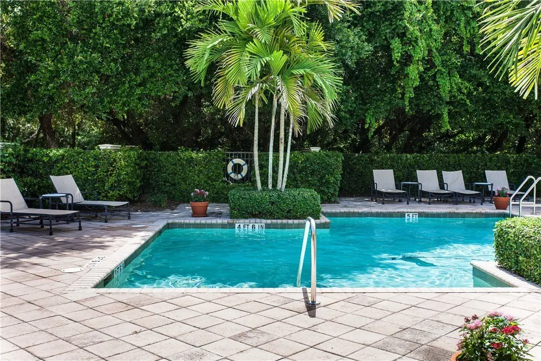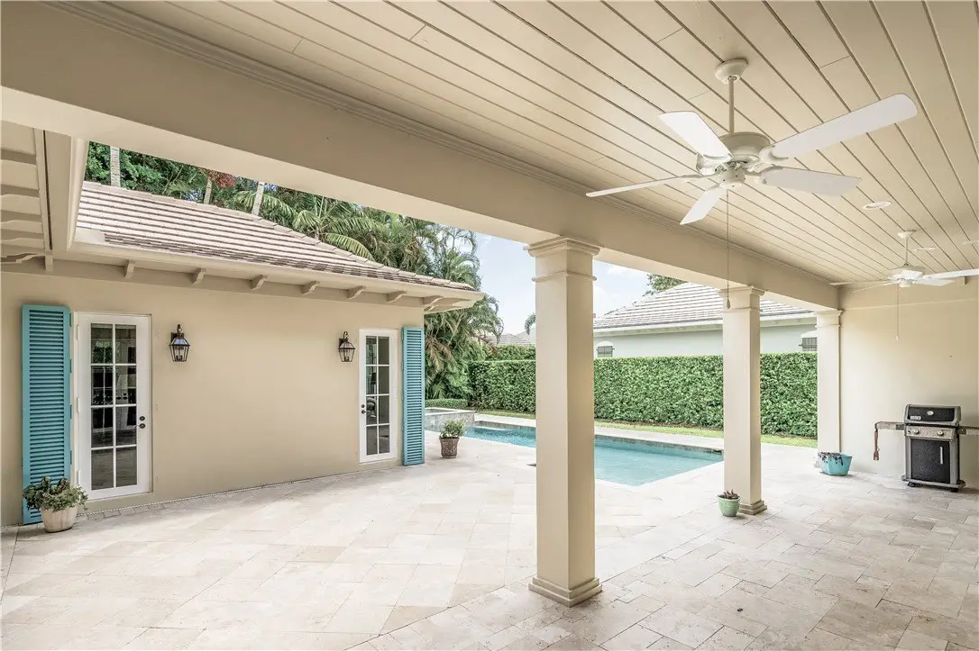 Meticulously maintained Hamilton plan traditional 3 bedroom+study on generous .38 acre super private cul-de-sac lot. Delightful SE exposure outdoor living space. Lush yard, lg heated pool/spa, covered lanais. First floor primary suite. Downstairs study with pool access bath. Updated kitchen opens to family rm. Dining rm overlooks courtyard. Living rm w/ wet bar and fireplace. Upstairs 2 en suite guest rooms open to gracious balcony. Rich detailing. Impact glass + shutters. Big laundry rm, 2 car garage. Fabulous Palm Island amenities- beach club, pier, pools, fitness. Dimensions approximate.