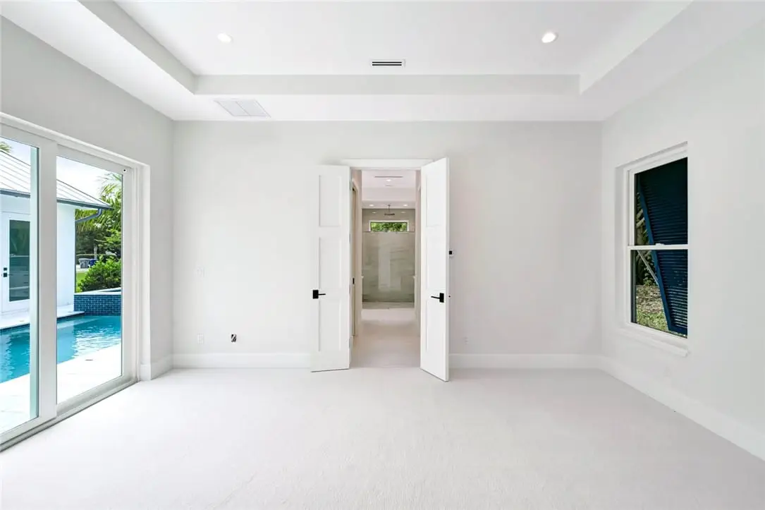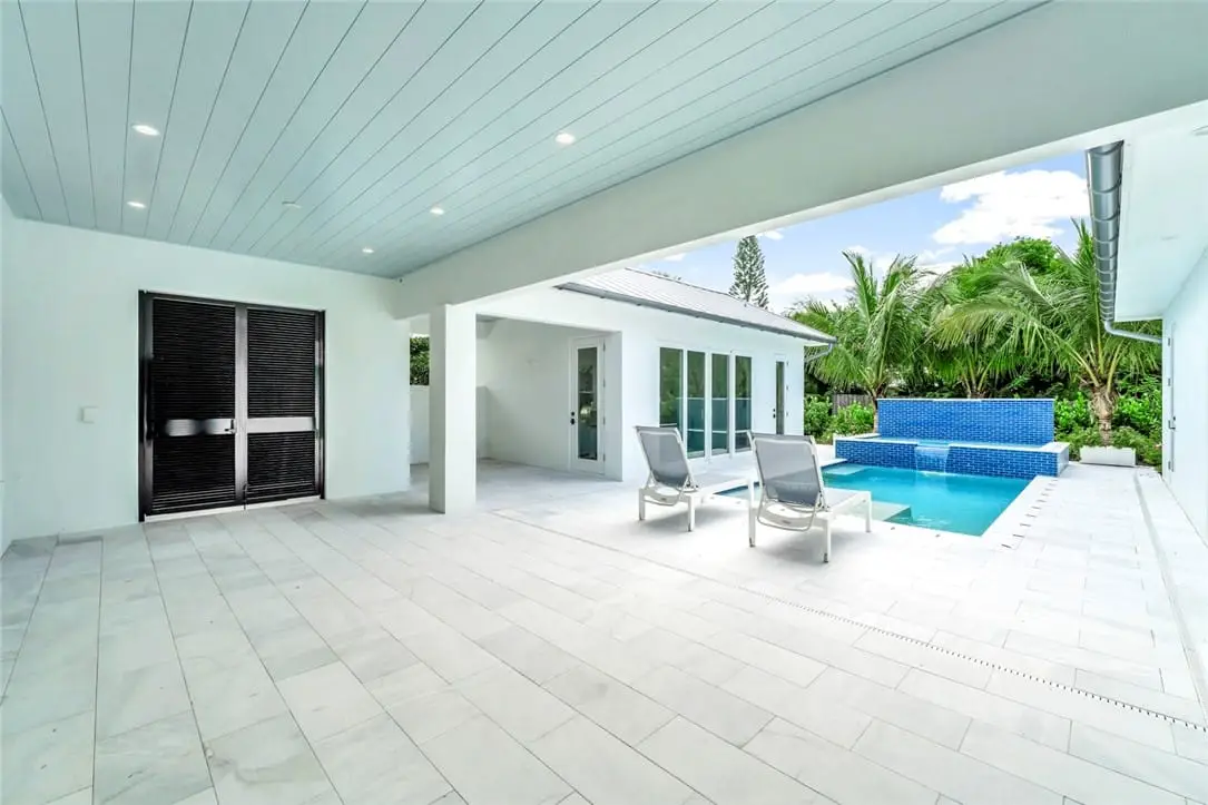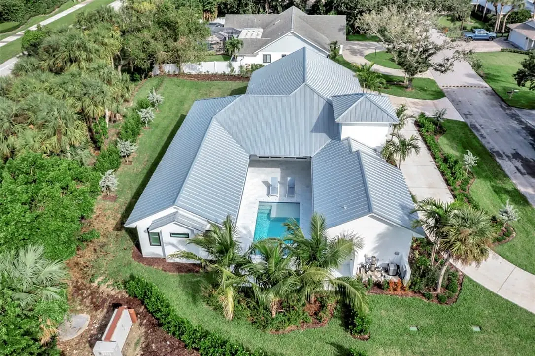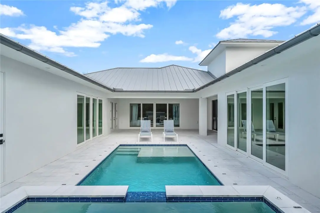 East of A1A & steps from Veros best beach. 3BR/3.5BA. 2025 CBK constr, metal roof & impact windows situated on .4 acre lot in gated south beach community. Walls of glass open home to outdoor oasis. Covered lanai & summer kitchen extend living area outside. Sun shines year-round on south exp heated saltwater pool w/sunshelf & spa. Light-filled, open plan designed for effortless living. Premium appointments - 10+ ceilings, tile flrs, quartz counters, large island kitchen & walk-in pantry. Private casita w/BR&BA. Bonus rm over 3CarGar possible 4thBR. Low HOA fee. Size are approx/subj to error.