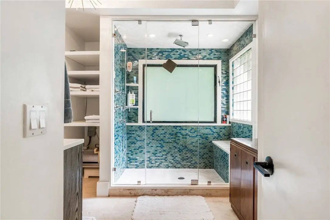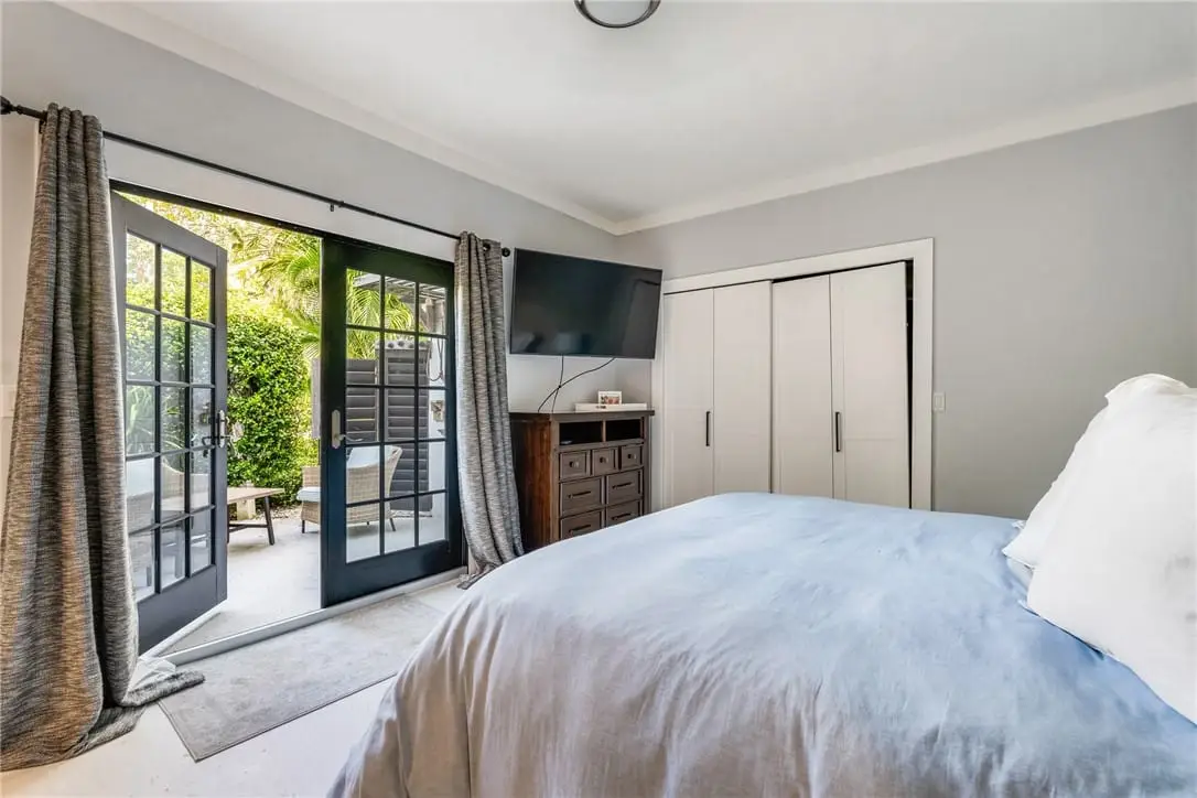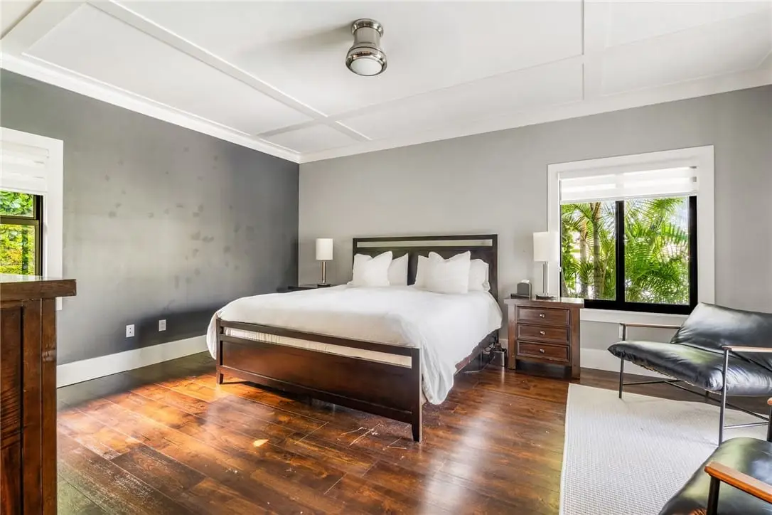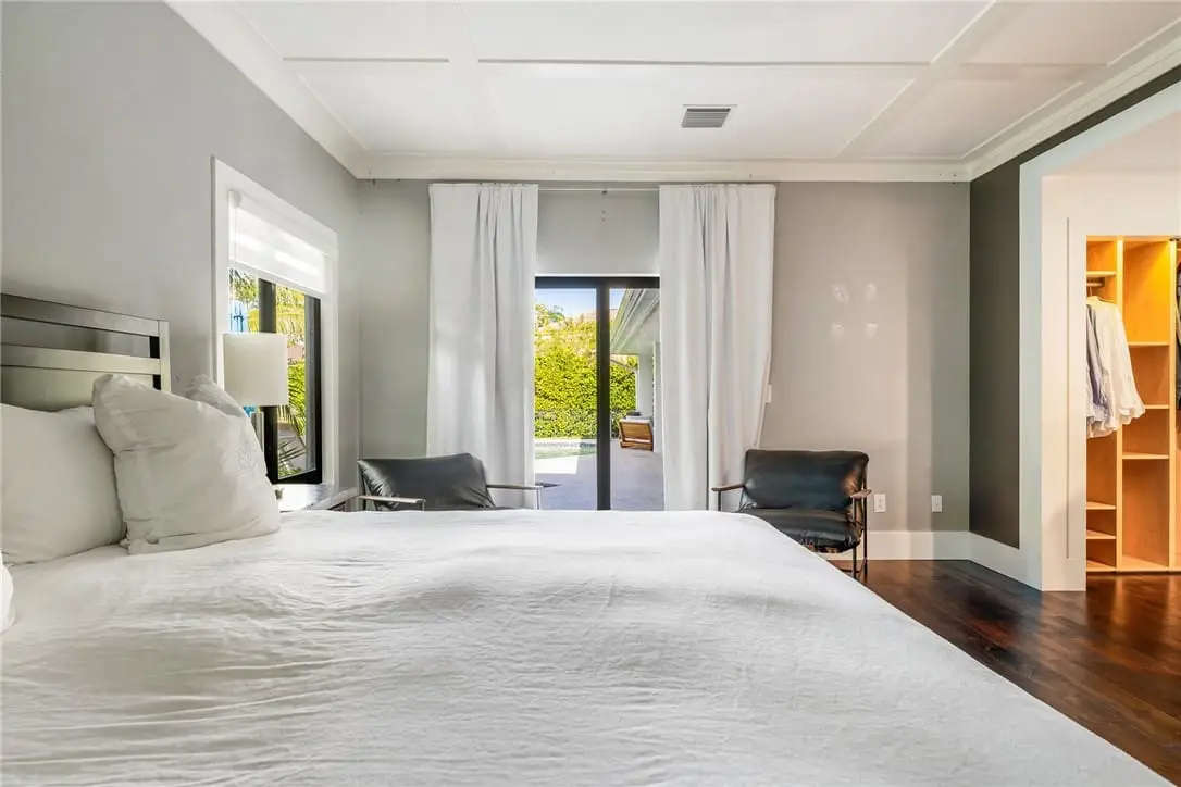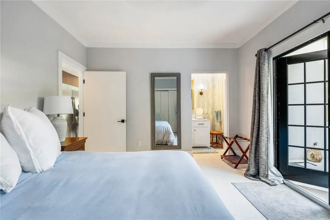 Spacious primary suite with lake views