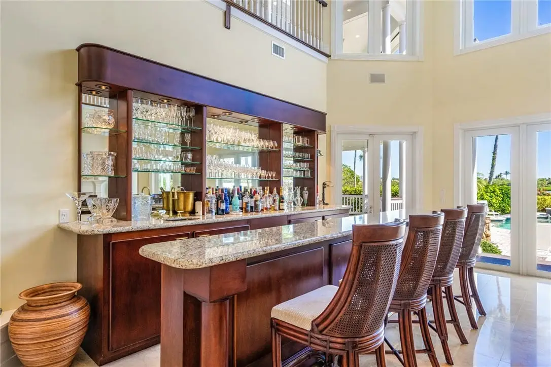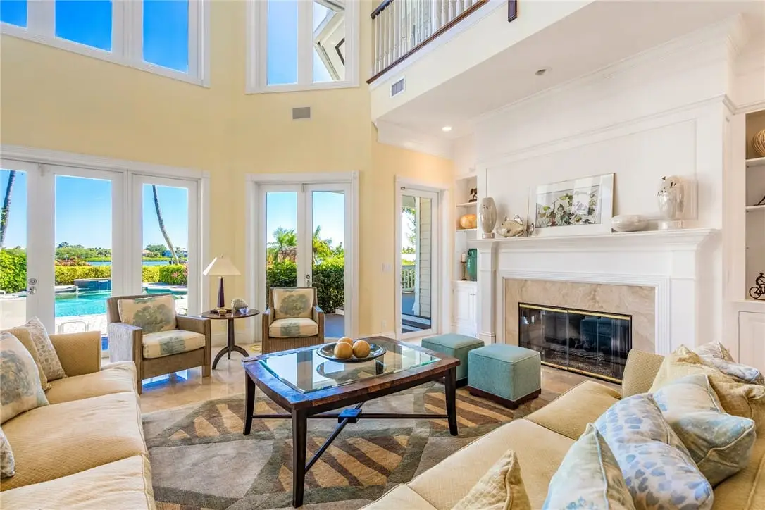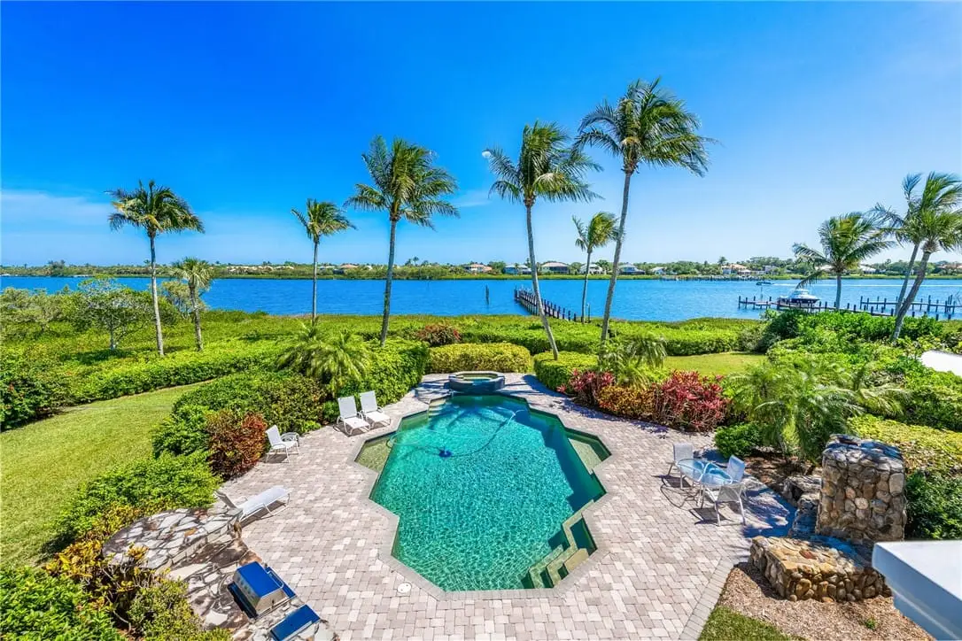 Stunning Key West-style riverfront home w/ 5BR, 6.5BA, & over 5,500 sqft of luxurious living space. Features 2 primary suites, formal living, dining, & library, plus an exercise room & 2 utility rooms. Set on an extremely private 145x250 lot w/ water surrounding. Vast views from a 250' dock (water, electric, & 2 lifts). Pool, summer kitchen. 3-car garage & incredible outdoor space perfect for waterfront living. Experience unparalleled luxury in this one-of-a-kind estate. Sizes are approx/subj to error.
