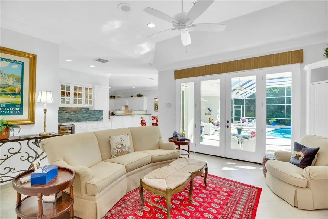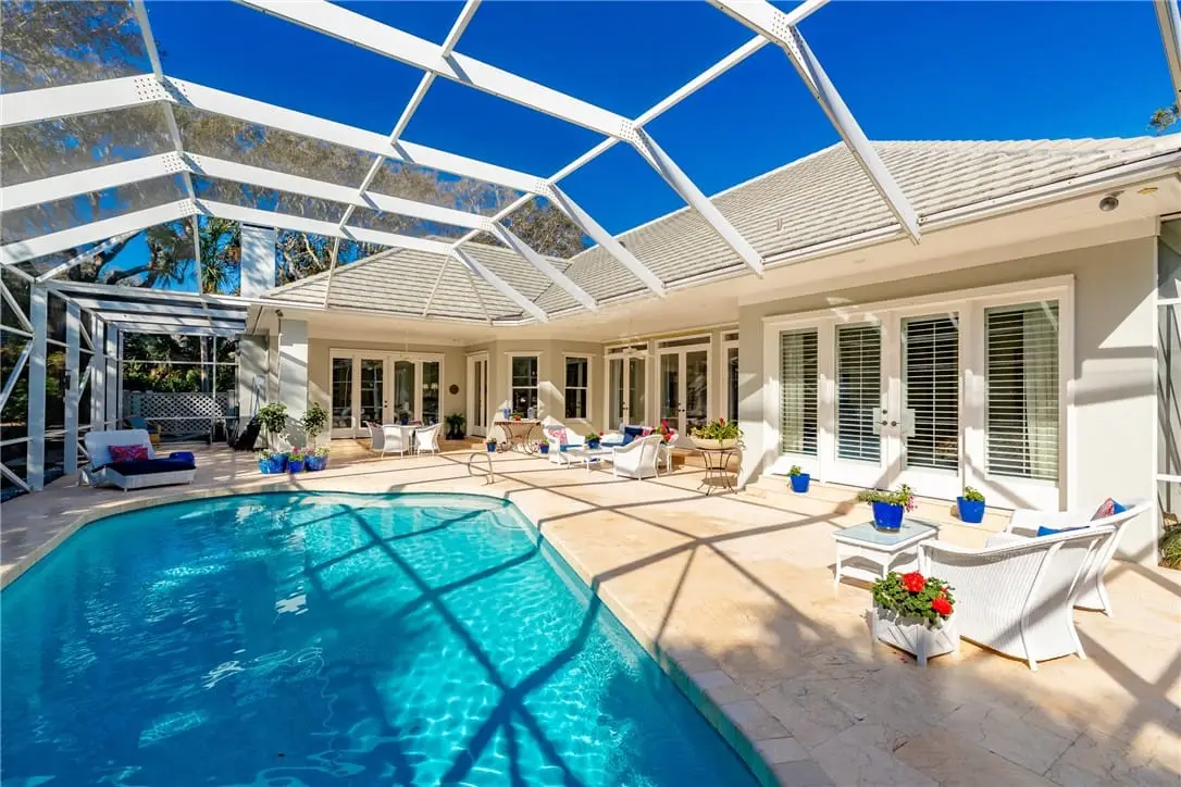 Who wouldn't want to live in a perfectly maintained, beautifully landscaped, pool home WITH beach access AND the Indian River! This MARBRISA gem offers 3 beds/3.5 baths, SEPARATE OFFICE w/2 built-in desks & cabinetry. A whole house generator, 3 zoned A/C (2022), extensive molding, 8' doors, fireplace, built-in bar w/wine cooler AND a separate A/C WINE CLOSET make this the PERFECT Florida home. 2021 roof. Gated community amenities: kayaking, marina w/guest docks, tennis/pickleball, 2 clubhouses, fitness center & sauna. Year round social activies. Possible turn-key w/some exclusions.Rmszapprox