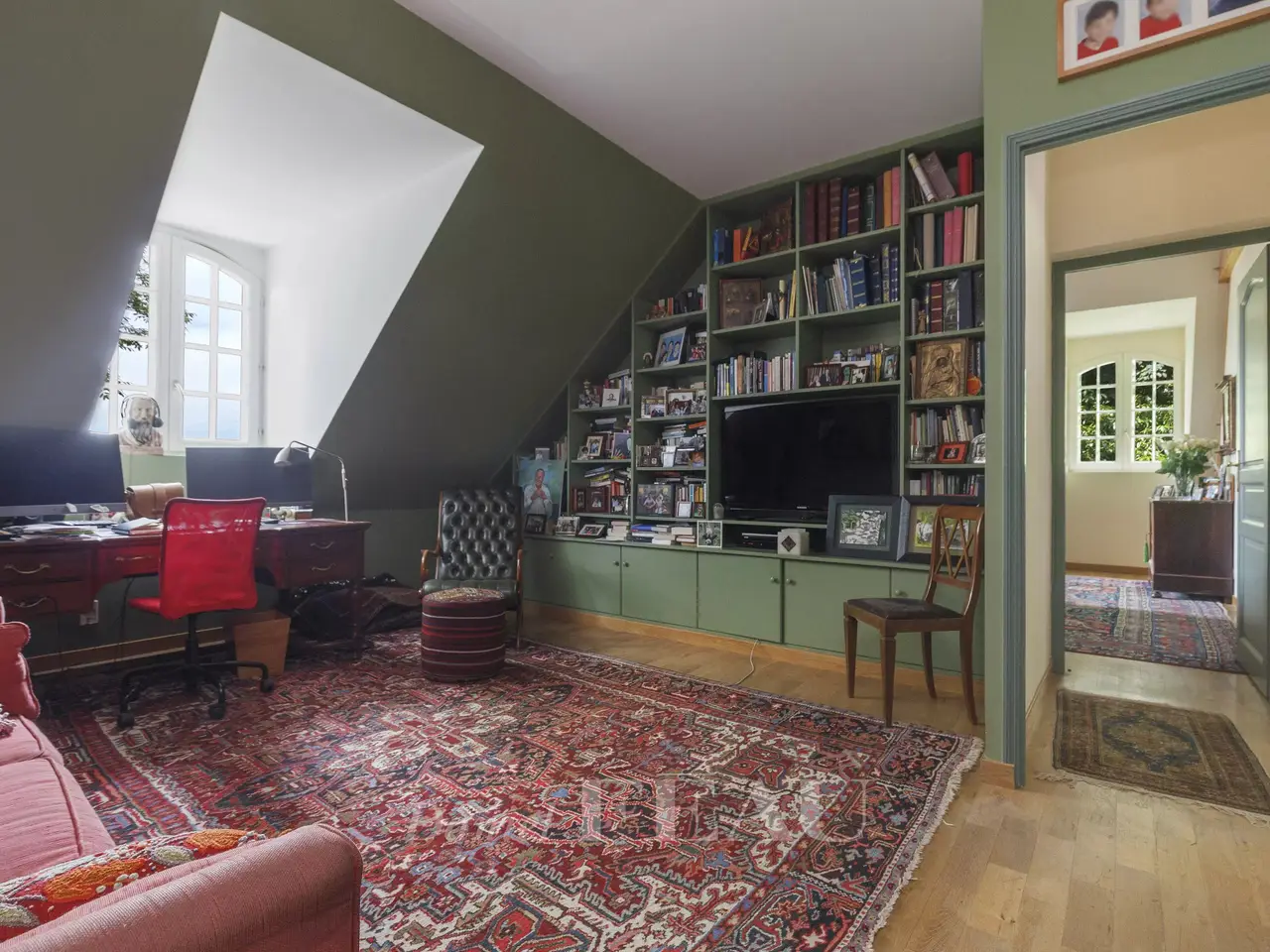 This magnificent recent property accessed by means of a little alley is located in the sought-after Glatigny neighbourhood. Set in 7000 sqm of partially wooded grounds, it includes a majestic entrance hall, a living/reception room benefiting from French windows opening onto the garden, as well as a second living room with a fireplace and a superb oak library (110 sqm in total), a fully fitted and equipped kitchen, and an elegant dining room. The ground floor also includes a suite with a bathroom opening onto an east-facing terrace. A superb staircase accesses a spacious master suite with a study, dressing rooms and a bathroom, and three further suites each with an adjacent shower room. On a total basement with a sitting room, a study, a fitness room with an adjacent shower room, a utility room and a garage for several cars. In a convenient location benefiting from rapid access to the motorways, near the schools and the Jardy domaine (golf course, tennis courts, equestrian facilities), and a 5-minute drive from the centre of Versailles.