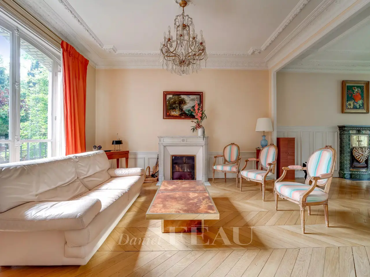 This well-maintained early 20th century brick and millstone-built property is set in a 545 sqm plot. Offering 320 sqm of floor space and about 250 sqm of living space, it includes an entry with fitted cupboards featuring cement mosaic floor tiles, a dual-aspect double living/reception room featuring a Prussian stove, oak parquet flooring and high ceilings, a drawing room or study, a fitted and equipped kitchen with dining facilities accessing a stone-decked terrace, and a guest wc. Period features also include sculpted iron radiators. The original staircase accesses a landing leading to master bedroom with a bathroom and wc, a bedroom with a balcony, a shower room, a single bedroom and a wc. The top floor comprises three bedrooms, a bathroom, a dressing room and a wc. Fitted storage space. Period features also include panelling, Benefiting from exterior access, the convertible entresol includes a storage room, a utility room, a boiler room and a wine cellar. The garden benefits from automatic sprinkling and features a gloriette under a centennial cedar, and a rockery. Parking space. 7 minutes by foot from the station and the schools, and 12 minutes from Place du Marché. Easy A86 and A13 motorway access.