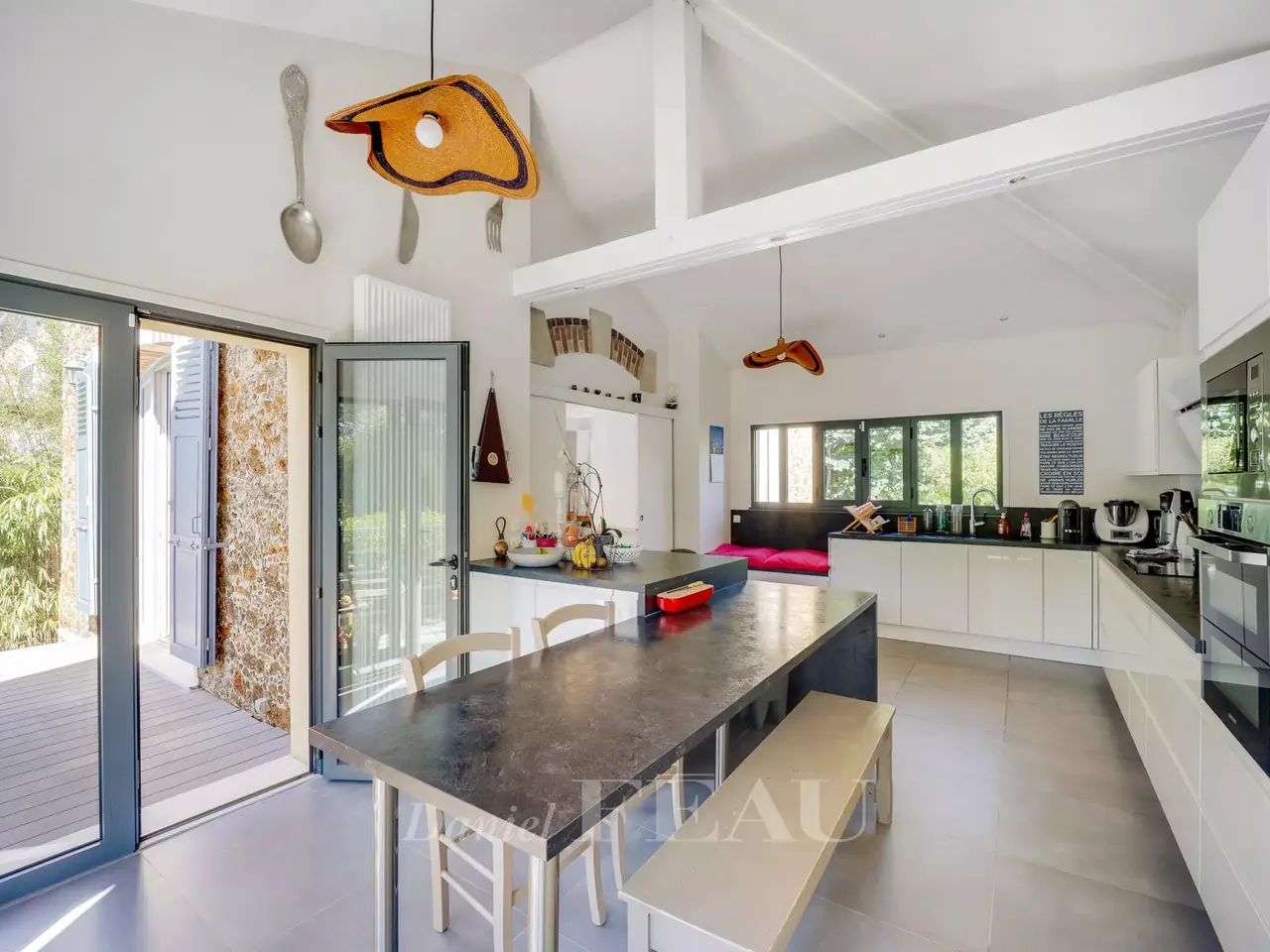 Exclusive - Just 200 meters from the Saint Antoine du Chesnay church, this early 20th-century millstone and brick house has been tastefully renovated. It combines period features with a contemporary style, giving it undeniable character and charm. It offers a total surface area of 263 m², including 190 m² of living space, on a 440 m² plot. The house comprises: On the ground floor: an entrance hall with walk-in closets, a spacious reception room with a dining room and living room opening directly onto the outdoor terrace, a large fitted and equipped kitchen overlooking the terrace and garden, and a guest toilet. On the first floor: a master bedroom with built-in wardrobes, a walk-in closet, and a private bathroom, a second bedroom with its own shower room, a third bedroom, a shower room, and a separate toilet. On the 2nd floor, there are three bedrooms (one with its own shower room), a second shower room, and a separate toilet. In the basement: a games room, a laundry/boiler room (boiler replaced in 2019), a cellar, and a garage (motorized gate and lock) allowing parking for a car and the family's bicycles (a second car can be parked in front of the garage). Outside: a courtyard in front of the house, a wooded garden enclosed by walls and protected from view, as well as a beautiful raised west-facing terrace. The house, very bright and perfectly quiet, is in excellent condition following a complete renovation carried out since 2014. All the frames have been replaced, the walls insulated, and the roof redone in 2024 (energy rating "C"). Located in a sought-after neighborhood, it is less than 200 meters from all shops and a 15-minute walk from Versailles Rive-Droite train station (SNCF Line L to La Défense/St Lazare). The bus is a 2-minute walk away, and access to the A86/A13/A14 is easy.