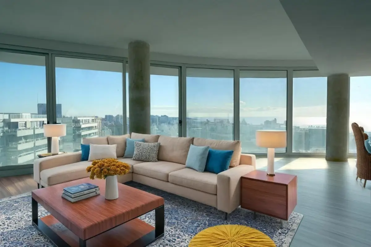 Located at the intersection of Libertador Avenue and Arenales Street, the distinctive residential building stands in Vicente López. It has a ground floor of commercial premises that adds to the other offers in the area. The building is made up of 3 basements, ground floor, 2 between floors and 18 more floors. The units are distributed in the two elliptical towers from 24 meters high, ensuring that all units have views from above, towards the Río de la Plata and/or the City of Buenos Aires. The 130 units have 161 parking spaces. Units of 2, 3, 4 and 5 rooms with outbuildings. 14 penthouses of 3 levels. 8th floor of amenities: SUM, meeting rooms, indoor pool, gym, sauna and grills. Ask about other units! The property offered is not accessible for people with reduced mobility. Details: Total area: 333 m2 Type: Apartment Bedrooms: 3 Age: Brand new Bathrooms: 2 Toilettes: 2 Covered area: 271 m2 Uncovered area: 49 m2 Semi-covered area: 12 m2 Rooms: 4