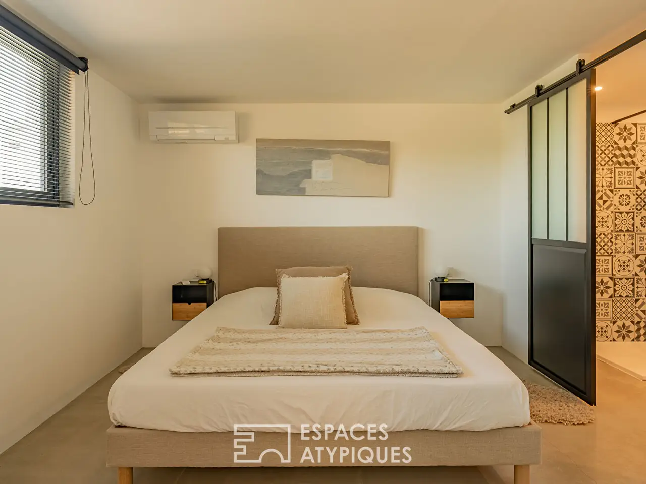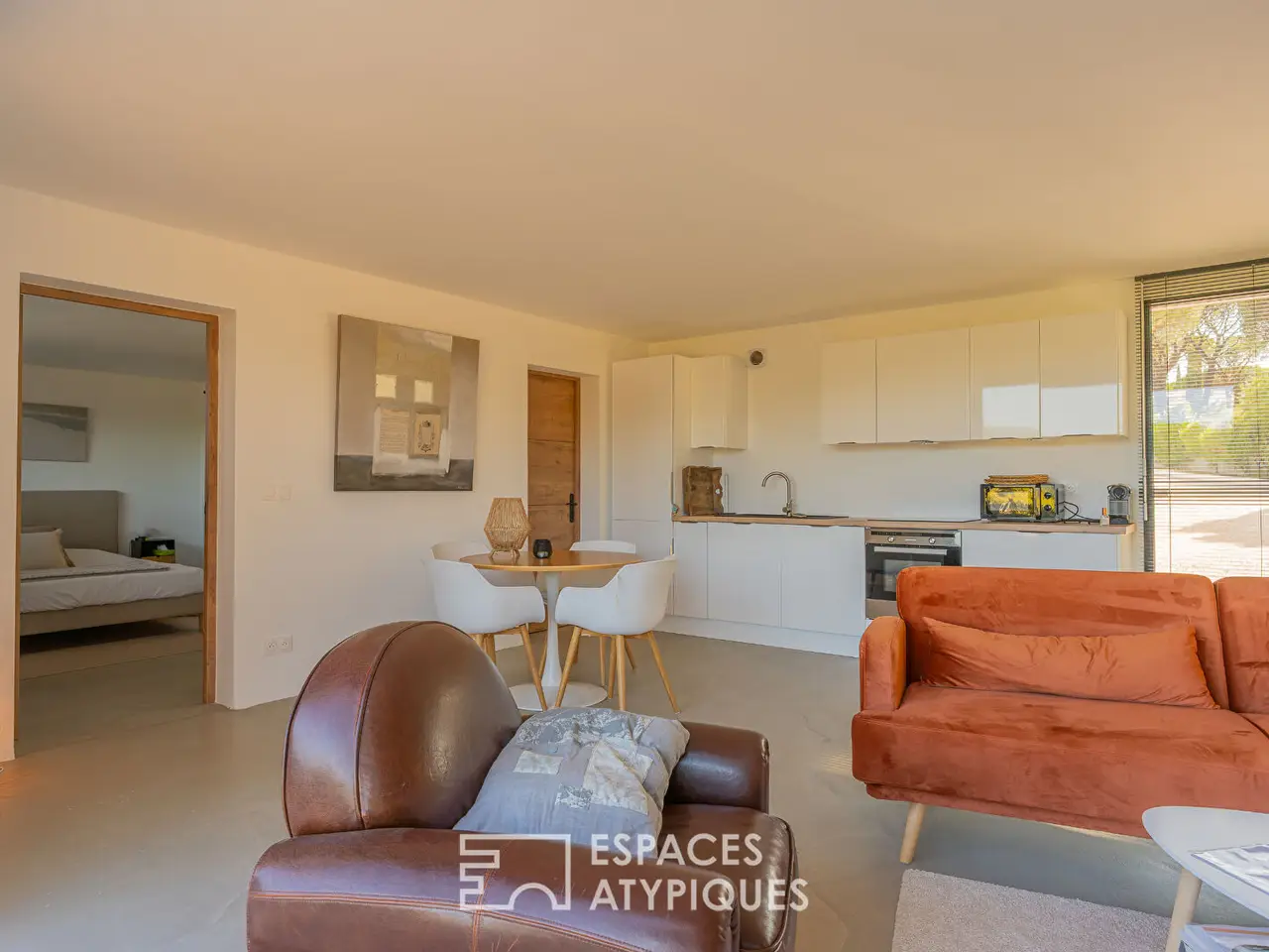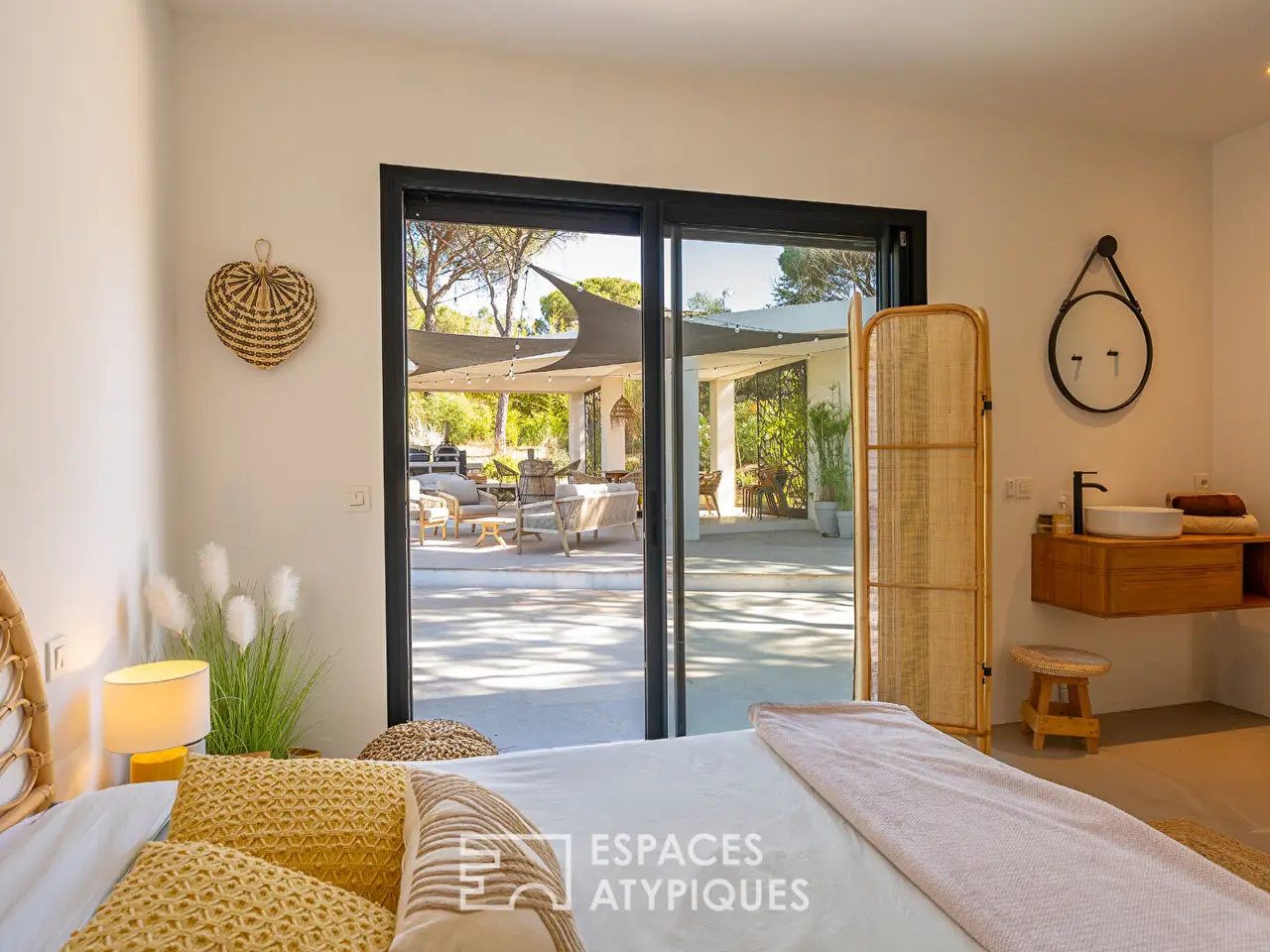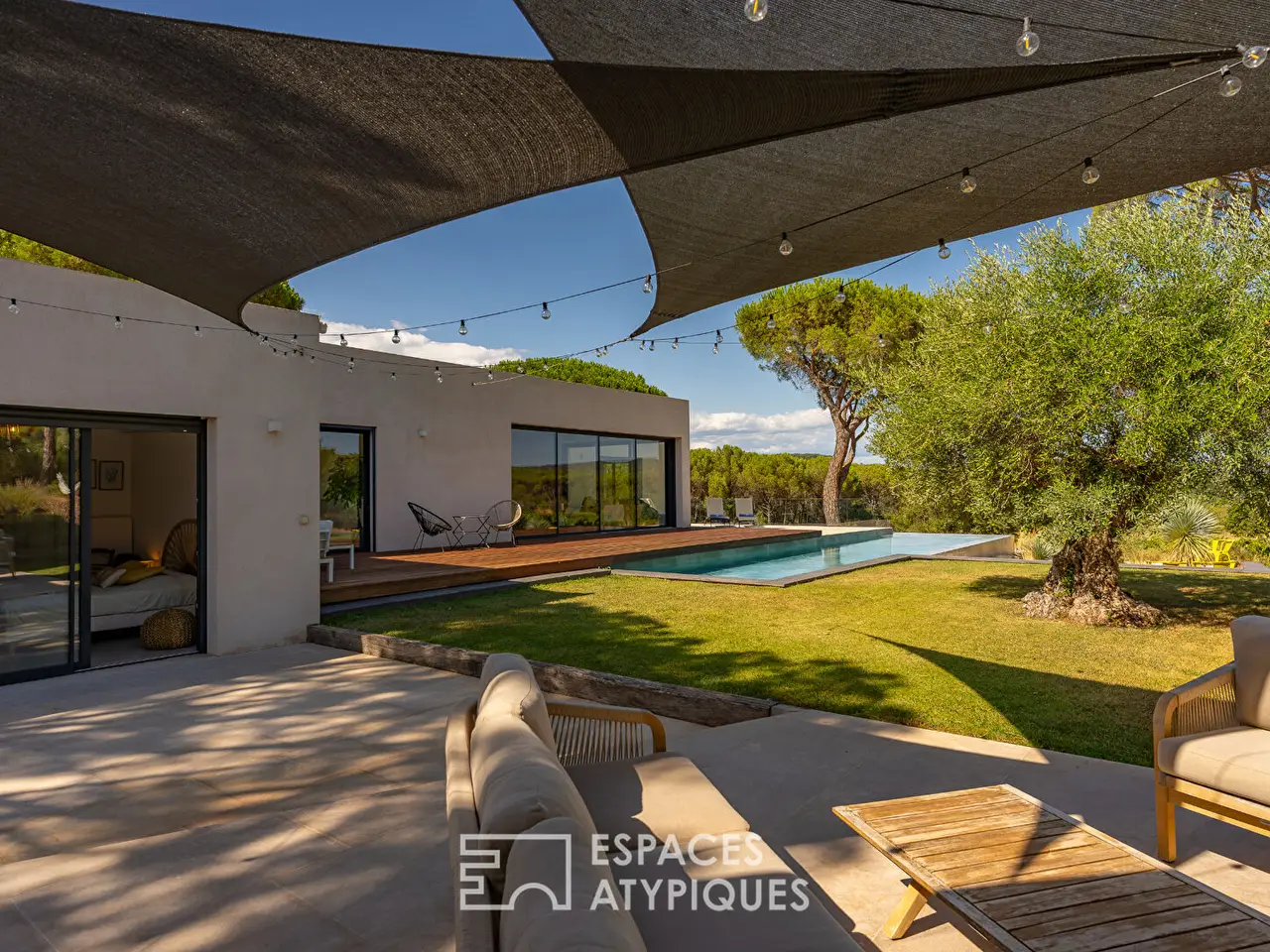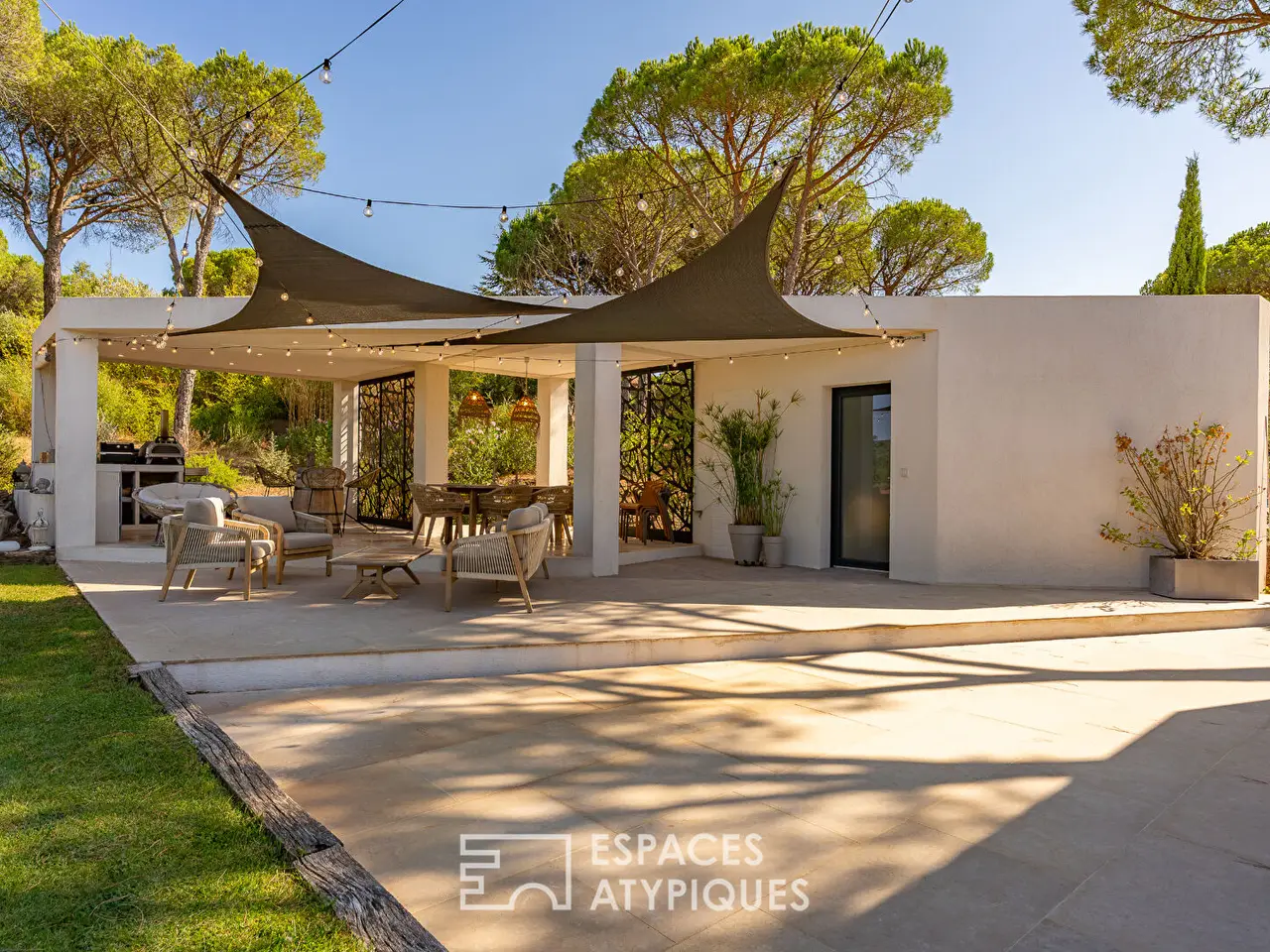 Architect-designed villa in the heart of the vineyards - In the heart of a privileged residential environment, this contemporary architect-designed villa of approximately 180 sqm stands on a vast plot of over 2,600 sqm. In a peaceful setting, it offers an exceptional living environment in the vineyards, with a heated infinity pool and several furnished terraces, inviting relaxation and conviviality with views of the Massif des Maures. The interior design is distinguished by an optimized layout and generous volumes. The main living room of over 75 sqm, bathed in natural light thanks to large bay windows, opens onto the exterior. It offers an elegant living room, a spacious dining room, and a fully equipped open kitchen with a central island. The high-end materials, clean lines, and careful decoration contribute to creating an atmosphere of serenity and modernity. In the extension, a relaxation area with a television lounge and billiards table promises convivial moments. The sleeping area consists of two bedrooms, each with a private bathroom, as well as a spacious master suite with a dressing room. A separate 50sqm apartment with its own outdoor space, consisting of a living room-kitchen, a bedroom, and a bathroom, is a real asset for entertaining friends or family, or for rental income. Outside, the landscaped garden is a true invitation to well-being. The infinity pool surrounded by a wide wooden deck and several lounge areas is the focal point of this villa. The Mediterranean vegetation brings freshness and privacy, creating a true haven of peace. A 50m3 pool house, a double garage, and a laundry room complete the features of this property. Close to all amenities, yet sheltered from view, this property is a prestigious residence rare on the market. This architect-designed villa embodies the perfect blend of design, functionality, and elegance. Its unique architecture and high-end services make it an exceptional property, a prime address for a life combining luxury and comfort. ENERGY CLASS: A (57 kWh/m2/year) / CLIMATE CLASS: A (1 kg CO2/m2/year). Estimated annual energy expenditure for standard use between EUR1,070 and EUR1,520 indexed to the years 2021, 2022 and 2023 (subscription included)REF. 12243Additional information* 7 rooms* 4 bedrooms* 4 shower rooms* 1 floor in the building* Outdoor space : 2635 SQM* Parking : 4 parking spaces* Property tax : 3 575 €Energy Performance CertificatePrimary energy consumptiona : 57 kWh/m2.yearHigh performance housing*57kWh/m2.year1*kg CO2/m2.yearA*B*C*D*E*F*GExtremely poor housing performance* Of which greenhouse gas emissionsa : 1 kg CO2/m2.yearLow CO2 emissions*1kg CO2/m2.yearA*B*C*D*E*F*GVery high CO2 emissionsEstimated average annual energy costs for standard use, indexed to specific years 2021, 2022, 2023 : between 1070 € and 1520 € Subscription IncludedAgency feesThe fees include VAT and are payable by the vendorMediatorMediation Franchise-Consommateurswww.mediation-franchise.com29 Boulevard de Courcelles 75008 ParisInformation on the risks to which this property is exposed is available on the Geohazards website : www.georisques.gouv.fr