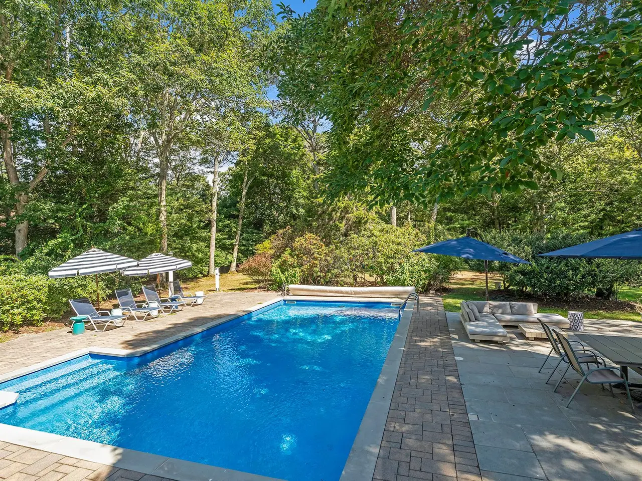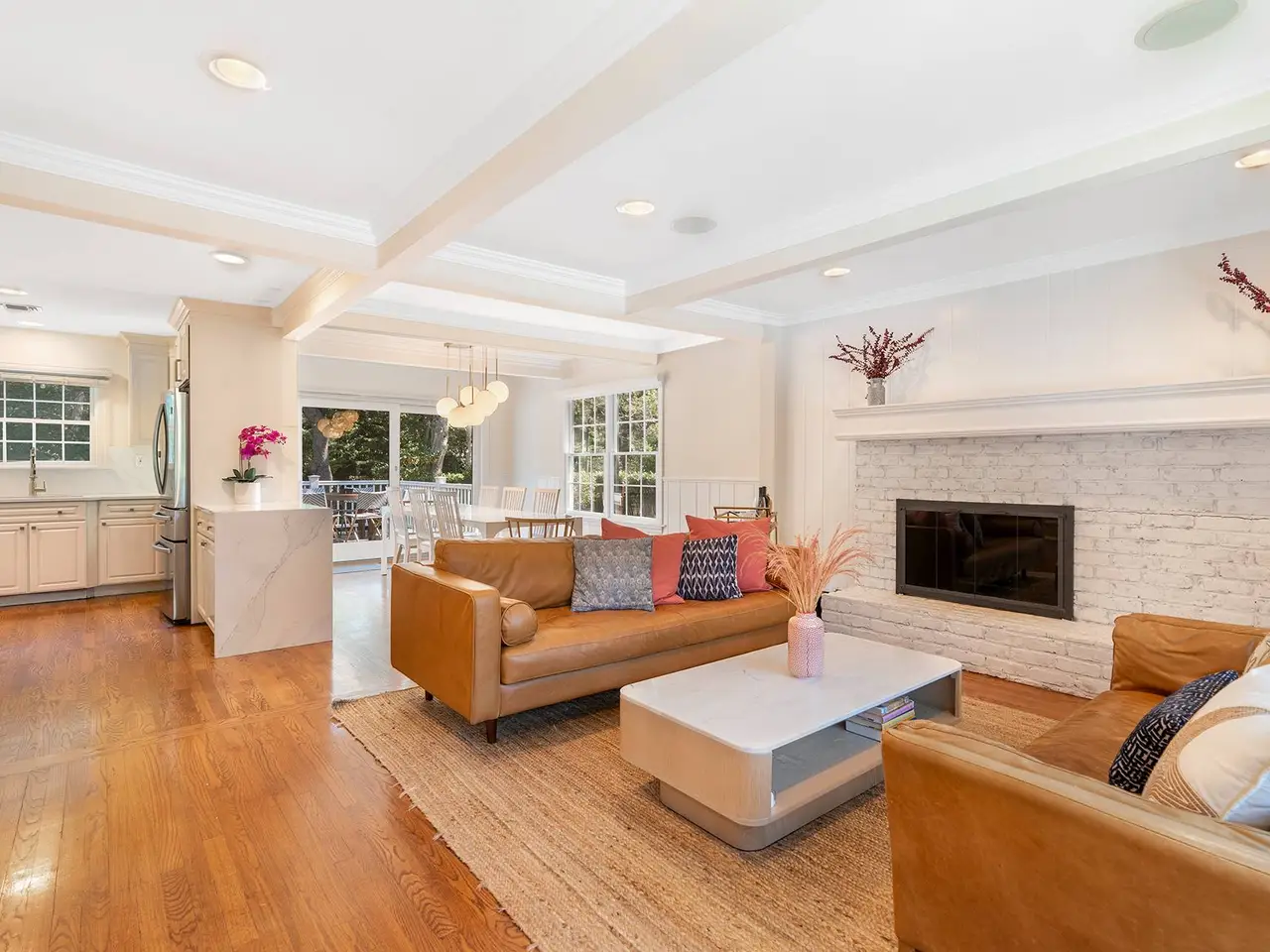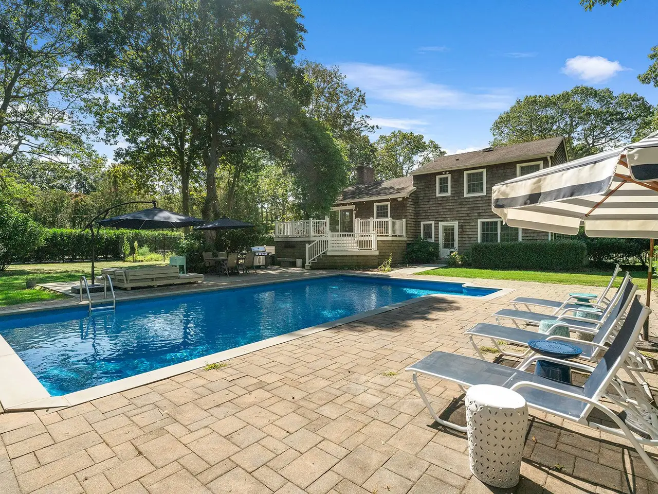 This recently renovated 4 bedroom, 3.5 bath Quogue Village home is filled with light and offers a stunning backyard with an expansive lawn, mature landscaping, heated pool and stone patio. Enter through the welcoming foyer and a primary suite with spa bath and powder room, awaits on the first floor. The main level includes a cozy living room with fireplace, dining area, and well-equipped kitchen. Off the dining room is the outdoor deck for dining and entertaining. The upper level boasts a second primary en suite, two guest bedrooms and a hall bath. A lower level family room provides another entertaining space. The layout lends itself to multiple areas for gathering. Located in the Village with access to the residents-only Quogue Beach. Available for Winter 2025/2026 and Summer 2026. Listing ID: 925747