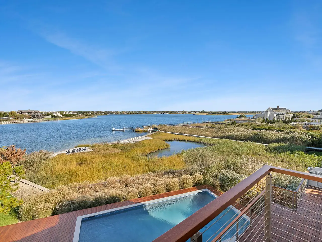 Discover luxury waterfront living at 218 Dune Road, Westhampton Beach. This stunning bayfront coastal oasis offers unparalleled elegance and comfort throughout 4,000 sf of living space. The traditional style architecture spans across 2 stories offering 5 bedrooms, including both a first-floor and second-floor primary suite, 5 full baths and 1 half-bath. The open and bright interior features a gourmet eat-In kitchen with top-of-the-line appliances, living room with cozy fireplace, family room, and den/office. Each room showcases the spectacular vistas with walls of windows and sliding glass doors leading to decks and balconies. Outdoors, enjoy breathtaking bay views, direct bay access, the in-ground, heated pool, hot tub, and an expansive entertainment-ready deck surrounded by water views. Ample driveway parking plus 3 garage spaces and plenty of storage. Located between the bridges, this property also includes beach access. Come to 218 Dune Road where every day feels like a vacation.