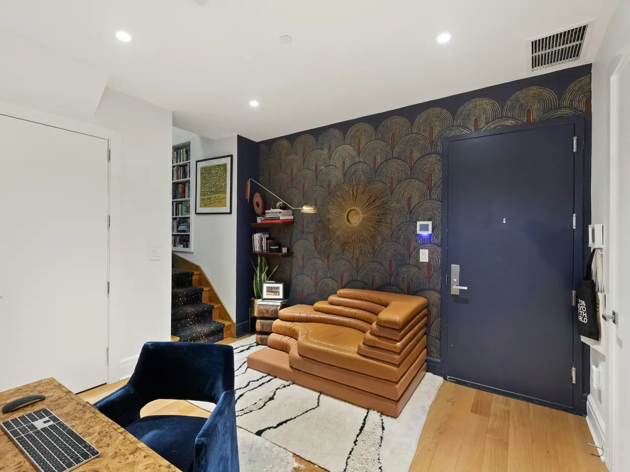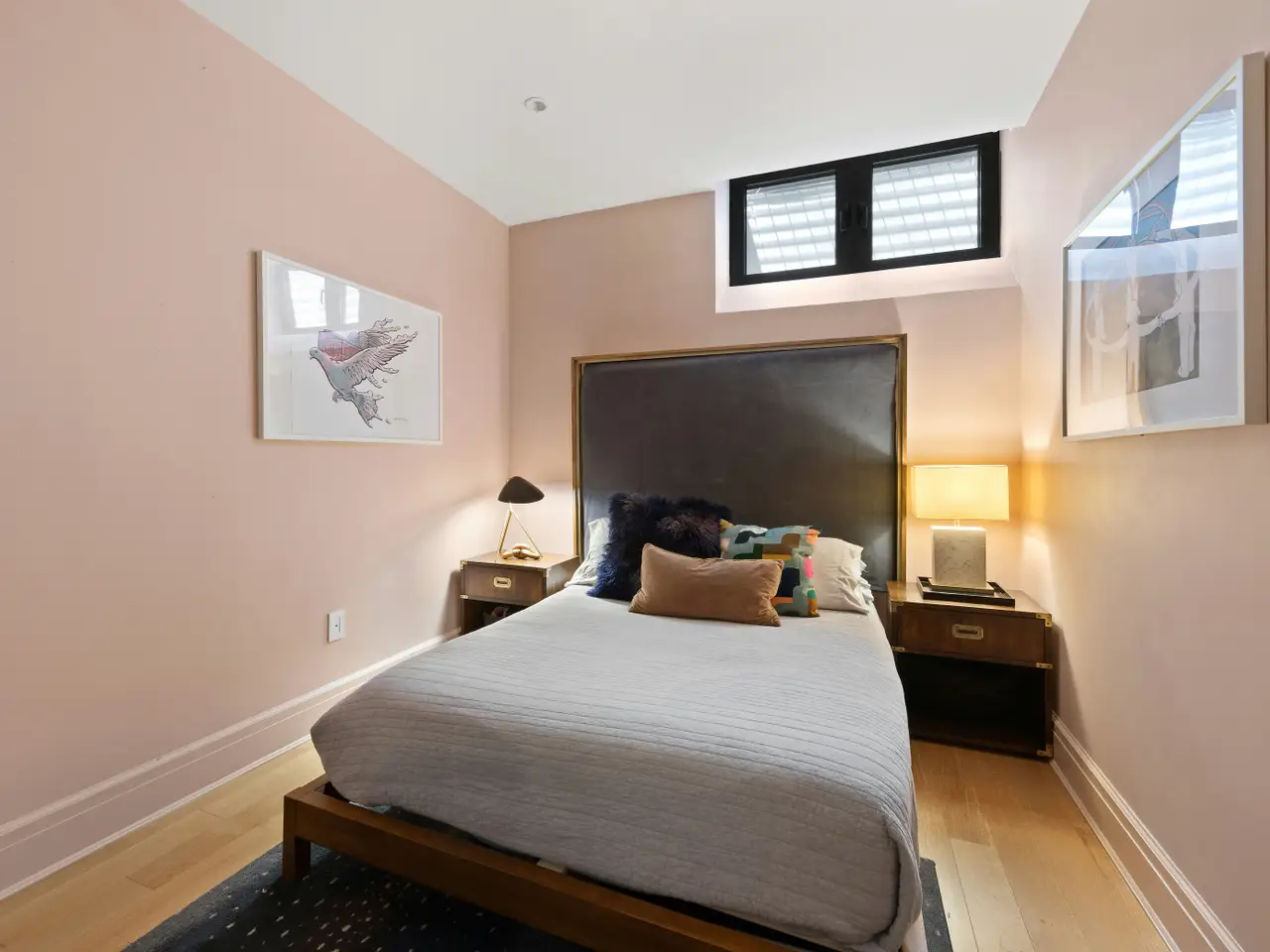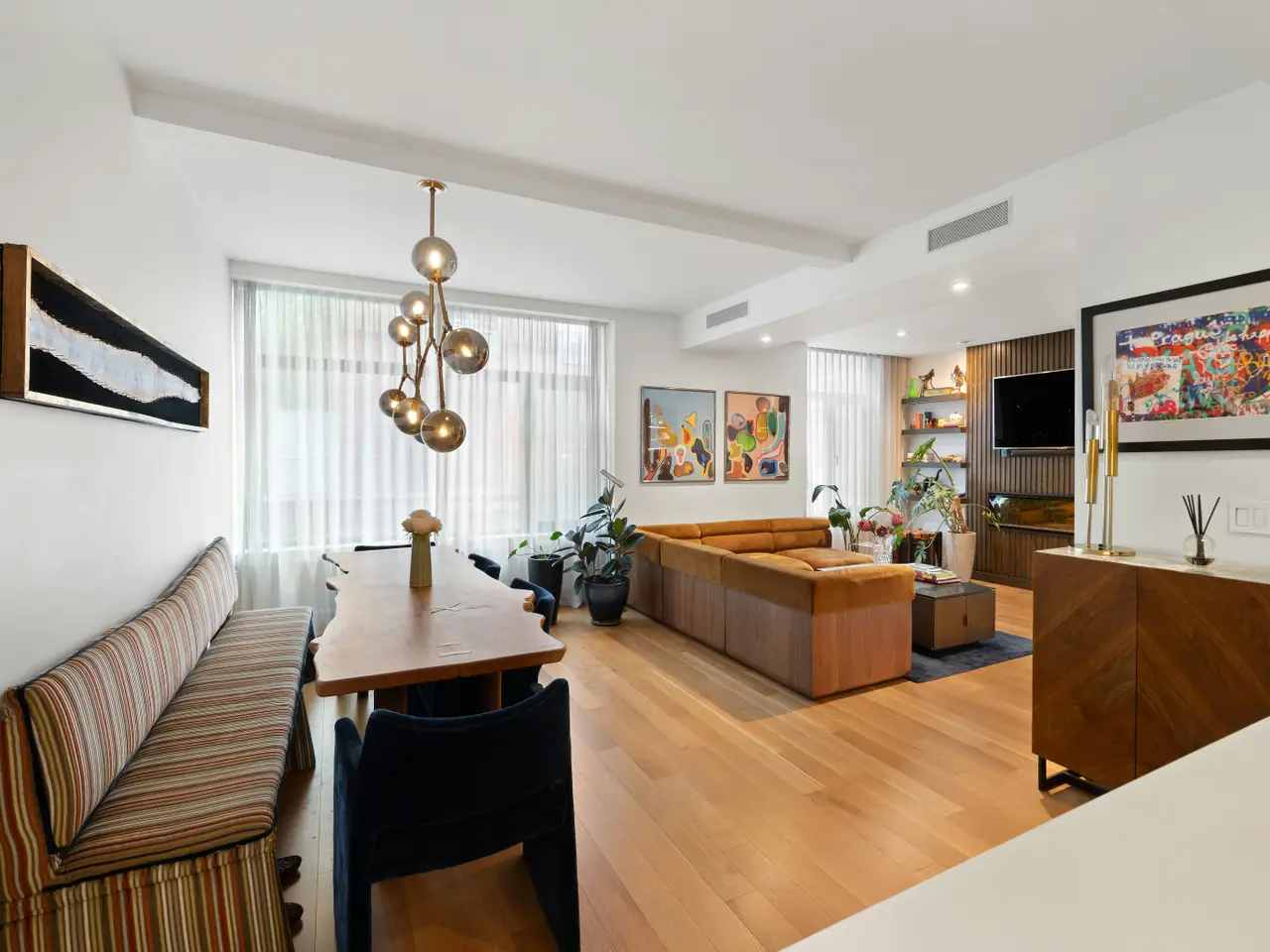Sophisticated Duplex Townhouse-Style Home with Outdoor Space in Prime DUMBO/Vinegar Hill Nestled on one of DUMBO/Vinegar Hill's most picturesque cobblestone streets, Residence THB is a beautifully reimagined two-bedroom, two-bathroom duplex that combines the charm and scale of townhouse living with the ease of condominium ownership. Originally configured as a legal three-bedroom, the home has been thoughtfully redesigned as an expansive two-bedroom residence. (See alternate floor plan for the three-bedroom option.) The upper level of this home showcases an open-concept living and dining area, highlighted by oversized windows, high ceilings, custom wood paneling, and a built-in dry bar-perfect for both relaxing and entertaining. The chef's kitchen is equipped with premium Bosch appliances, classic white shaker cabinetry, Caesarstone quartz countertops, and a breakfast bar. Also on this level is a sleek, full bathroom adorned with Carrera marble and generous storage completes this floor. A dramatic staircase with bespoke lighting separates the bedrooms of this home. As you descend to the lower level, you will find a spacious landing that offers itself as the perfect home office or media room. This area features high ceilings a large walk-in closet, in unit laundry and storage. Also on this level is beautifully appointed marble bathroom that accompanies the primary bedroom and secondary bedroom. Additional features include wide-plank white oak floors, multi-zone central A/C, Somfy automated shades, and a fully outfitted laundry room with a vented Samsung washer/dryer. The home also comes with a private rooftop cabana and two personal wine storage lockers in the buildings wine tasting room. An indoor deeded parking space and storage unit are available for separate purchase-please inquire for details. With extremely low common charges, tax abatement, and a host of premium features, Residence THB represents one of the best value opportunities in DUMBO.