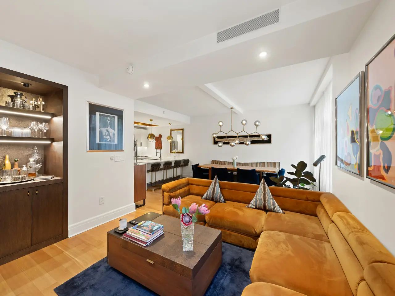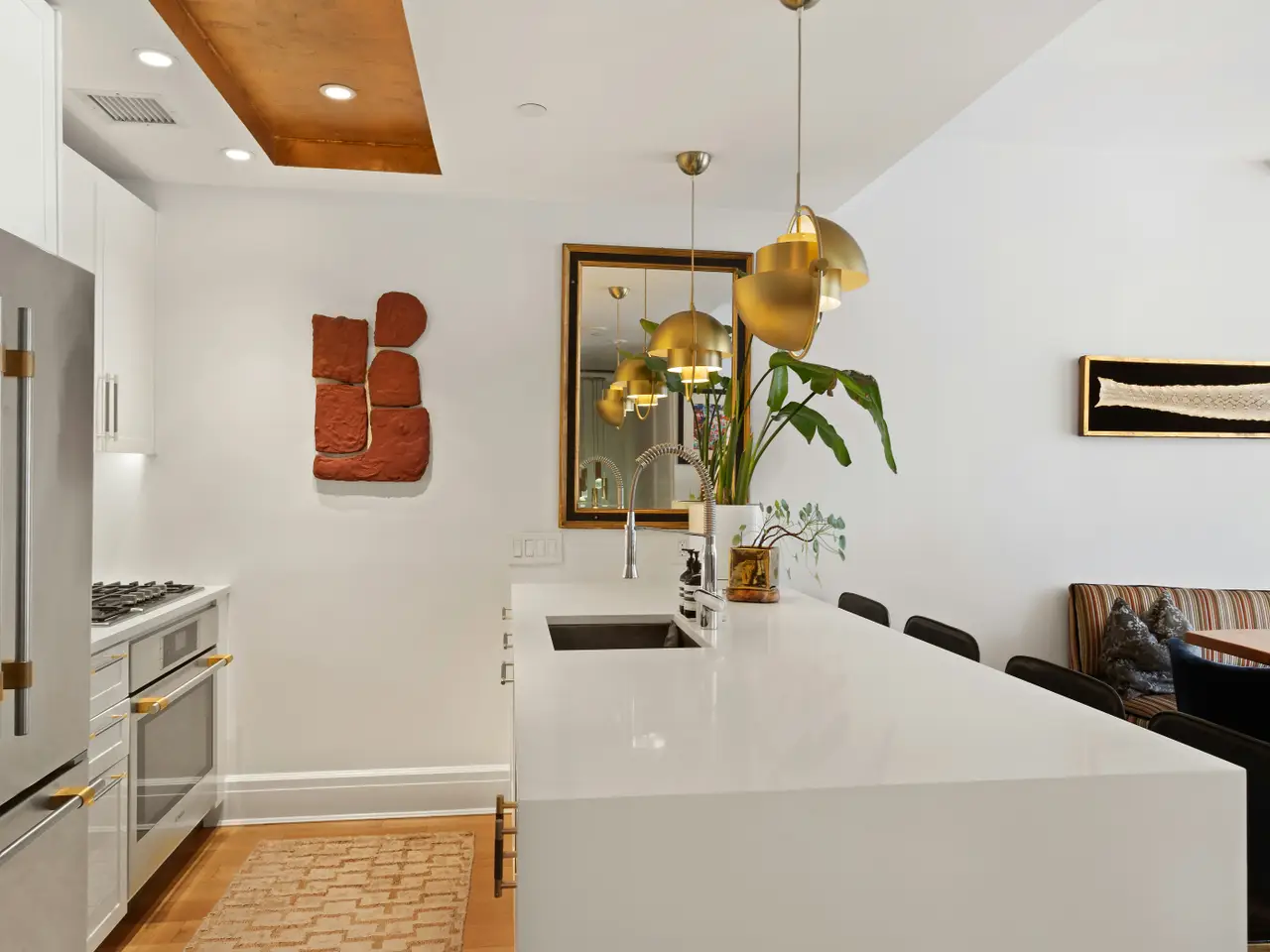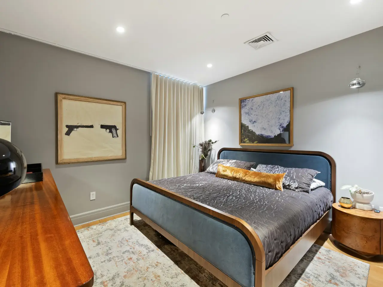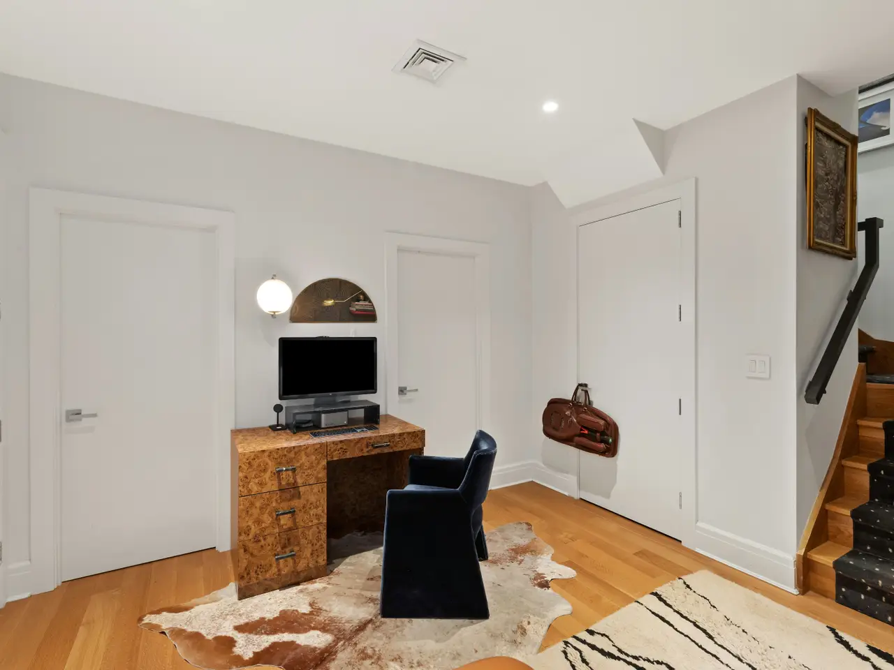 Sophisticated Duplex Townhouse-Style Home with Outdoor Space in Prime DUMBO/Vinegar Hill Nestled on one of DUMBO/Vinegar Hill's most picturesque cobblestone streets, Residence THB is a beautifully reimagined two-bedroom, two-bathroom duplex that combines the charm and scale of townhouse living with the ease of condominium ownership. Originally configured as a legal three-bedroom, the home has been thoughtfully redesigned as an expansive two-bedroom residence. (See alternate floor plan for the three-bedroom option.) The upper level of this home showcases an open-concept living and dining area, highlighted by oversized windows, high ceilings, custom wood paneling, and a built-in dry bar-perfect for both relaxing and entertaining. The chef's kitchen is equipped with premium Bosch appliances, classic white shaker cabinetry, Caesarstone quartz countertops, and a breakfast bar. Also on this level is a sleek, full bathroom adorned with Carrera marble and generous storage completes this floor. A dramatic staircase with bespoke lighting separates the bedrooms of this home. As you descend to the lower level, you will find a spacious landing that offers itself as the perfect home office or media room. This area features high ceilings a large walk-in closet, in unit laundry and storage. Also on this level is beautifully appointed marble bathroom that accompanies the primary bedroom and secondary bedroom. Additional features include wide-plank white oak floors, multi-zone central A/C, Somfy automated shades, and a fully outfitted laundry room with a vented Samsung washer/dryer. The home also comes with a private rooftop cabana and two personal wine storage lockers in the buildings wine tasting room. An indoor deeded parking space and storage unit are available for separate purchase-please inquire for details. With extremely low common charges, tax abatement, and a host of premium features, Residence THB represents one of the best value opportunities in DUMBO.