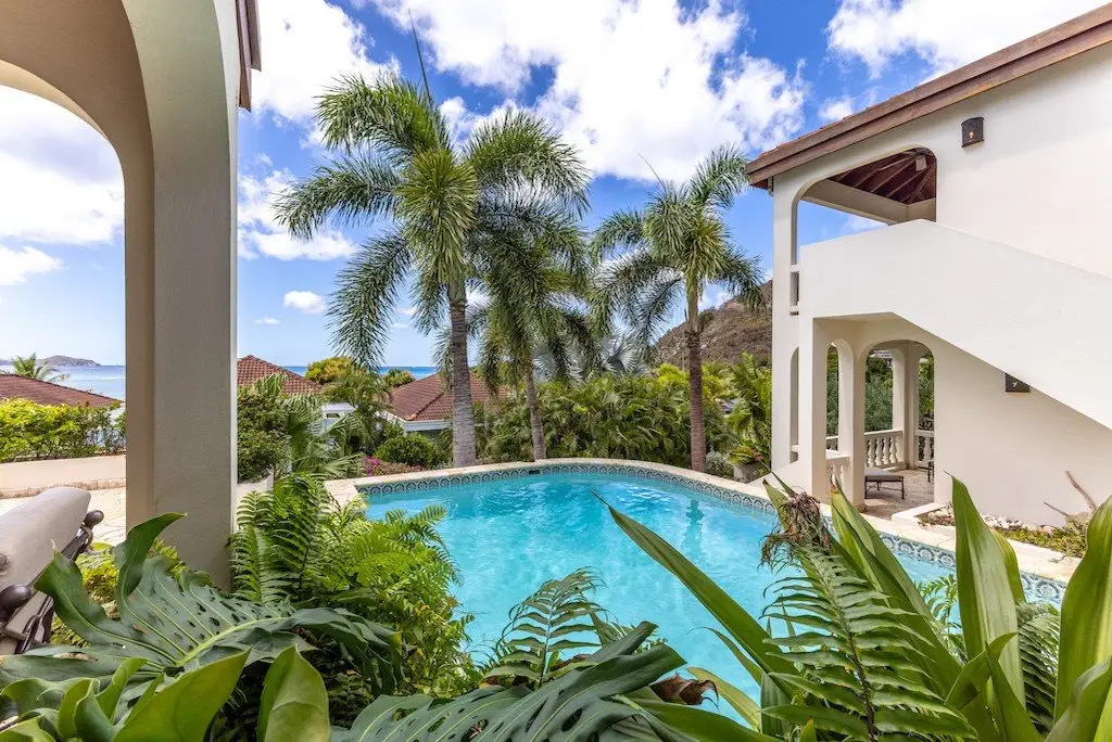 Bellamare is about 100 yards to Mahoe Bay, a beautiful beach of crystal clear water. It affords an exotic lifestyle of year-round warm temperatures, brilliant sunsets and cooling Trade Winds on a small island. Bellamare is built slightly hillside overlooking the islands of Sir Francis Drake Channel. This 4-bedroom house is situated in a low-density, private estate within 10 minutes’ drive of the airport, the yacht harbor and excellent restaurants and shops. It is skillfully designed to capture the spectacular ocean view while ensuring perfect privacy. A sunny free-form pool and a tanning deck are centrally located. This is a rare opportunity to own a home very close to a beautiful beach. For more details about ownership of this vacation rental villa, contact the agent, Bernadette George. Price: $2.65M USD Property type: House (completed 1999) Bedrooms: 4 Bathrooms 4.5 Site Acreage: 0.379 acres /0.15 hectare Title: Freehold Location: Hillside on Mahoe Bay, Virgin Gorda Estate: Covenanted Estate House size: Approximately 4500 covered space Pool: Yes, and tanning deck. Air Condition All bedroom suites have AC Water Cistern of 50,000 and BVI Government Mains water Electricity: BVI Electric Corporation Generator Mahoe Bay Estate Generator Tennis Courts Yes Watersports Storage and rental of watersports equipment nearby Beach Access Yes – concreted walkway of 200 yards to Mahoe Bay Vacation Rental Has been a highly successful vacation rental property