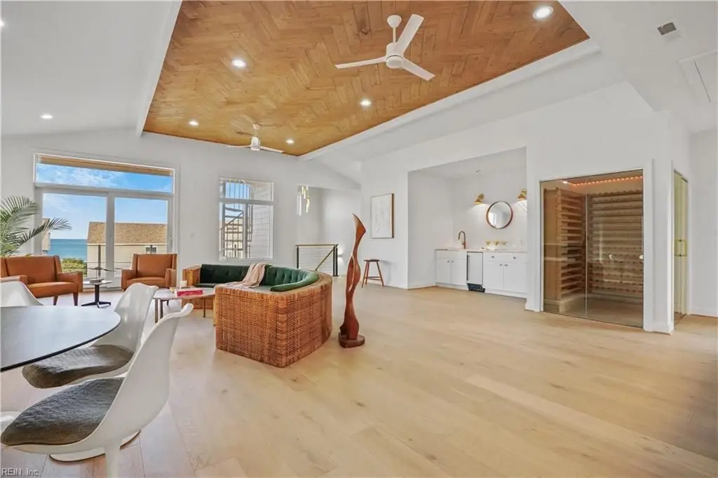 Completely renovated, modern, coastal dream house w/ ocean views. This 5 bedroom, 3.5 bath, semi-oceanfront property was designed for inspired living: open concept, high ceilings, under-lit quartzite bar, 192 bottle wine room, 19 ft quartzite island, custom copper hood, designer light fixtures, open stairway w limestone treads, modern gas fireplace, elevator ready, white oak engineered hardwood floors, modern exterior glass railings, 1st floor bedroom/rec room w bar, huge walk-in primary closet, primary bath XL soaking tub w custom double vanity, large balcony w ocean views, rooftop crows nest, floating stone sink in powder bath, herringbone wood detail on 3rd floor ceiling, 48" Viking Double Oven gas range, Sub Zero paneled fridge, new Hardie siding, new tankless water heater, new 3 unit HVAC and much more. Prepare to be wowed!!