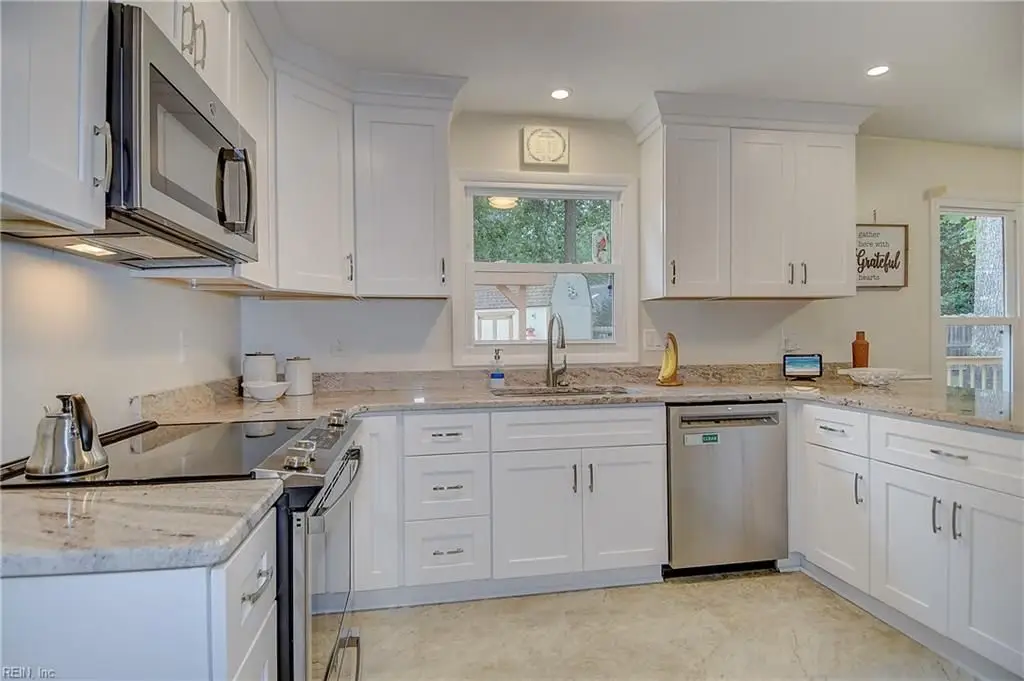 Fantastic home on large corner lot on over 1/2 acre with tons of upgrades. Newly renovated kitchen in Dec of 2024 with walk in pantry, granite countertops, new cabinets, new dishwasher, other appliances 3 to 5 yrs old, New Bosch HVAC system (5 ton) in Aug of 2020. New Roof, new gutters and gutter guards in Sept of 2020. 15 new windows and (2) sliding glass door. in December 2020. Newer barn-style shed with loft storage in July 2020, Hardwood floors new downstairs in June of 2014 & October of 2017. Energy saving Dominion Energy system conveys. Six true bedrooms and tons of room! Separate area with two bedrooms and full bath, large primary bedroom with two closets, two refinished showers, large wooden deck with newly replaced boards and newly painted, fenced yard & 2 car garage. Excellent location near shopping, restaurants, excellent schools, Dam Neck Base and Sandbridge beach!