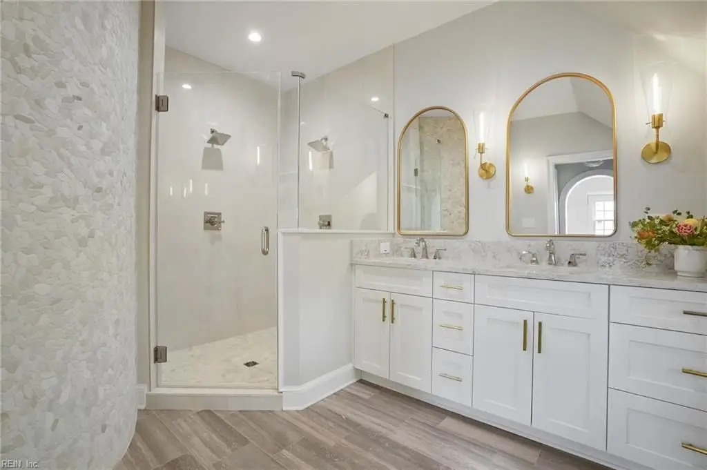 Own a piece of Virginia Beach history! The iconic red brick house on the hill has been fully renovated and restored blending modern luxury with historic charm. Now selling the main house only which is 3 bedrooms and 2.5 bathrooms with an option to purchase adjacent lot with garage apt. Perched on one of the highest elevations in Bay Colony, this home is a classic focal point while offering tons of privacy and natural light. Complete restoration of both interiors was finished in 2023 and includes a timeless design with all new appliances, custom cabinets, quartz countertops, wide plank wood floors throughout, wood accent beams on ceiling and mantle, custom spiral wood staircase, all new bathrooms, lighting, door hardware, all new plumbing and electrical, new windows, HVAC, tankless water heater, finished basement w/ laundry and quartz countertop plus sink combined with the gorgeous original brickwork on siding and 2 interior fireplaces, slate roofs and copper flashing. Just WOW!