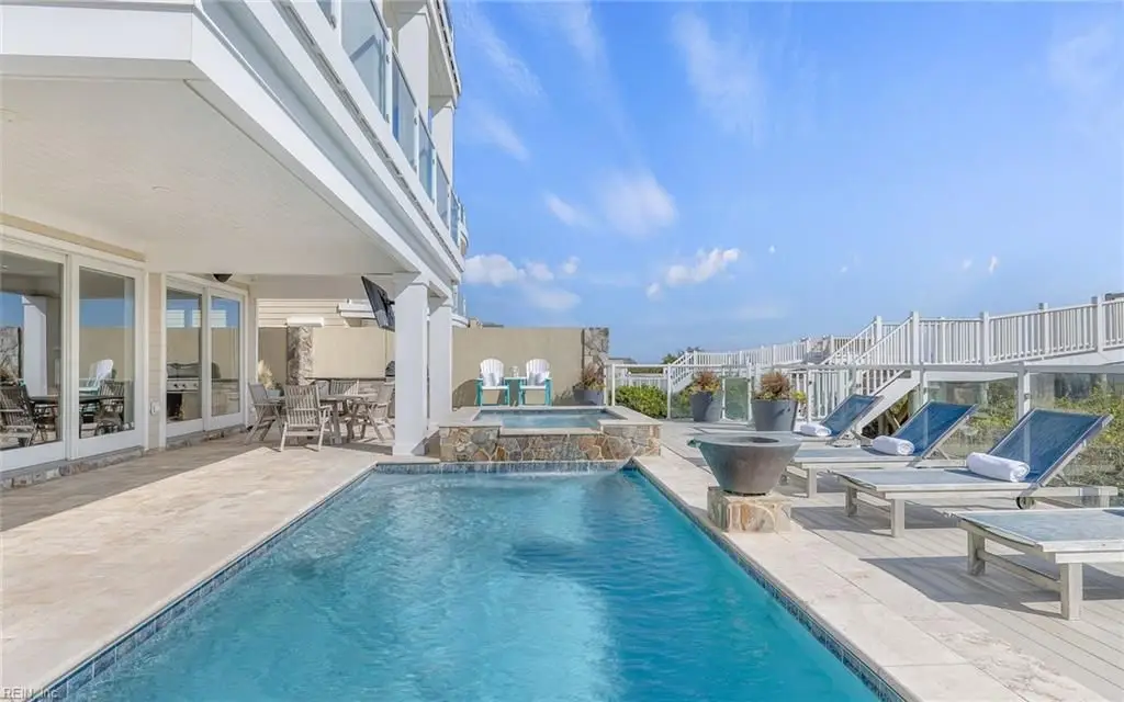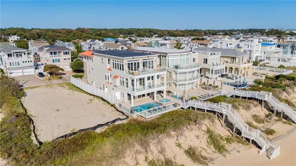 Embrace the coastal luxury lifestyle in this stunning oceanfront home, with sweeping ocean views from every level. Thoughtfully designed with no expense spared, including a Control4 Smart Home System, elevator and refined finishes throughout. 1st floor family room with wet bar opens to the pool. 2nd floor primary suite with built-in coffee bar, spa-inspired bath and endless ocean vistas; complemented by 3 additional ensuite bdrms. Spectacular 3rd floor features an entertainer's kitchen w 2 sinks, high-end appliances, chefs pantry, living and dining flanked with a fp and framed by oversized glass sliders; additional family rm plus home office. Sleek glass deck rails ensure unobstructed views on every level. Outdoor pool with retractable cover, spa, fire feature, grill station, shower, plus private walkway with seating area leads directly to the sand. Designed for effortless entertaining and everyday indulgence, this home blends elevated luxury with the relaxed rhythm of coastal living.