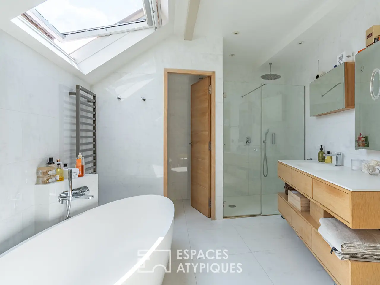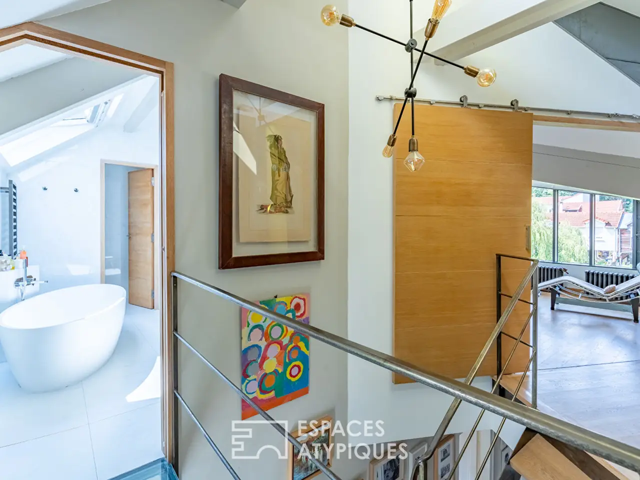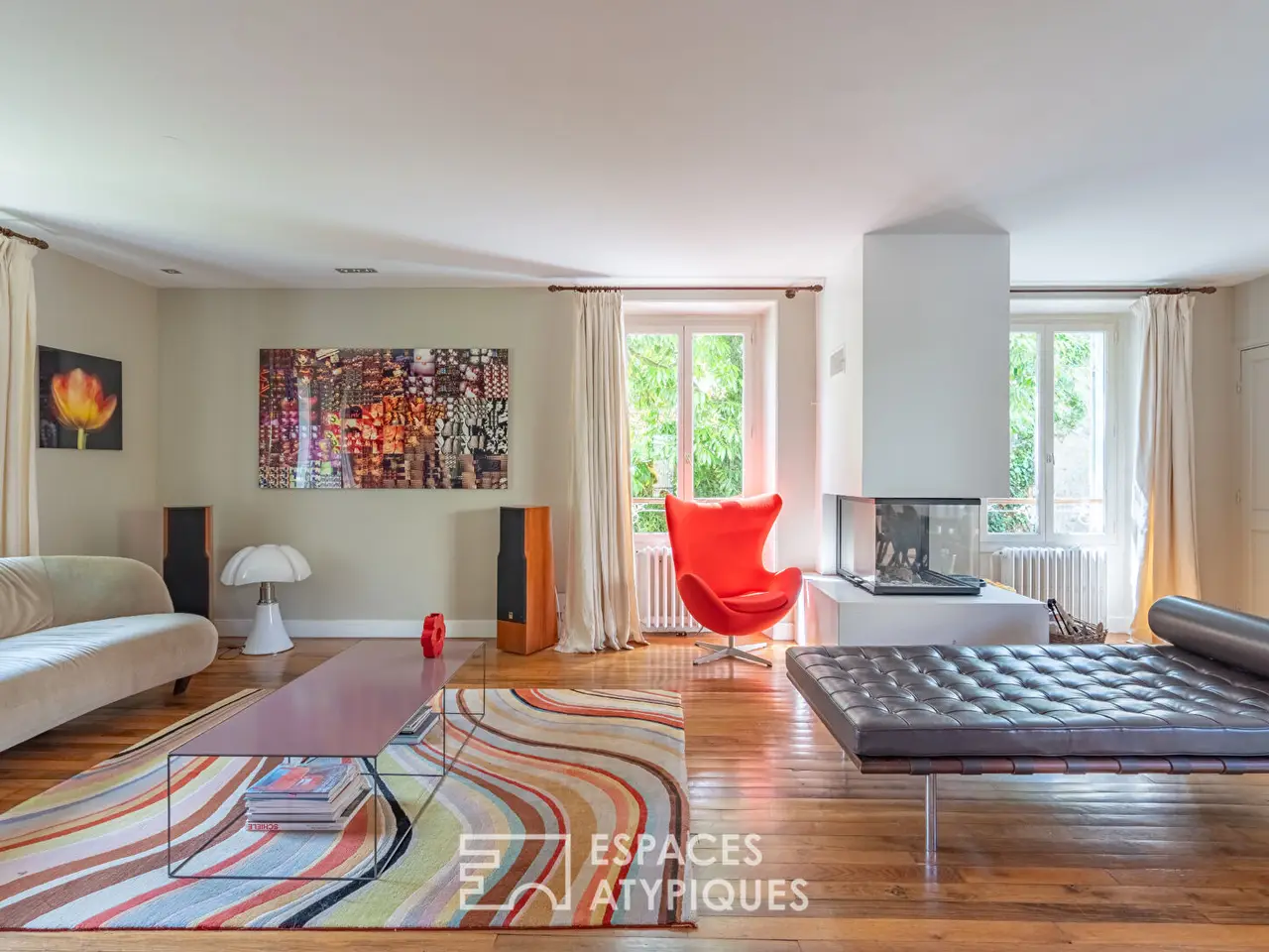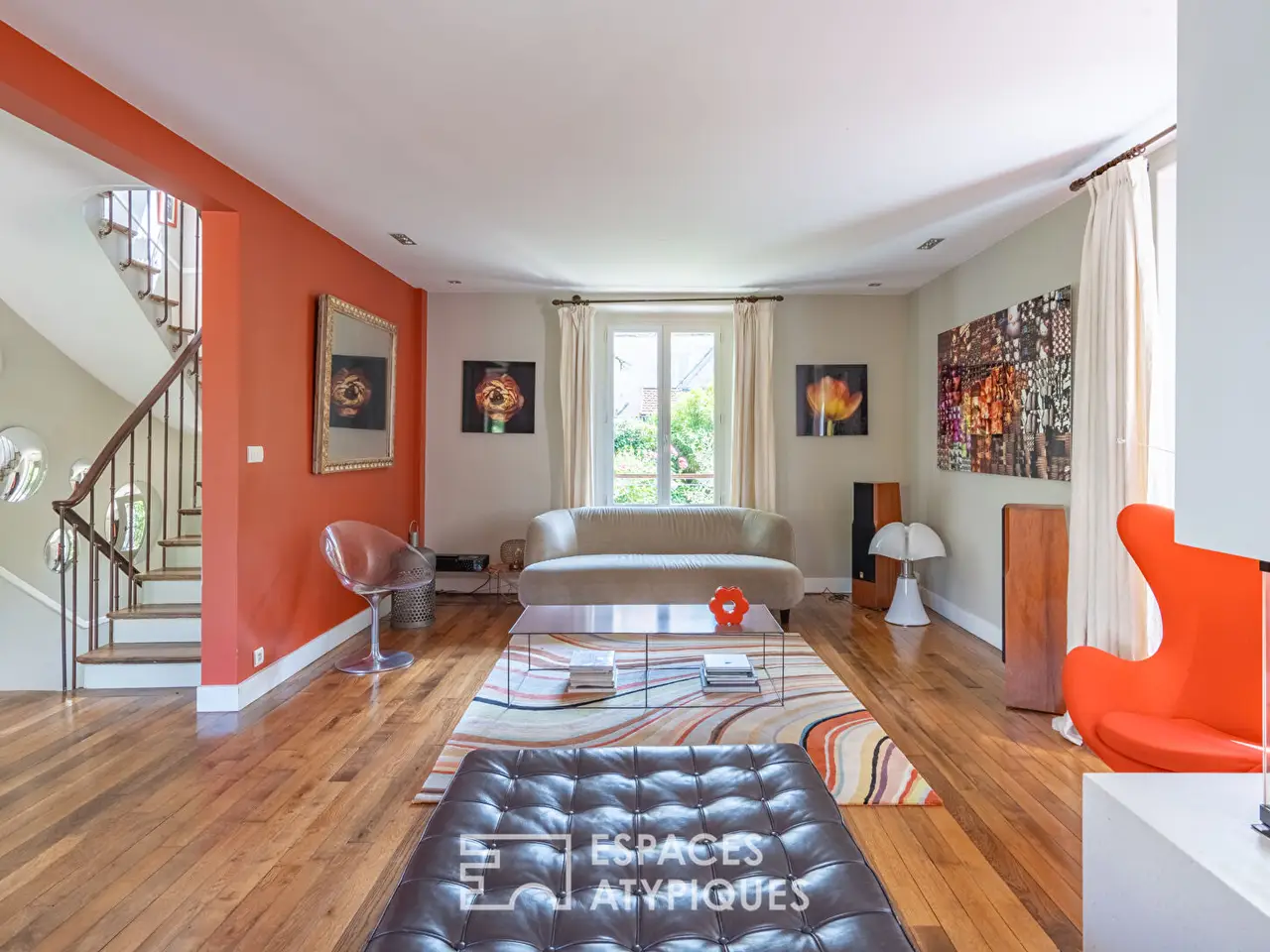 Located in the immediate vicinity of the Rive Droite station, Viroflay, the city center and the shops, this sumptuous 9-room house revisited by an architect awaits you for an unforgettable visit. With its 300 m2 surface area and its charming 700m2 garden, this property is distinguished by an architecture that is at once classic, modern and atypical, classic and contemporary by its first two levels borrowed from bourgeois houses and atypical by the incredible and unexpected elevation futuristic which characterizes its timeless charm and its high-end services. The result of this composition offers as a highlight to those who will live there an exceptional levitating master suite, a very pleasant double living room, a heated swimming pool and a warm terrace opening onto the garden out of sight. Ideally nestled in a discreet and cocooning environment, this house offers an exceptional living environment. As soon as you enter, you will be won over by the impeccable condition and modernity of this residence carefully renovated by the architect. The 60 m2 double living room, the real heart of the house, offering a breathtaking view and direct access to the garden, creates a friendly and bright space where it is good to get together with family or friends. The adjoining and independent kitchen, fully equipped with quality materials, is separated from the dining area and the living room by an industrial glass roof. A functional scullery enriched the latter. The brightness, omnipresent thanks to its through configuration, bathes each room in natural light, creating a warm and welcoming atmosphere. A separate WC completes this level. The home has 4 to 5 spacious bedrooms spread across the two upper levels, including two large master suites with en-suite bathrooms, perfect for comfortably accommodating your family and guests. The modernist elevation carried out in 2010 by an enlightened architect gives this totally incredible, atypical and rare place a magnificent master suite with a panoramic and crazy view of the garden, accommodating an office, a large dressing room, a private terrace, a bathroom and a suspended designer fireplace offering space for an unrivaled space of relaxation and tranquility. The finished basement is an additional asset to this property. It includes a large multi-purpose room that can be used as a cinema room or sports room. You will also find a laundry area, a spacious wine cellar with gravel on the floor for optimal storage temperature, as well as a storage room and a technical room housing the machinery for the swimming pool and the gas boiler. Finally, the 700 m2 garden, carefully maintained and planted with several species (palm, fig and a large cedar), is a true haven of peace. The heated swimming pool and the 30 m2 terrace are perfect for enjoying the sunny days and organizing moments of relaxation outdoors in this privileged setting inviting relaxation and pleasure. The condition of the floors and installations (plumbing, gas heating, electricity) is excellent, guaranteeing optimal daily comfort. Three outdoor parking spaces complete this exceptional property. Possibility of building a closed garage. Close to schools and shops Near Tram, Line N, bus 171 2 minutes walk, RER 5 minutes walk ENERGY CLASS: C / CLIMATE CLASS: C. Estimated average amount of annual energy expenditure for standard use, established based on energy prices for the year 2021: between €2,310 and €3,200. REF. 6988 Additional information * 9 rooms * 5 bedrooms * 2 bathrooms * Outdoor space : 780 SQM * Parking : 2 parking spaces * Property tax : 1 000 €