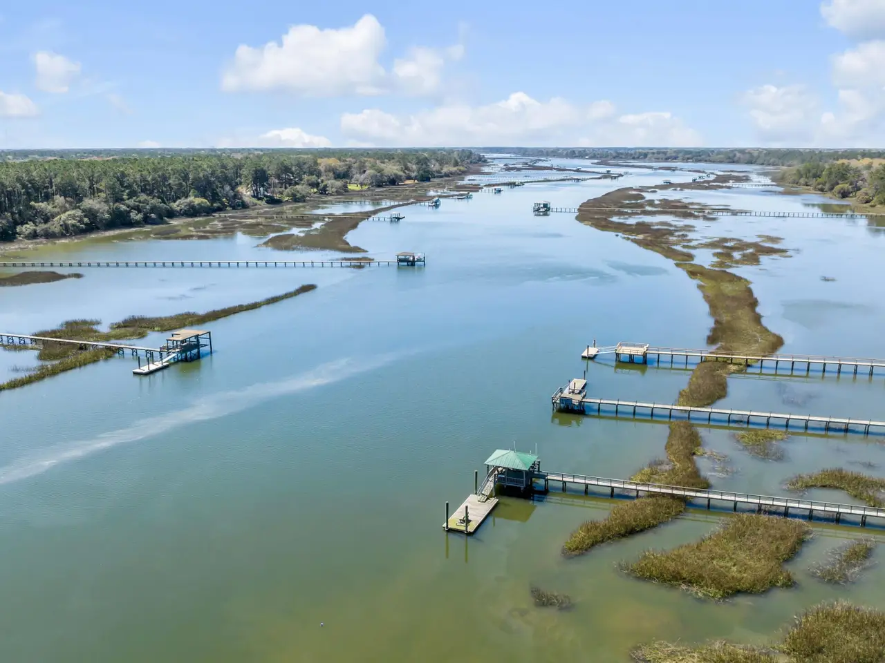 Set on 3.5 acres in Longcreek Plantation, one of Wadmalaw Island’s premier waterfront communities, this deep water estate offers the perfect blend of privacy, convenience, and luxury. Located in a private gated neighborhood, it’s just ten minutes from Johns Island dining and shopping, yet feels worlds away. Enjoy quick, direct ocean access from your true deep water dock (eight feet at mean low water), complete with a 12,000-pound boat lift. The home features a multi-car garage, modernized kitchen and bathrooms, elevator, saltwater pool, greenhouse, whole-house generator, and dedicated office space—all within a highly efficient layout. The open floor plan centers around a chef’s kitchen outfitted with Wolf and Sub-Zero appliances, plus a bar with an ice maker. The primary suite is thoughtfully separated, offering a peaceful retreat. A media room provides flexibility and could easily serve as a formal dining room. Expansive windows on both the front and back of the home flood the space with natural light and showcase gorgeous Lowcountry views. The property is incredibly private—except for the occasional deer or turkey sighting. This is Lowcountry deep water living at its finest.