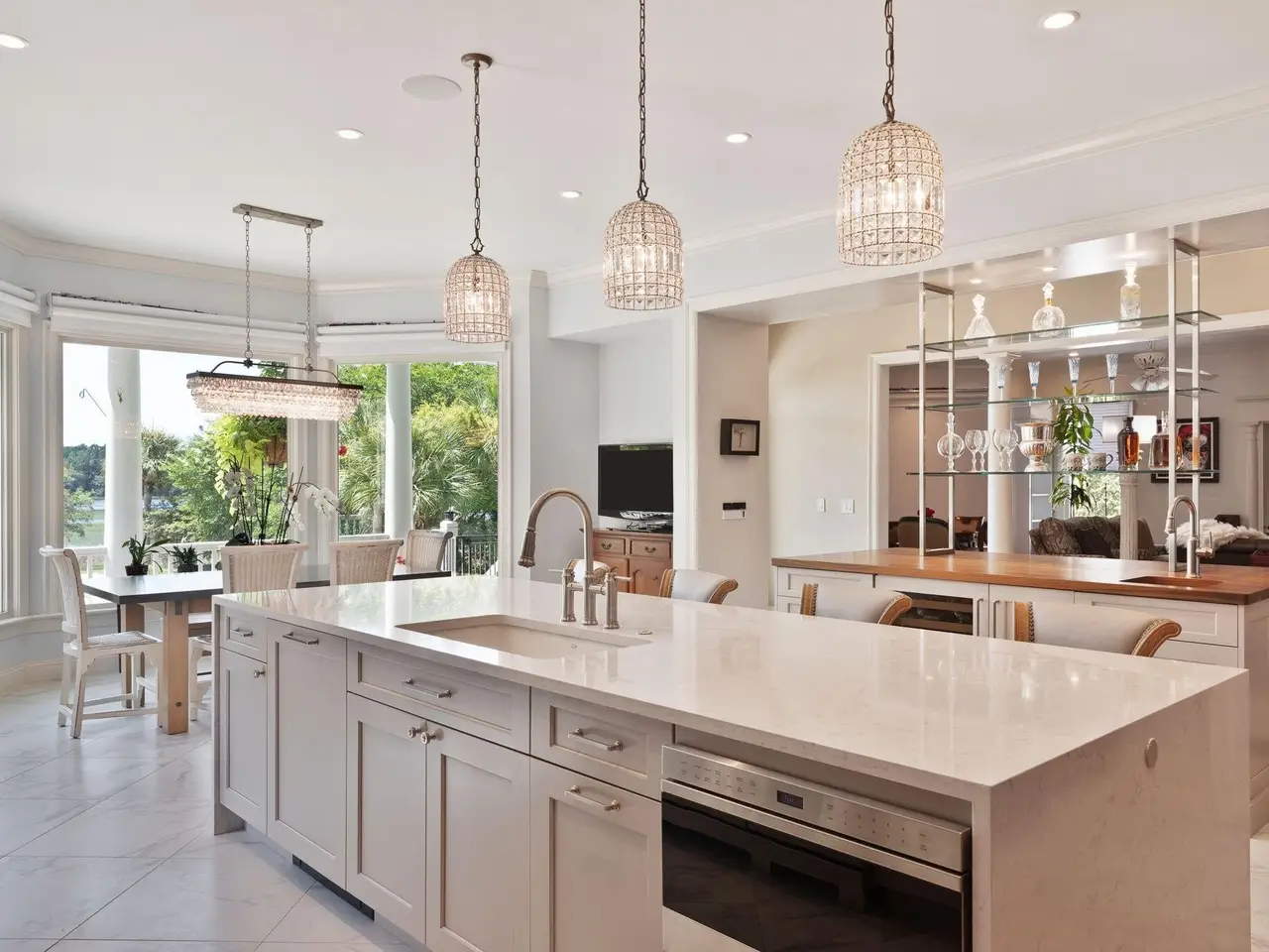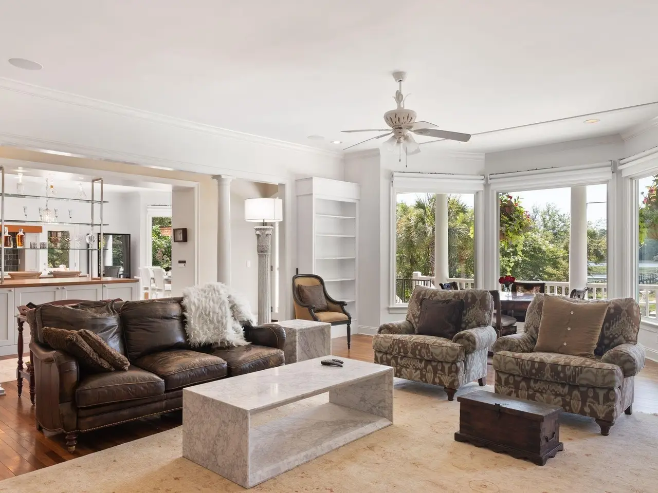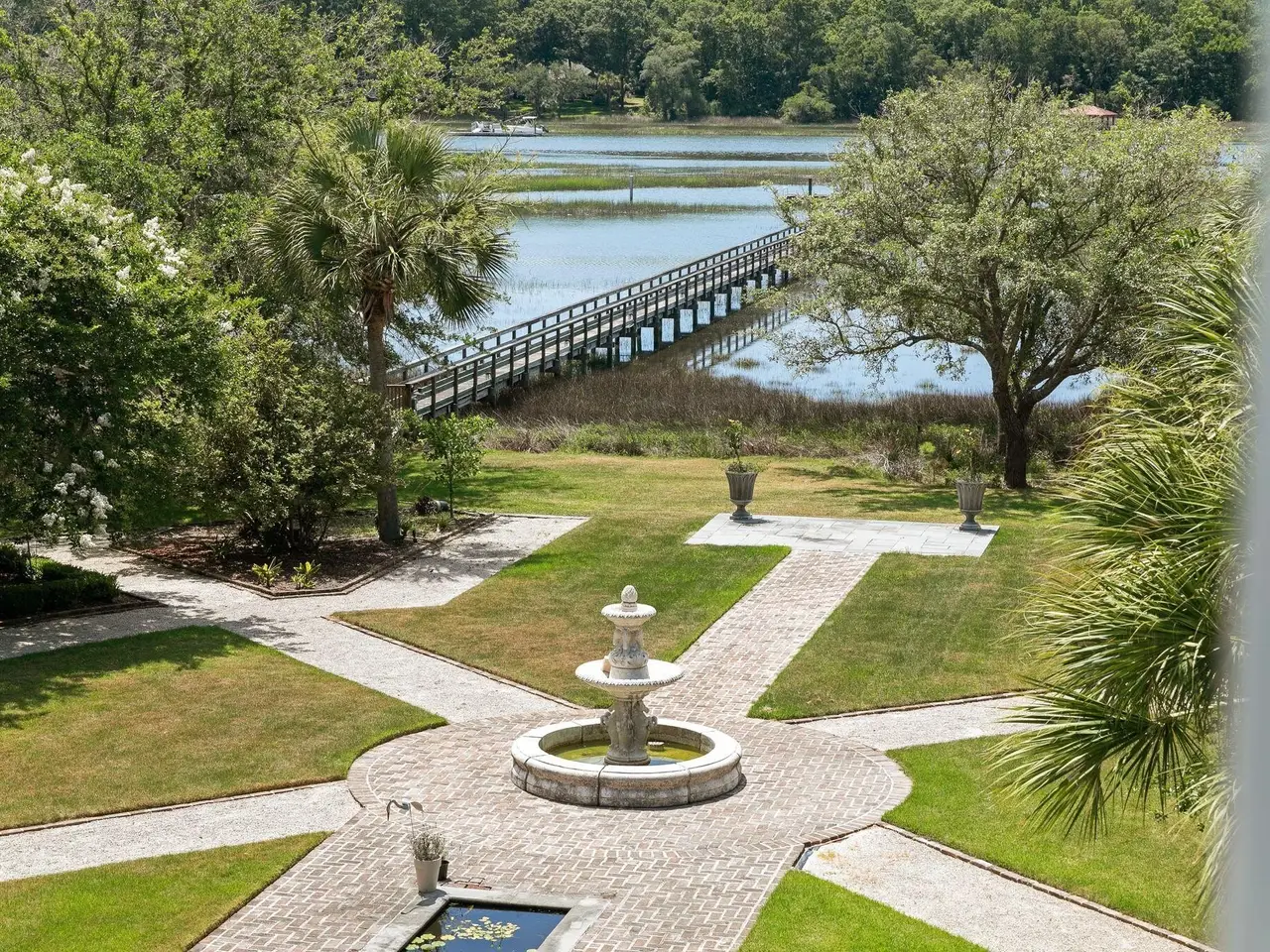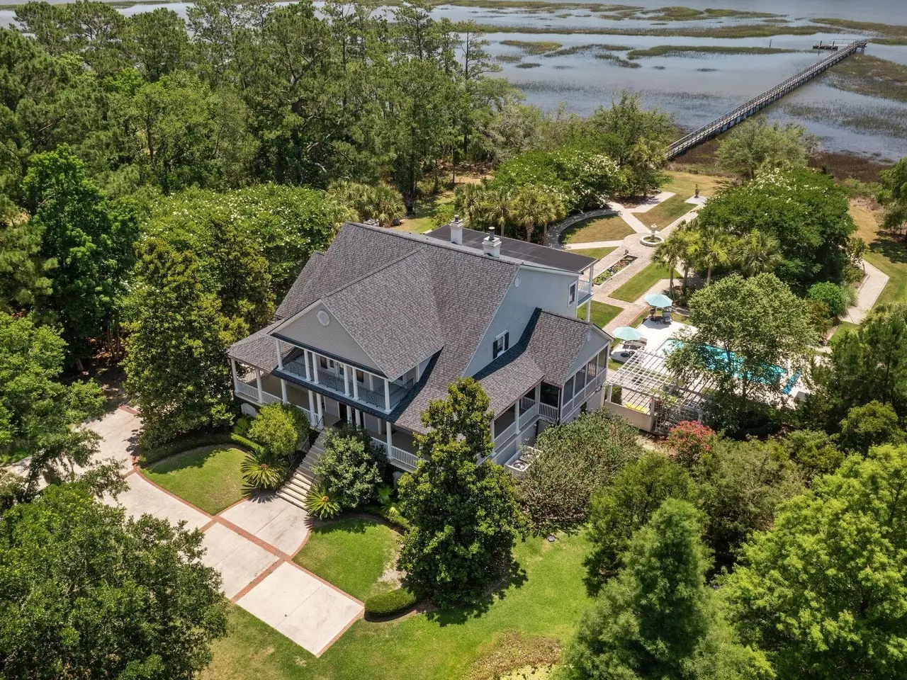 Private waterfront 6-acre estate on Wadmalaw Island. Idyllic setting with unsurpassed views on Bohicket Creek. Gourmet renovated kitchen with Viking refrigerator, Wolf gas range, custom cabinetry, two islands (including bar), breakfast room, and office. Dining room located down the Barrel vaulted ceiling hallway. Open fireplace between den and living room. Built-in bookshelves throughout. Combination of wood and carpet floors. Private resurfaced tennis court. Private dock. Pool with new travertine tile and Cabana to enjoy outdoor living! Pristine landscaped yard with Koi pond, fountain, new brick walkways, and numerous fruit bearing trees/plants. 3 ponds (1 saltwater pond, 2 natural). Irrigation system. Elevator to all 3 levels. Central vacuum system.Room on ground level and underneath parking. Low tide approximately 2 feet. Flood Insurance $455.00 per year. Gated community. Neighborhood boat ramp. M-F 6pm-6am, Saturday and Sunday 24 hours.