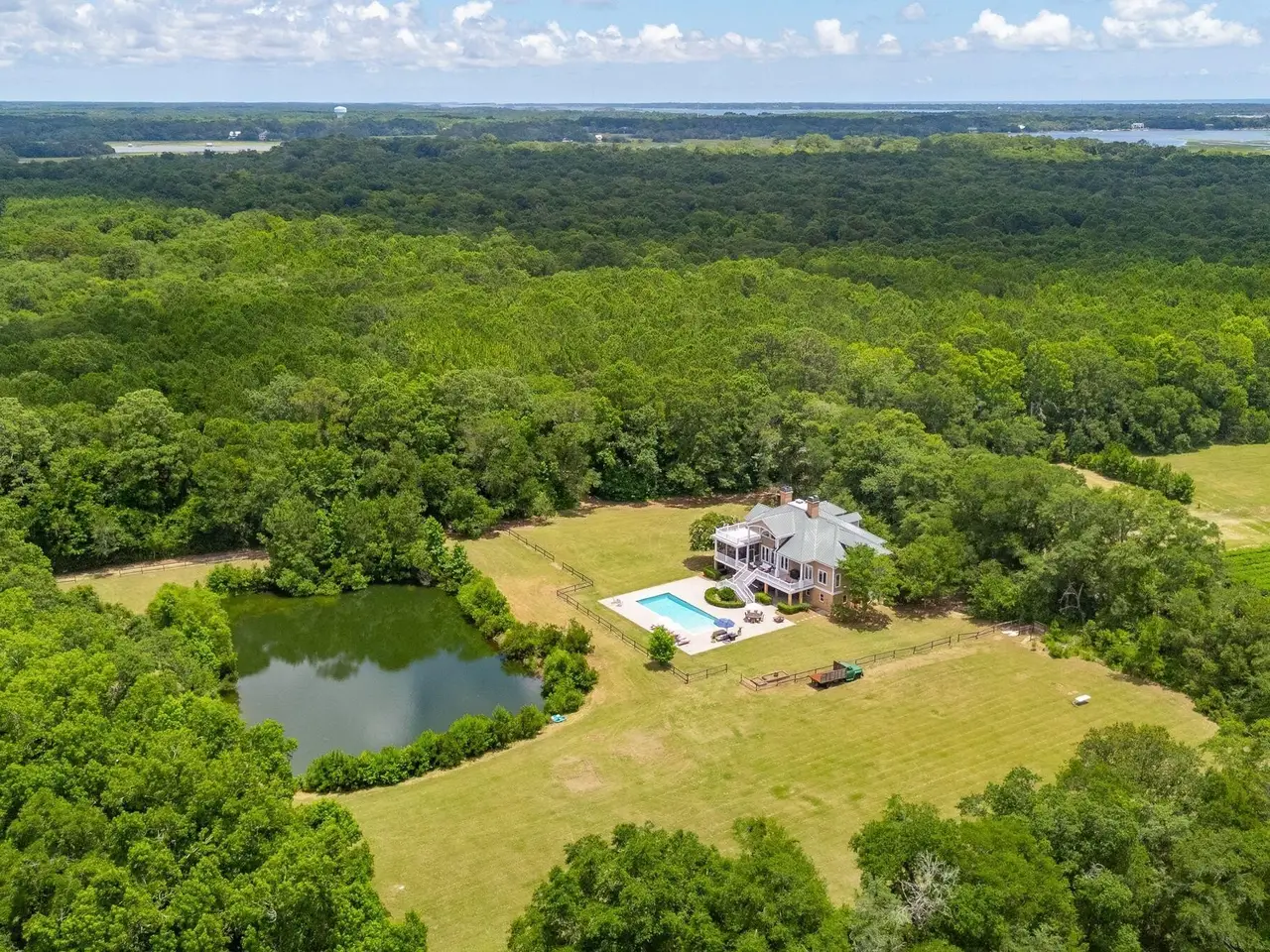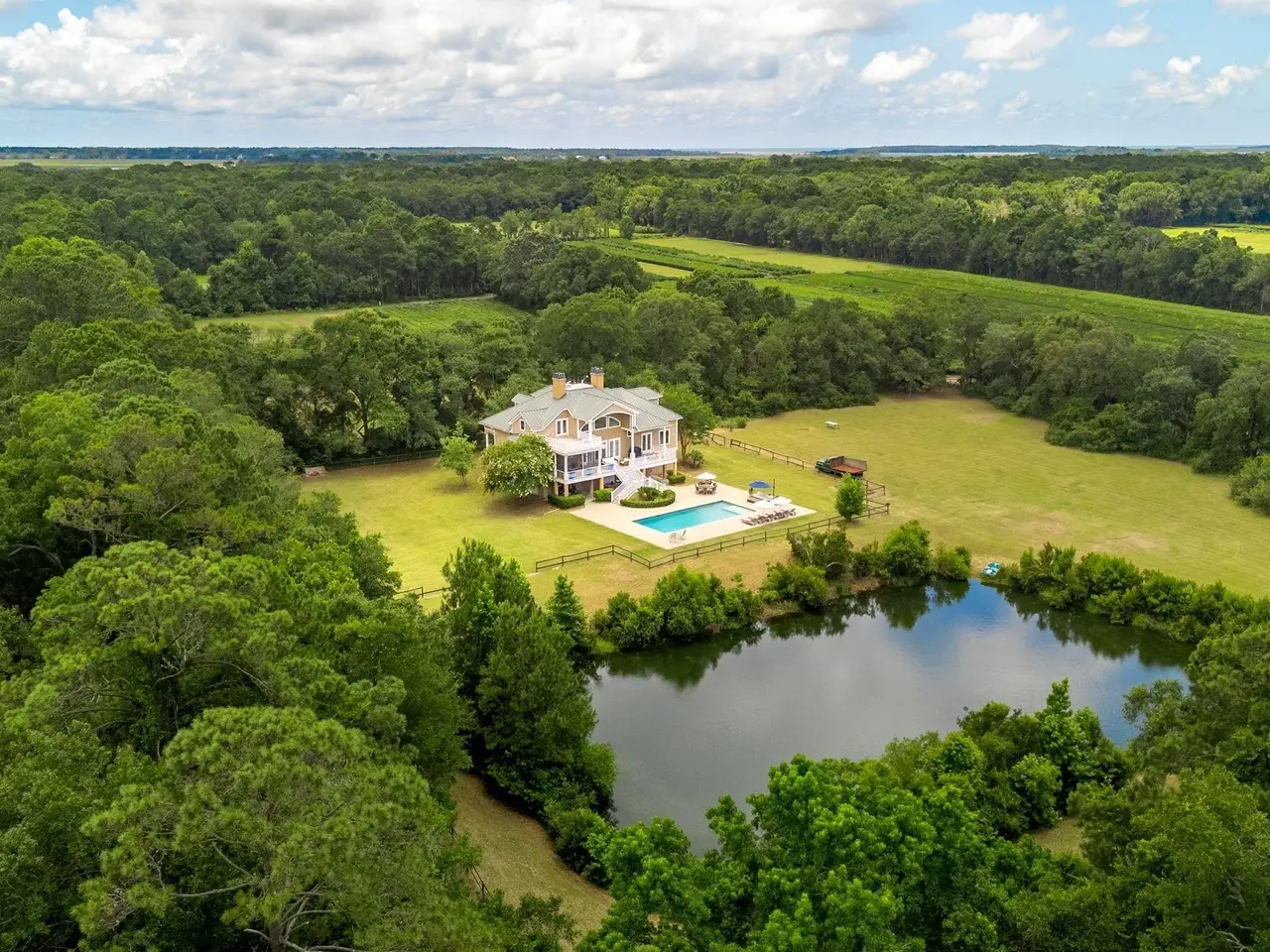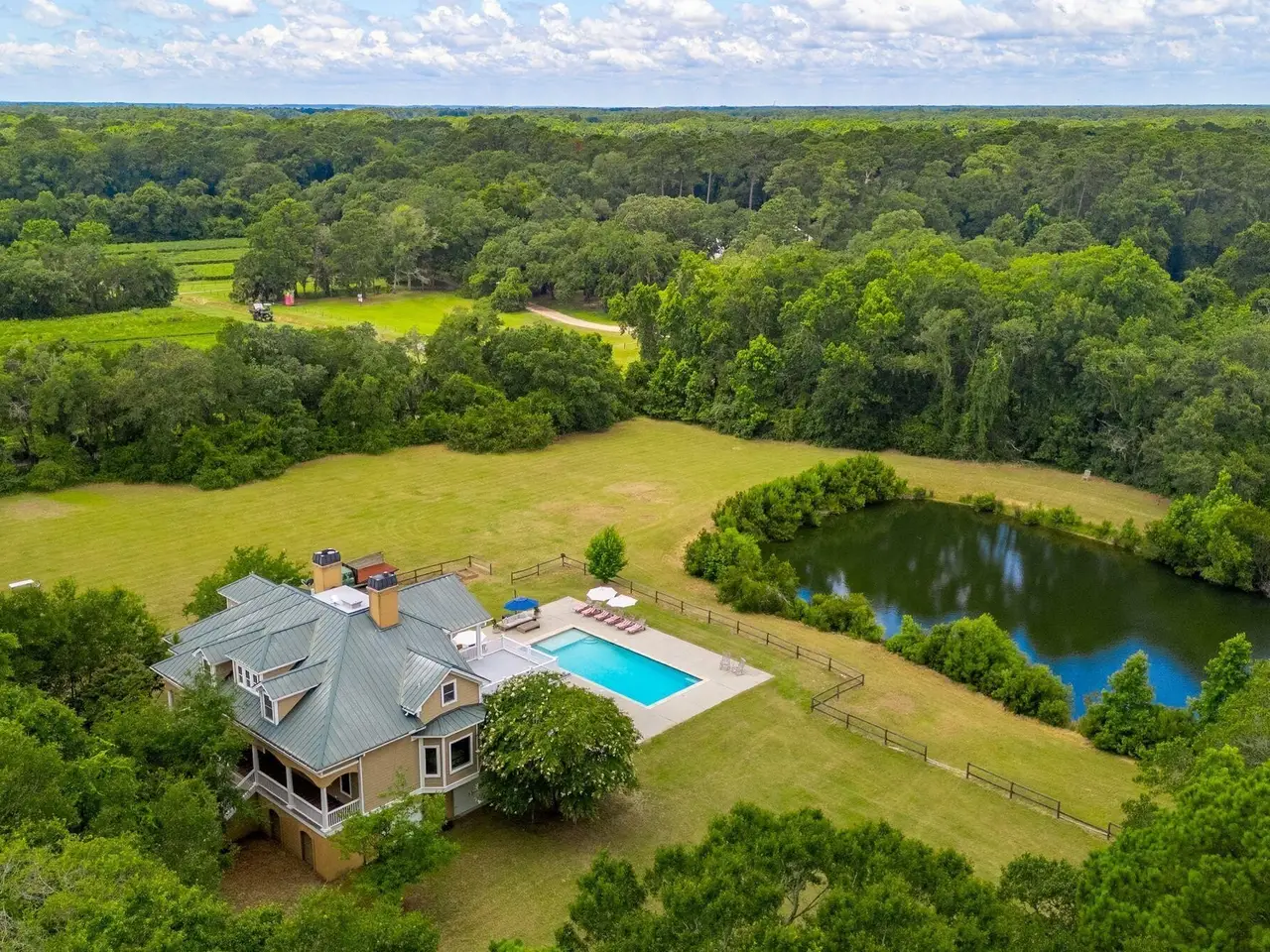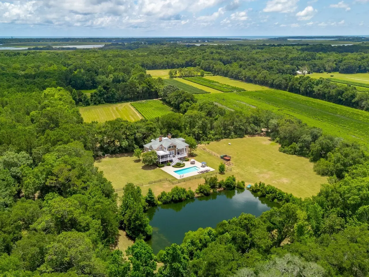 Escape to the Peace and Tranquility of Wadmalaw Island. Welcome to 2470 American Classic Tea Lane, a rare Lowcountry retreat offering the perfect blend of privacy, natural beauty and Southern Charm. Nestled on just over 30 acres across four parcels, this custom-built 3,384 square foot home was constructed in 2009 to the highest standards and pride of ownership shines throughout. As you pass through the private gate and follow the winding dirt road, you'll be greeted by a serene private pond, setting the stage for everything this stunning estate has to offer. Inside, the home is flooded with natural light, featuring soaring ceilings, open living spaces and incredible views from nearly every room. This is more than a home - it's a legacy property ready for its next chapter. The chef's kitchen is the heart of the main floor, anchored by a focal-point island & a cozy breakfast area. A flexible dining space currently hosts a billiards table and is flanked by custom built-ins. The living room boasts a wall of windows and multiple doors opening to the expansive deck and screened porch, all overlooking the pool, ponds, and wide-open fields, an entertainer's dream. The primary suite is a showstopper: complete with a gas fireplace, stunning views, and a luxurious bathroom featuring a walk-in shower and jetted tub. For convenience, an elevator shaft is already in place and ready for a future install if needed. Upstairs, you'll find three additional primary-sized bedrooms, one with a private ensuite bathroom and a jack & jill bathroom as well, plus a peaceful sitting room for quiet moments. A wet bar leads to a rooftop deck with panoramic views across the landscape. Outside, relax on the front porch with its beautiful wood ceiling, or lounge by the spacious pool while enjoying the quiet beauty that only Wadmalaw Island can offer. Crafted for those who value beauty, space, and peace - this is a retreat to be passed down.